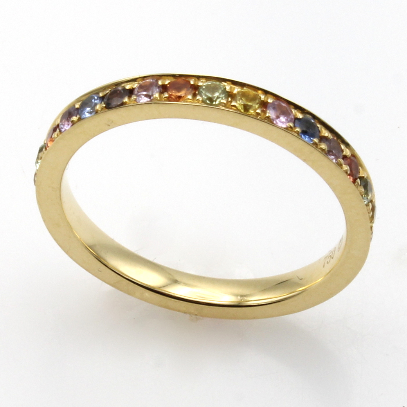 Ring mit Saphiren, GG 750/000, Saphire in versch. Farben rundum bes. zus. ca. 0.98 ct, RW ca. 55 Schätzpreis: 2100, - EUR
