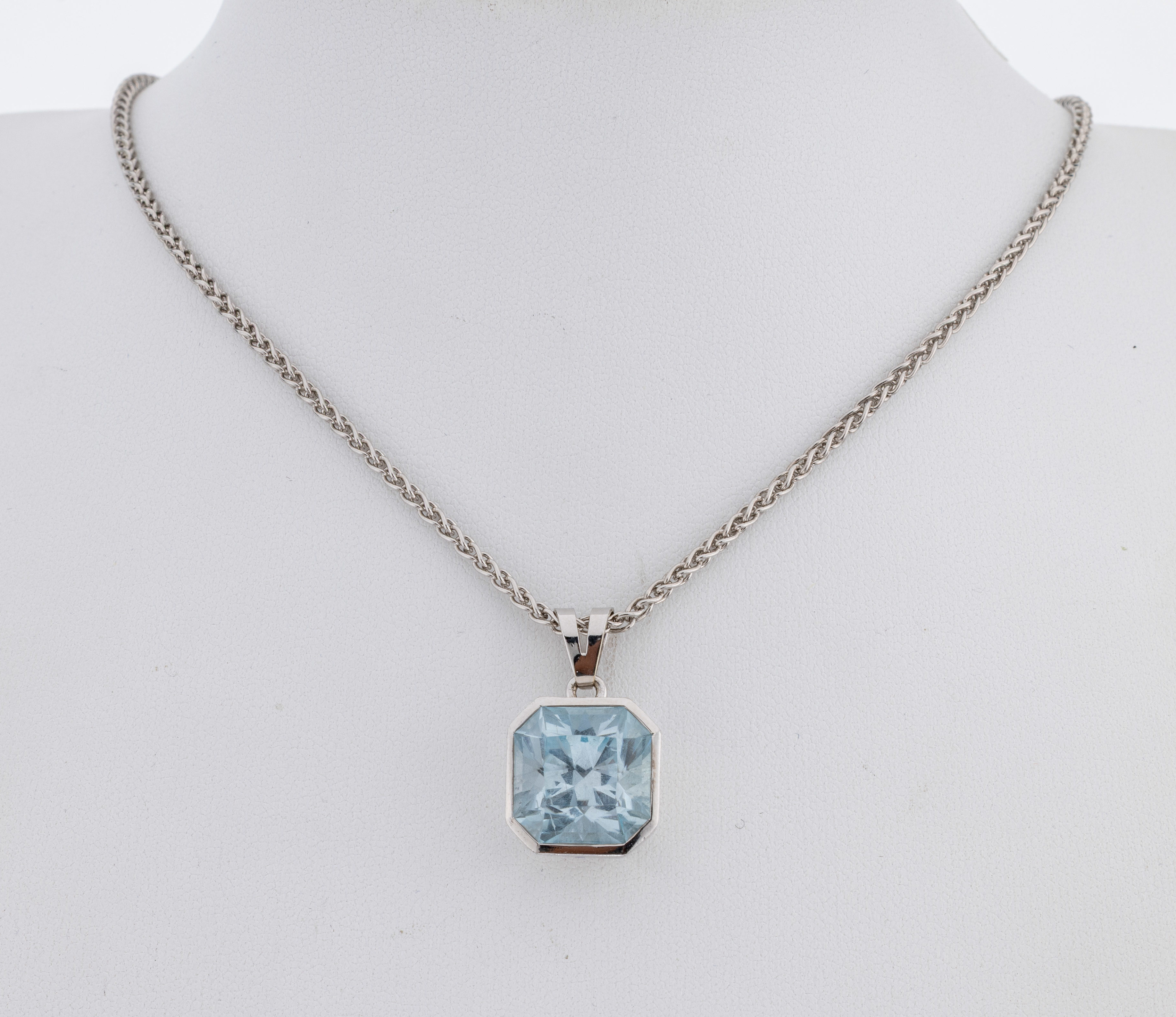 14 kt gold topaz-pendant , WG 585/000, octagonal bevelled blue topaz (treated) approx.