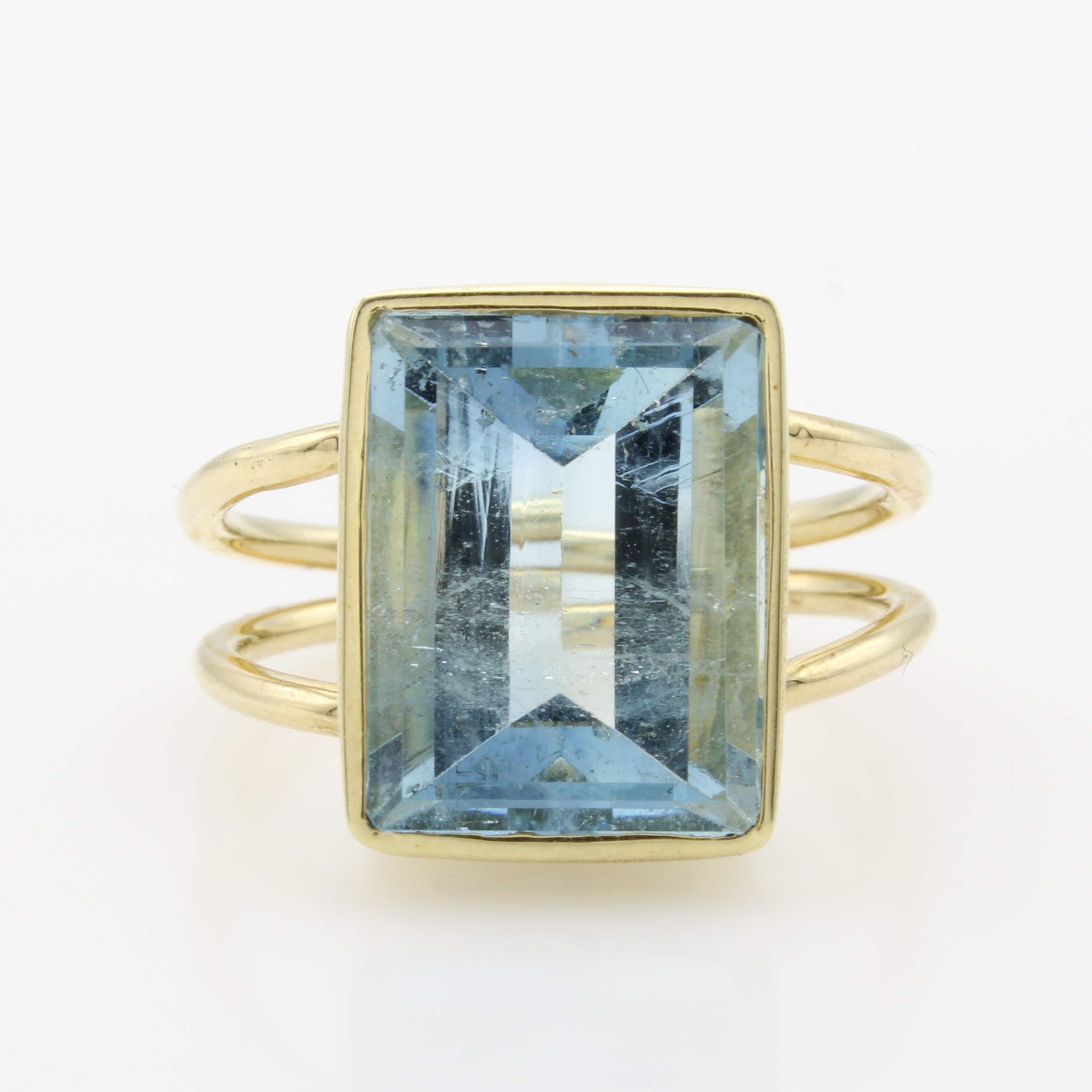 Ring mit Aquamarin, GG 585/000, rechteckiger Aquam. ca. 6.8 ct, glatte Fassung, 2-rhg. Schiene, RW ca. 59 Schätzpreis: 2980, - EUR
