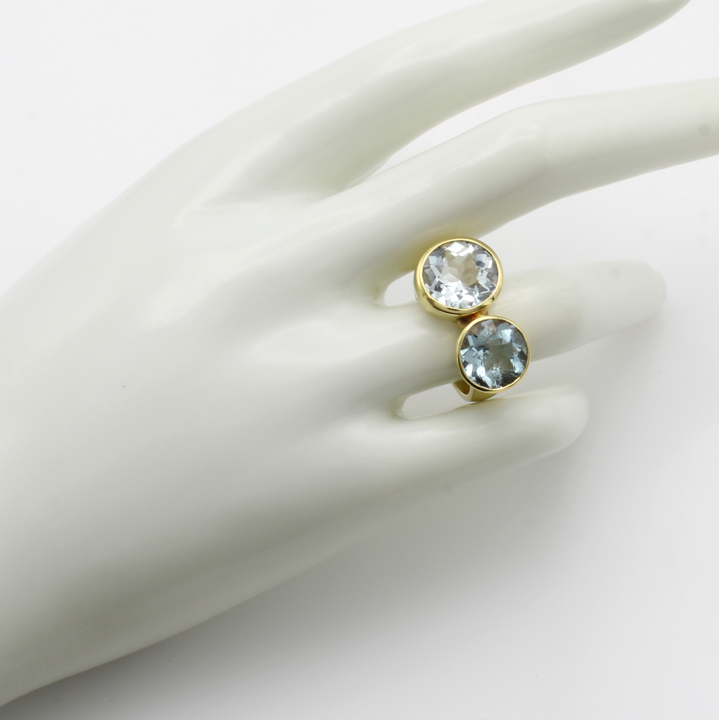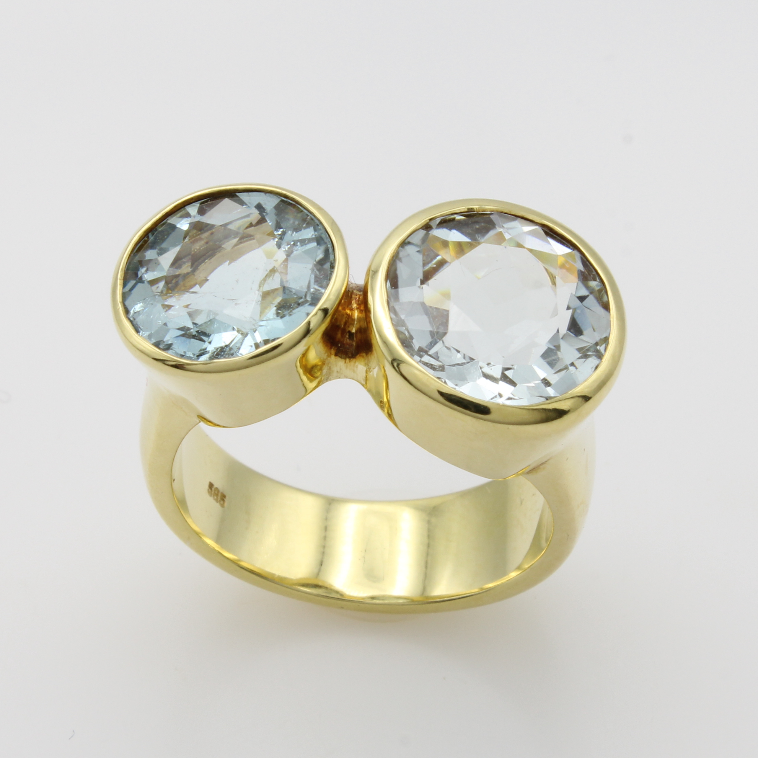 Ring mit Aquamarinen, GG 585/000, 2 runde Aquam. zus. ca. 7.54 ct, RW ca. 57 Schätzpreis: 4990, - EUR
