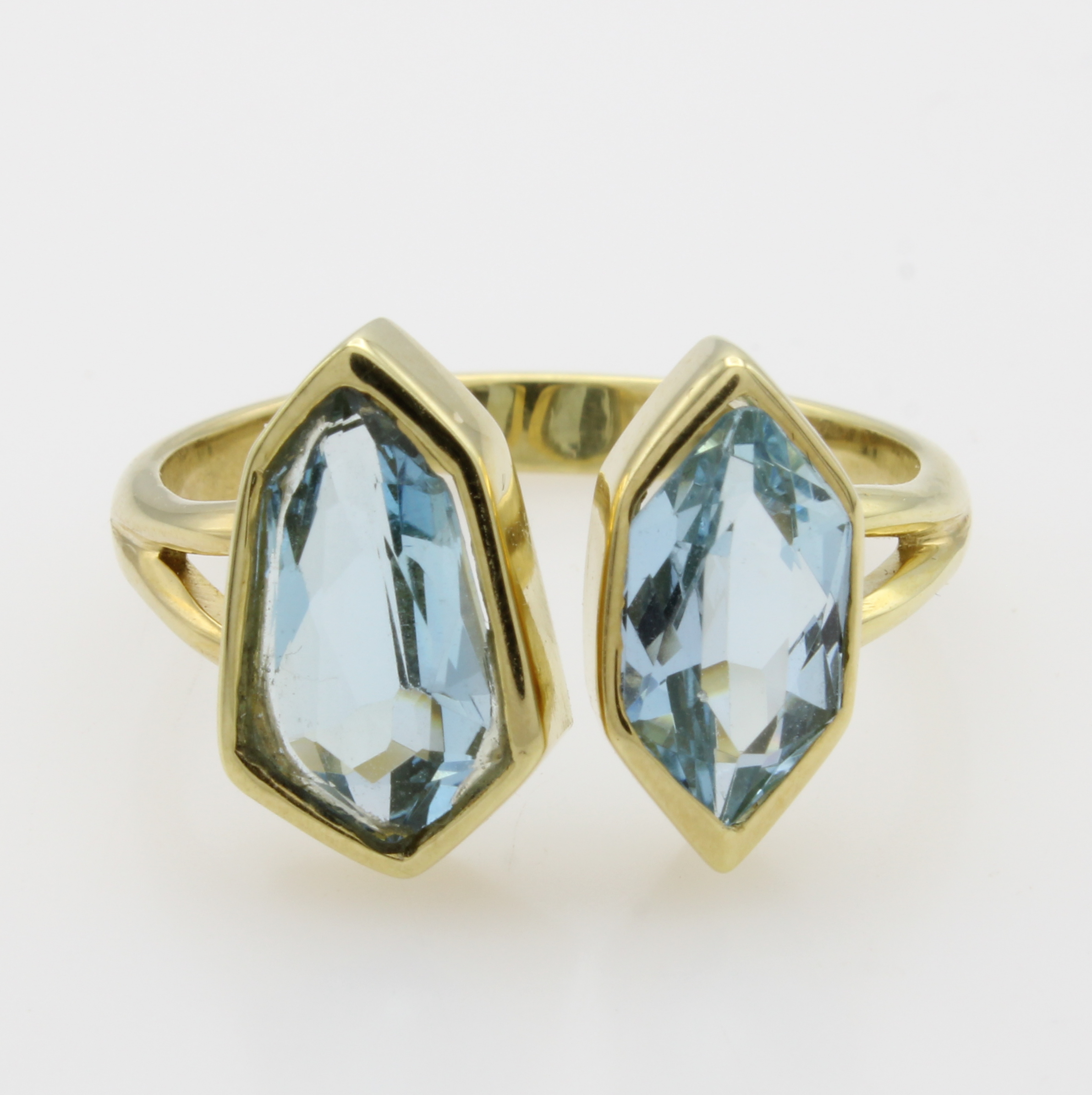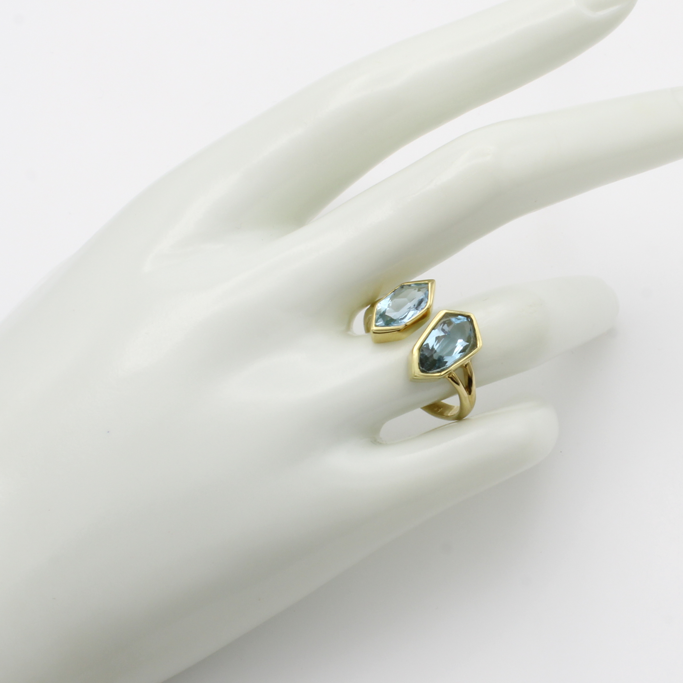 Ring mit Aquamarinen, GG 585/000, 2 sechseckige Aquam. zus. ca. 2.7 ct, RW ca. 60 Schätzpreis: 2890, - EUR