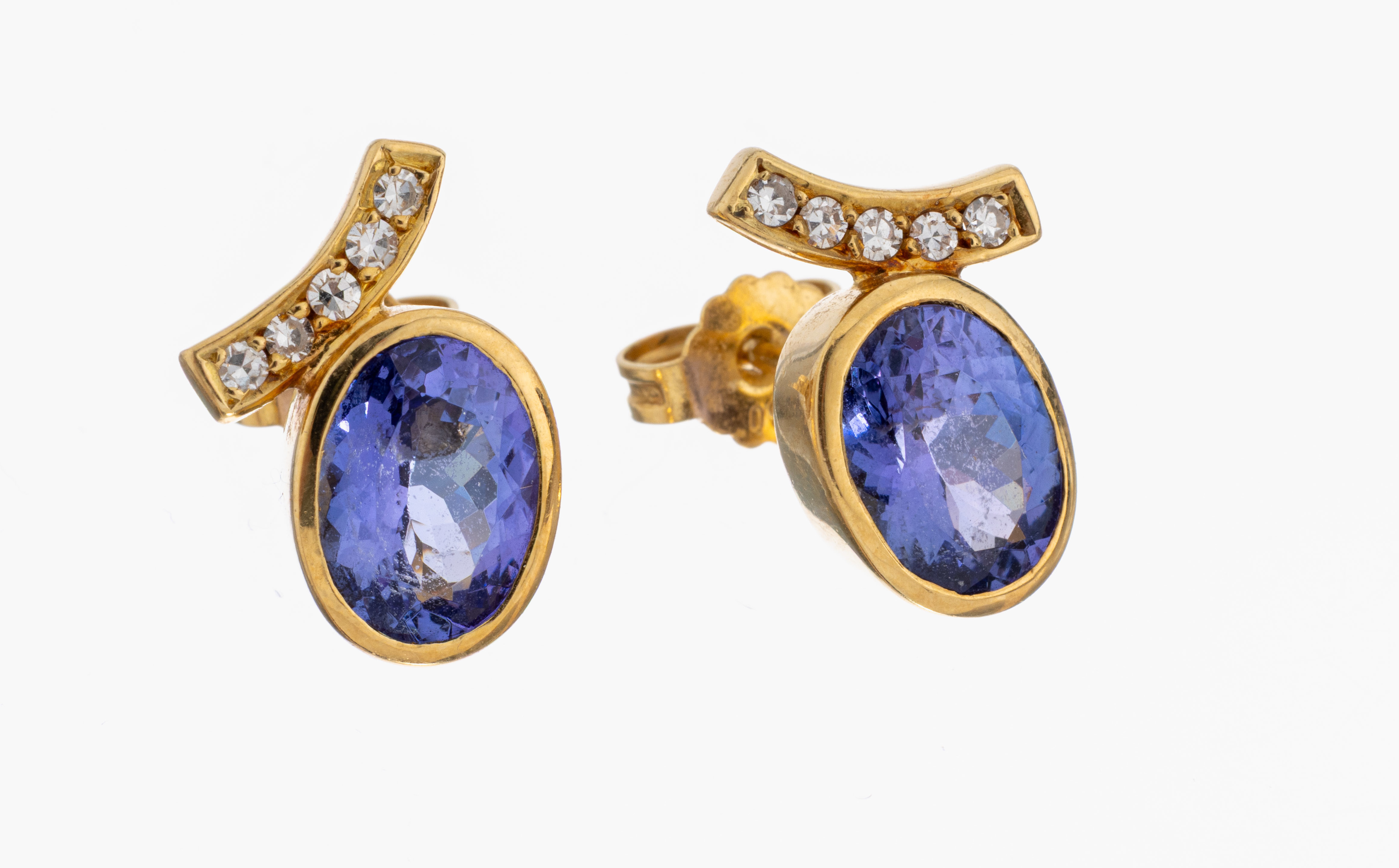 Paar 18 kt Tansanit-Diamant-Ohrstecker, GG 750/000, 2 ovalfacett. Tansanite zus.