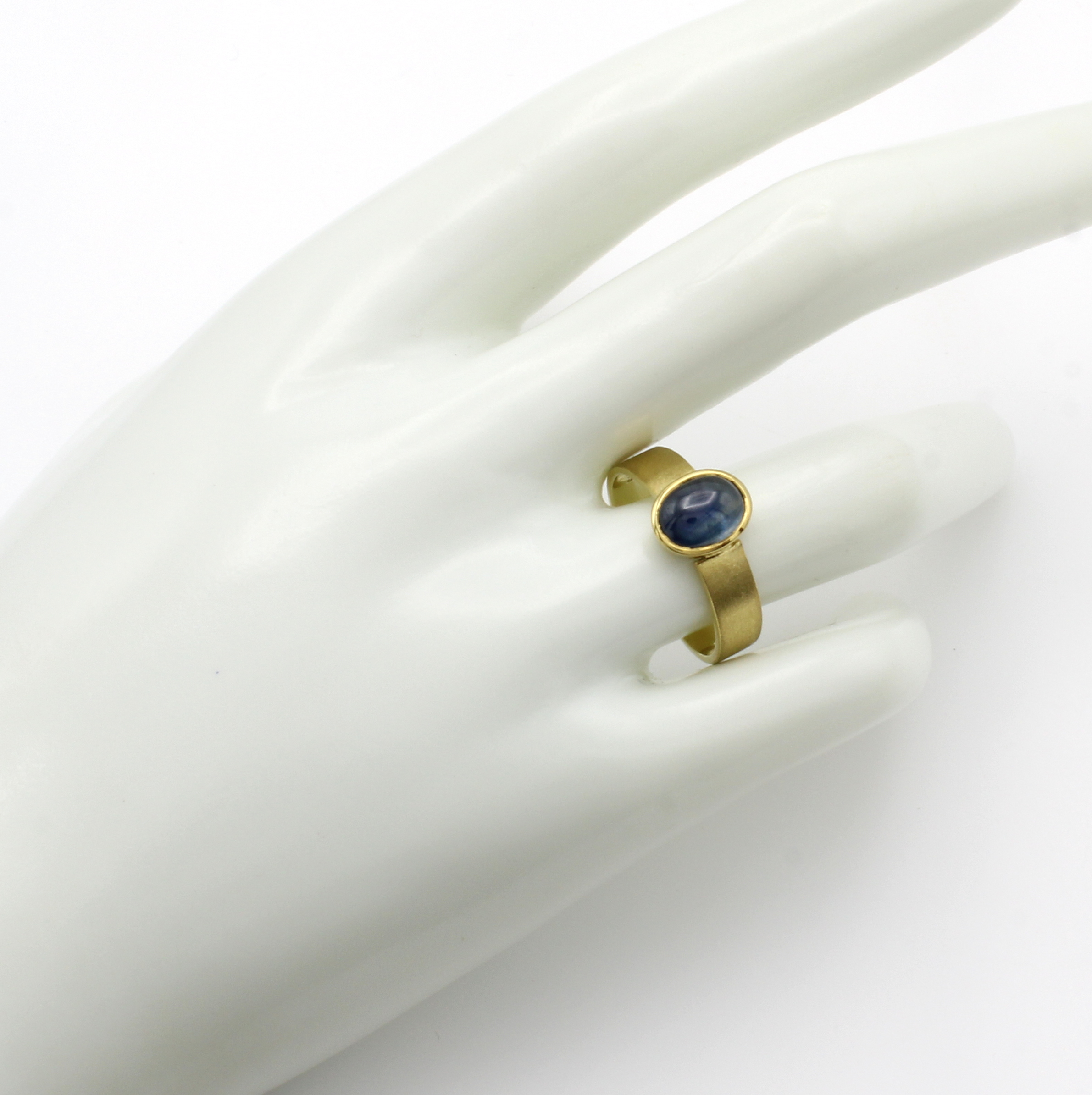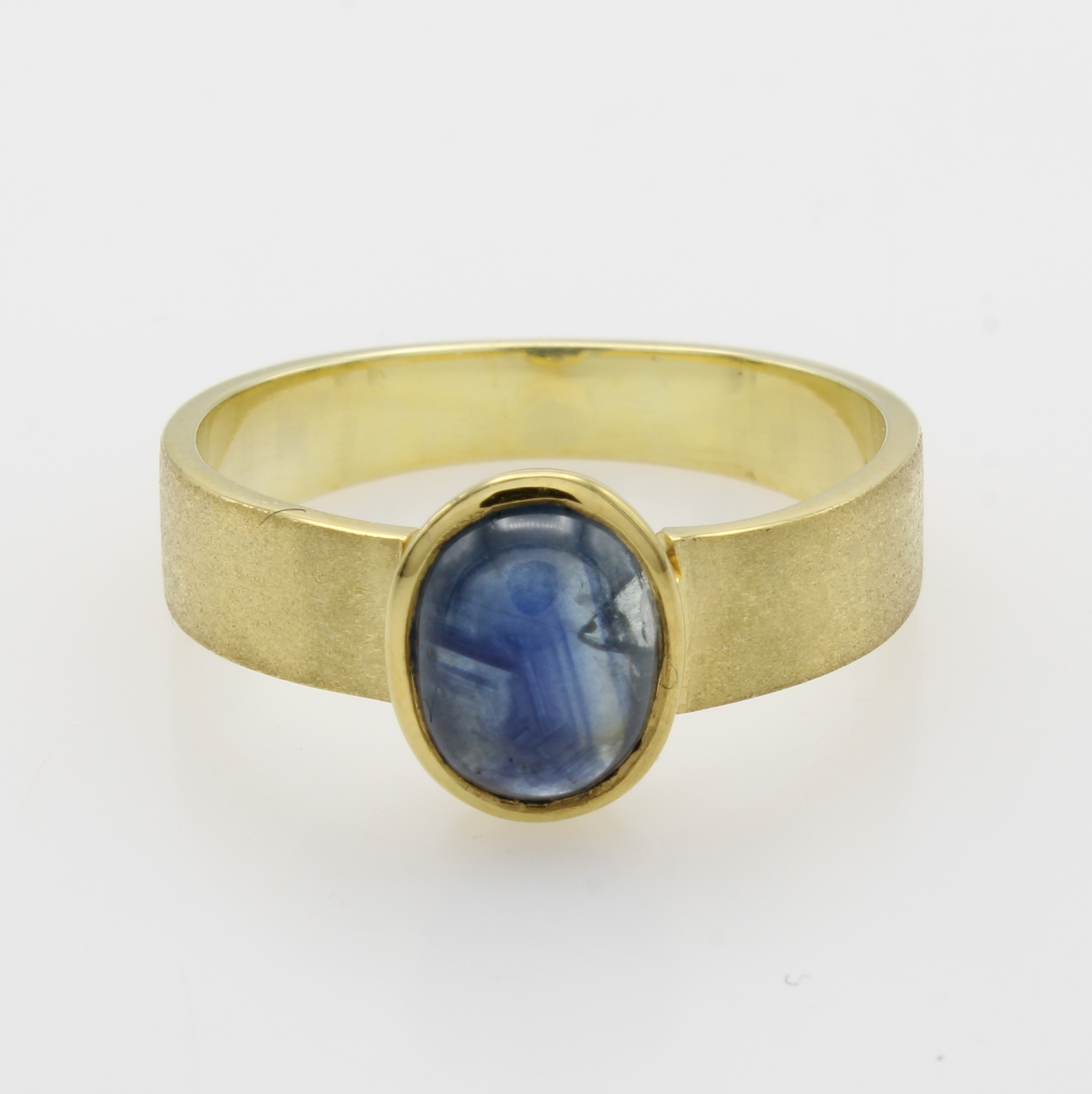 Ring mit Saphir, GG 585/000, z.T. matt., ovaler Saphircabochon ca. 1.2 ct, RW ca. 57 Schätzpreis: 1650, - EUR