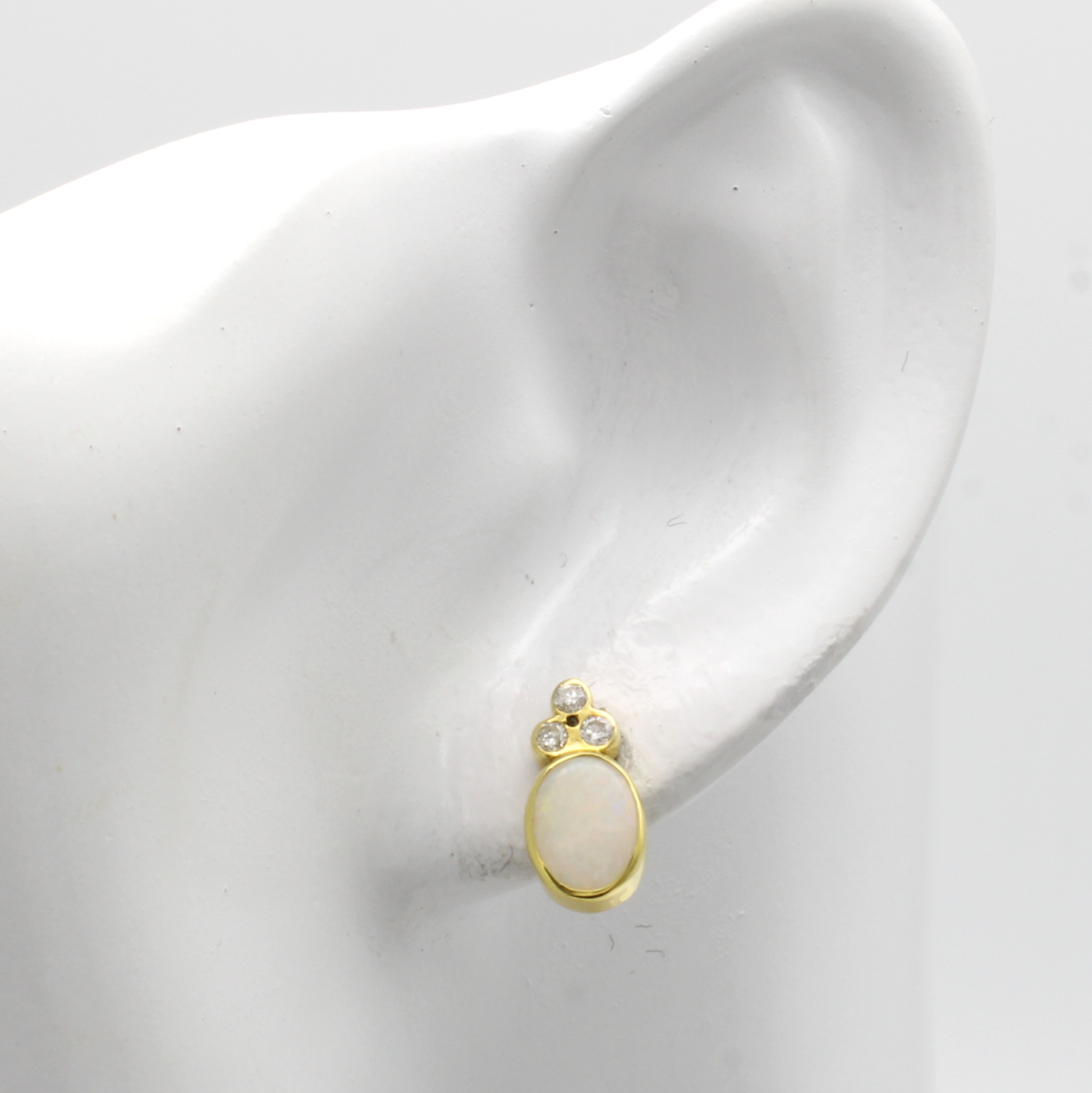 Paar Ohrstecker mit Opalen und Brillanten, GG 585/000, 2 ovale Opale zus. ca. 1.5 ct, 6 Brill. zus. ca. 0.18 ct Weiß/si Schätzpreis: 1680, - EUR