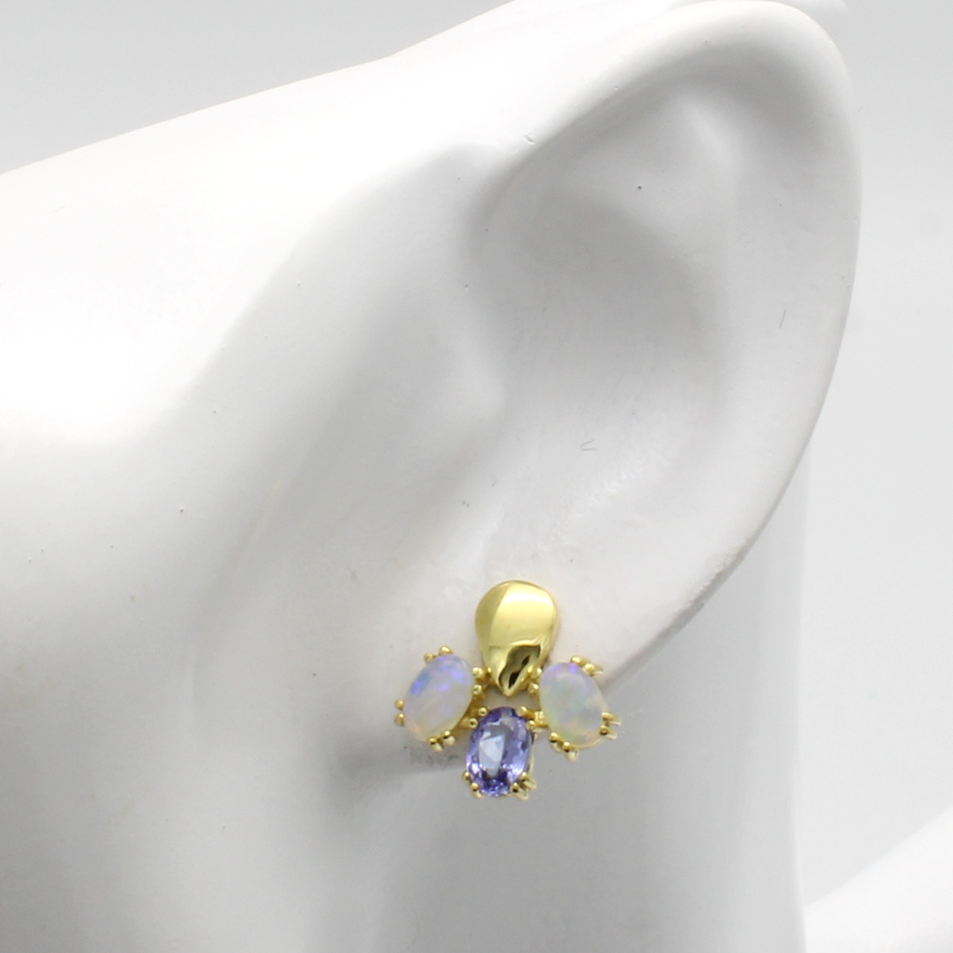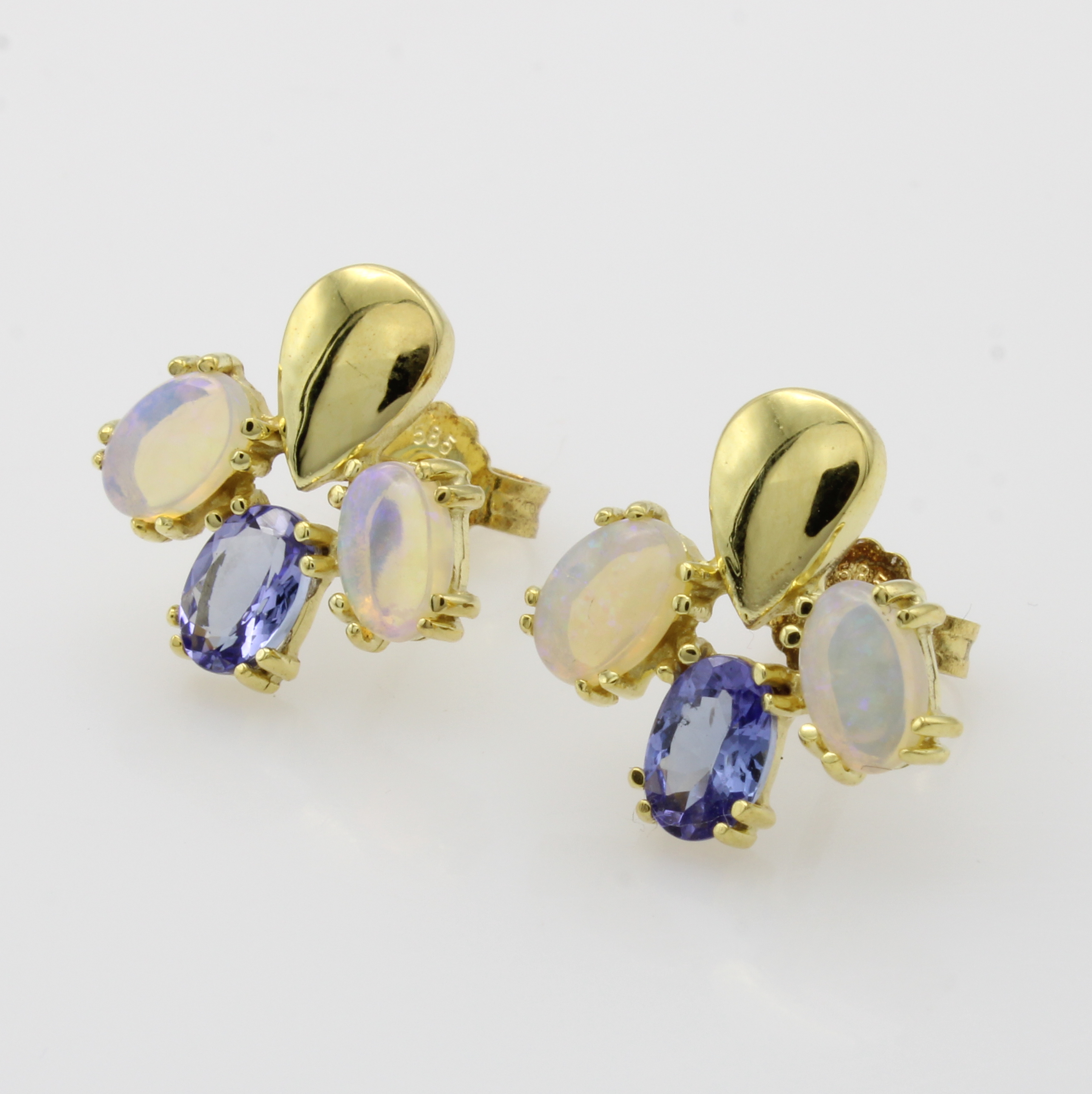 Paar Ohrstecker mit Tansaniten und Opalen, GG 585/000, 4 Opale zus. ca. 1.3 ct, 2 Tansanite zus. ca. 0.8 ct, Krappenfassungen Schätzpreis: 1600, - EUR