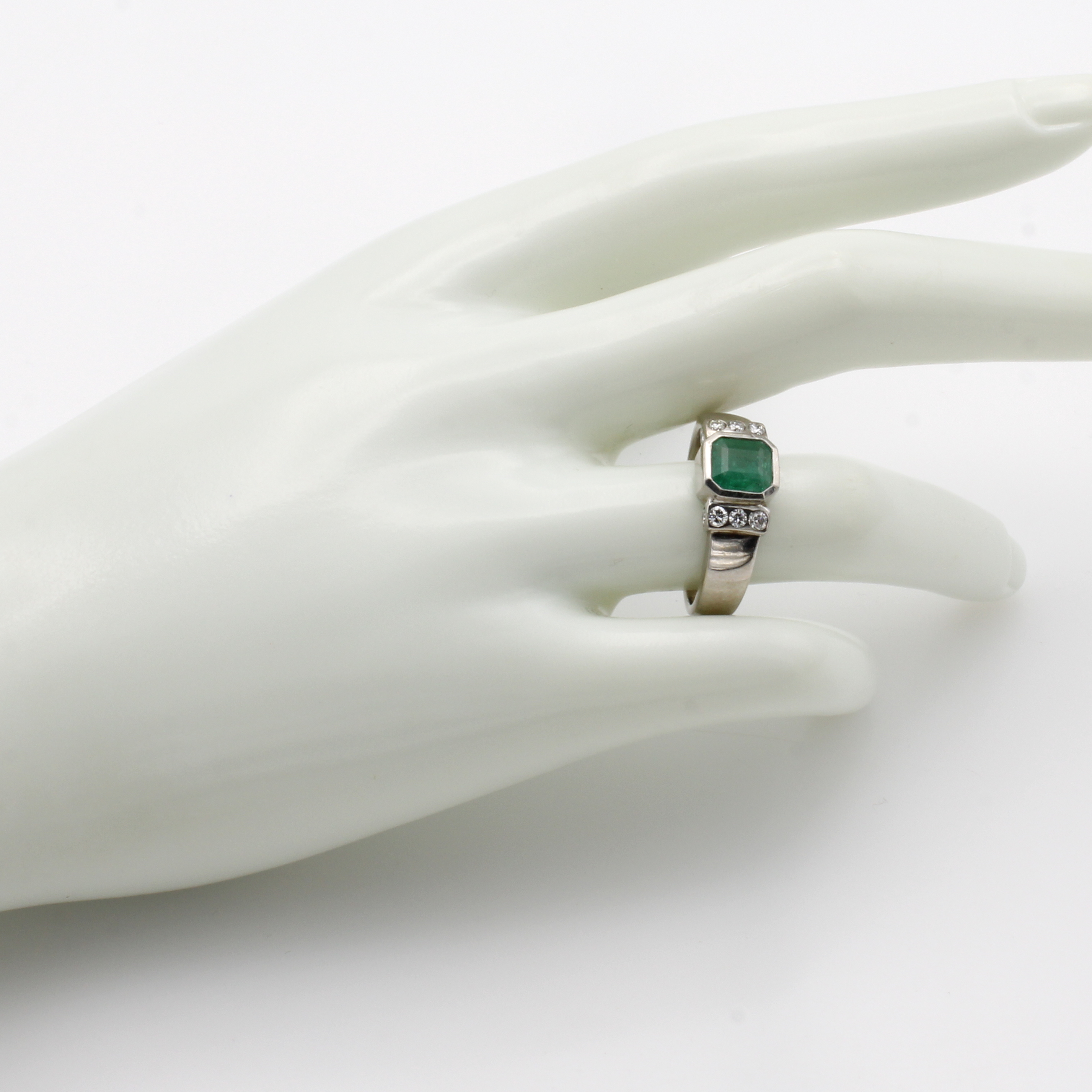 Ring mit Smaragd und Brillanten, WG 585/000, achteckiger Smaragd ca. 1.65 ct, 6 Brill. zus. ca. 0.35 ct feines Weiß/si, RW ca. 58 Schätzpreis: 5000, - EUR