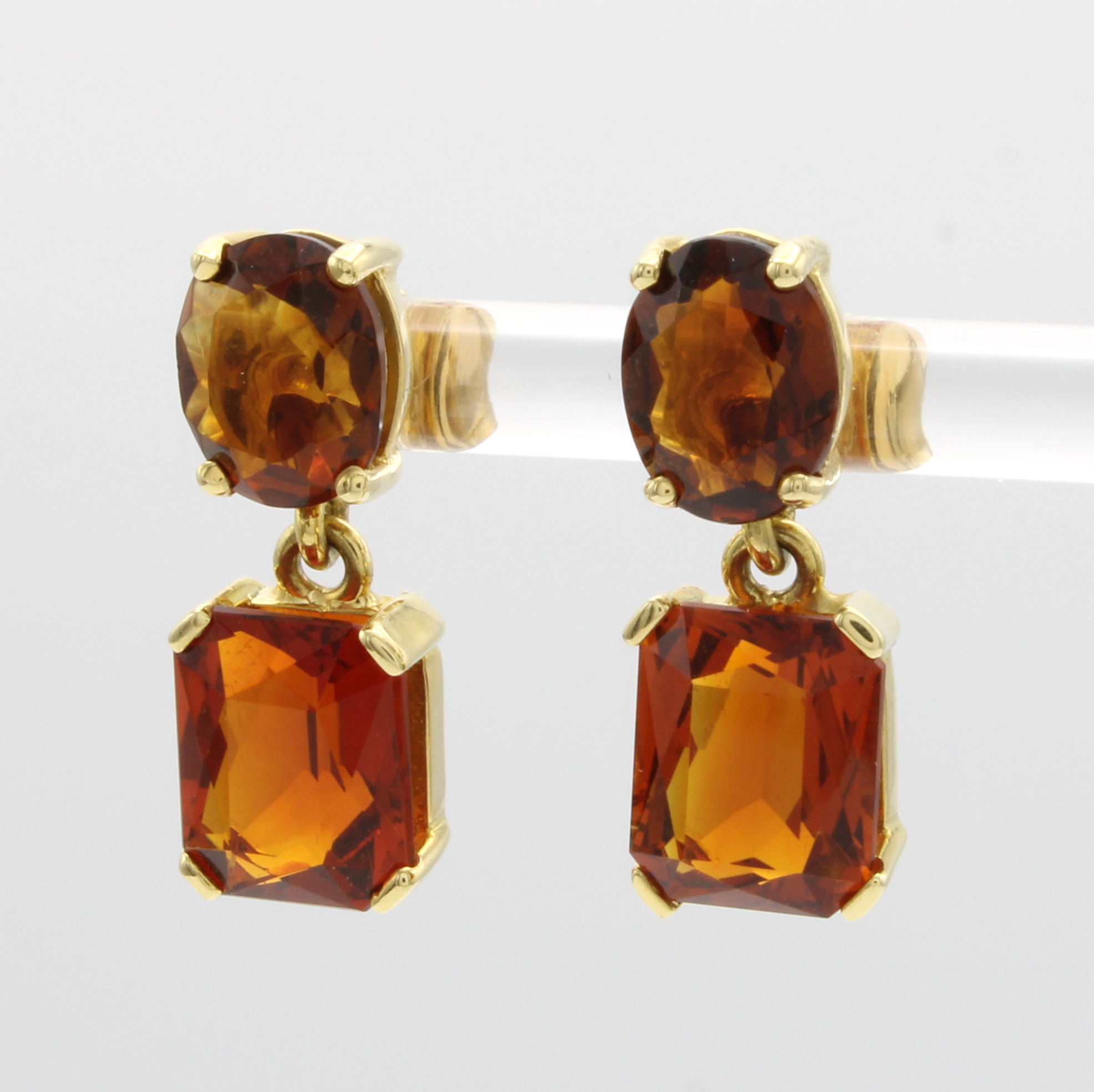 Paar Ohrstecker mit Citrinen, GG 585/000, 2 ovale u. 2 achteckige Citrine zus. ca. 7 ct, Abhängungen bewegl. Schätzpreis: 1890, - EUR
