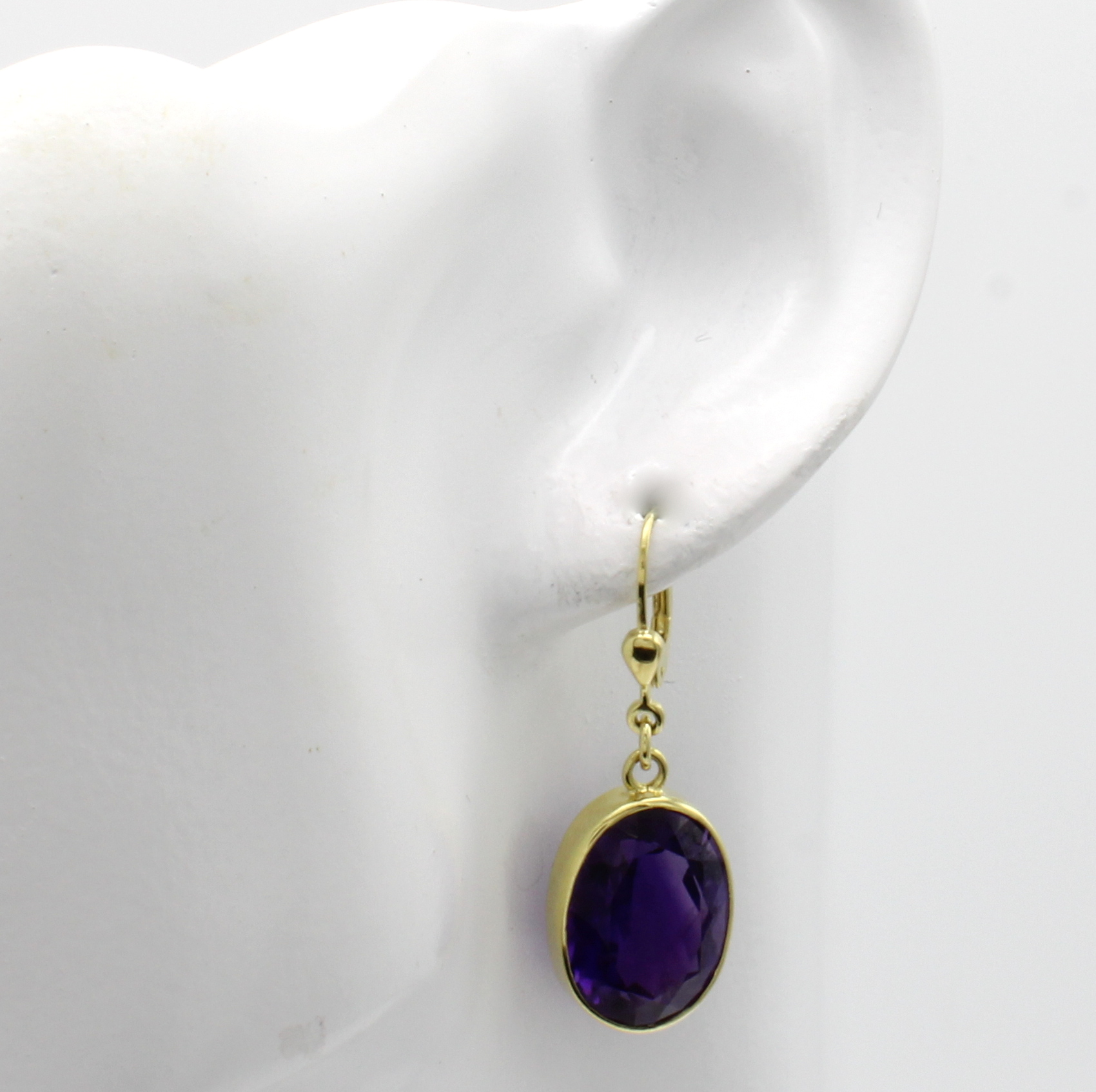 Paar Ohrgehänge mit Amethysten, GG 585/000, 2 ovale Amethyste zus. ca. 18.8 ct Schätzpreis: 1700, - EUR
