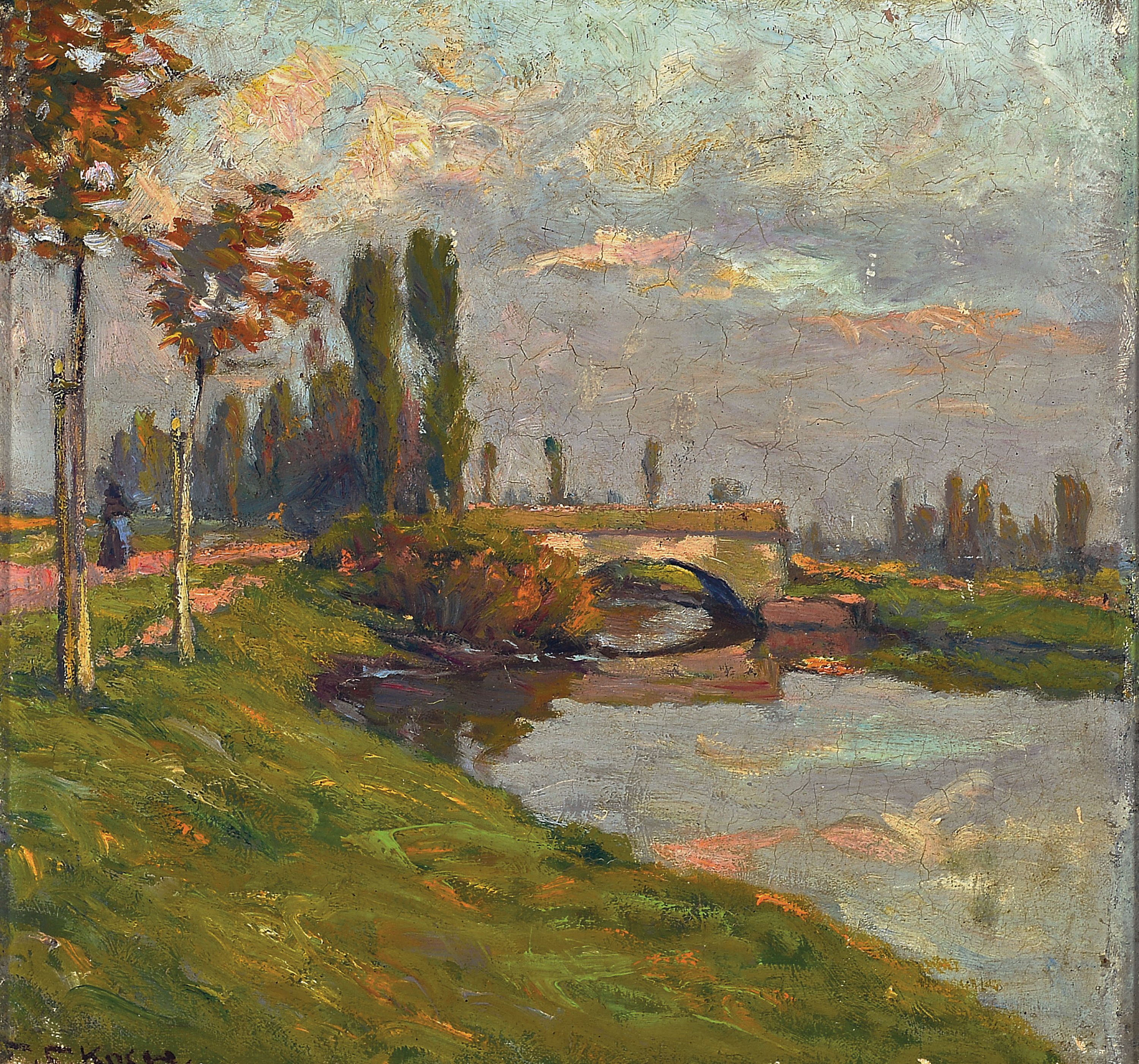 Friedrich Ferdinand Koch, 1863-1923 Landau, "Die Offenbacher Brücke bei Offenbach