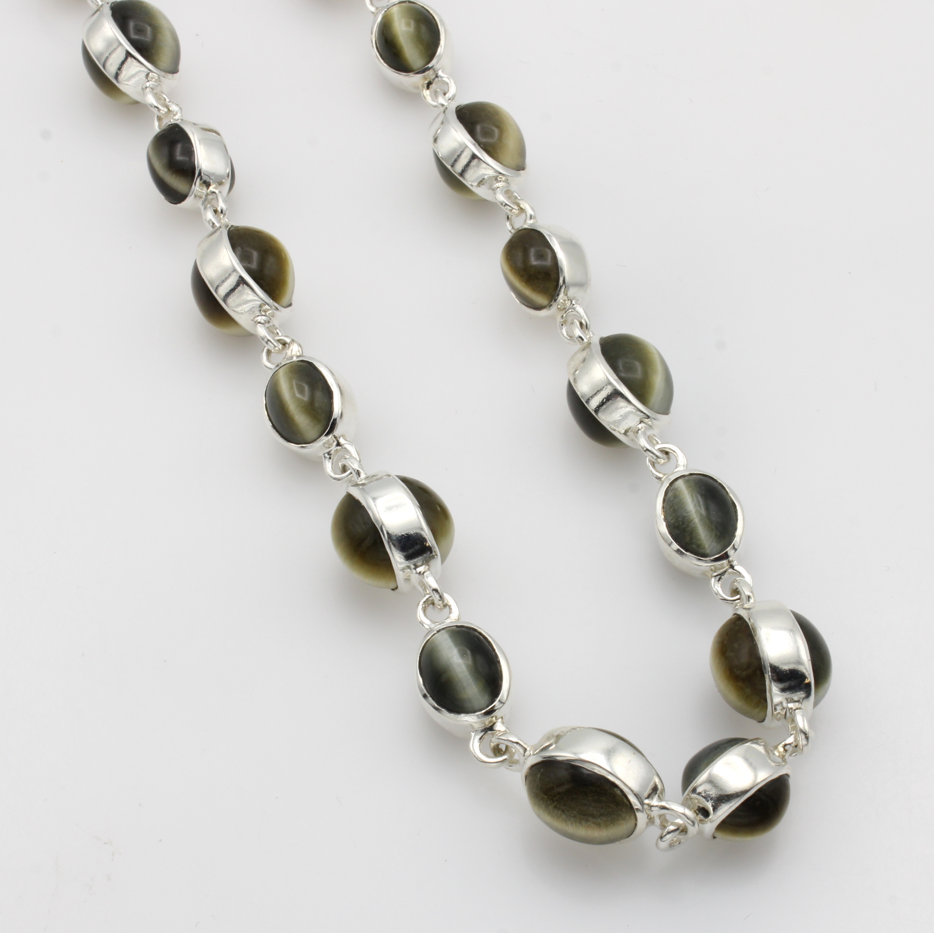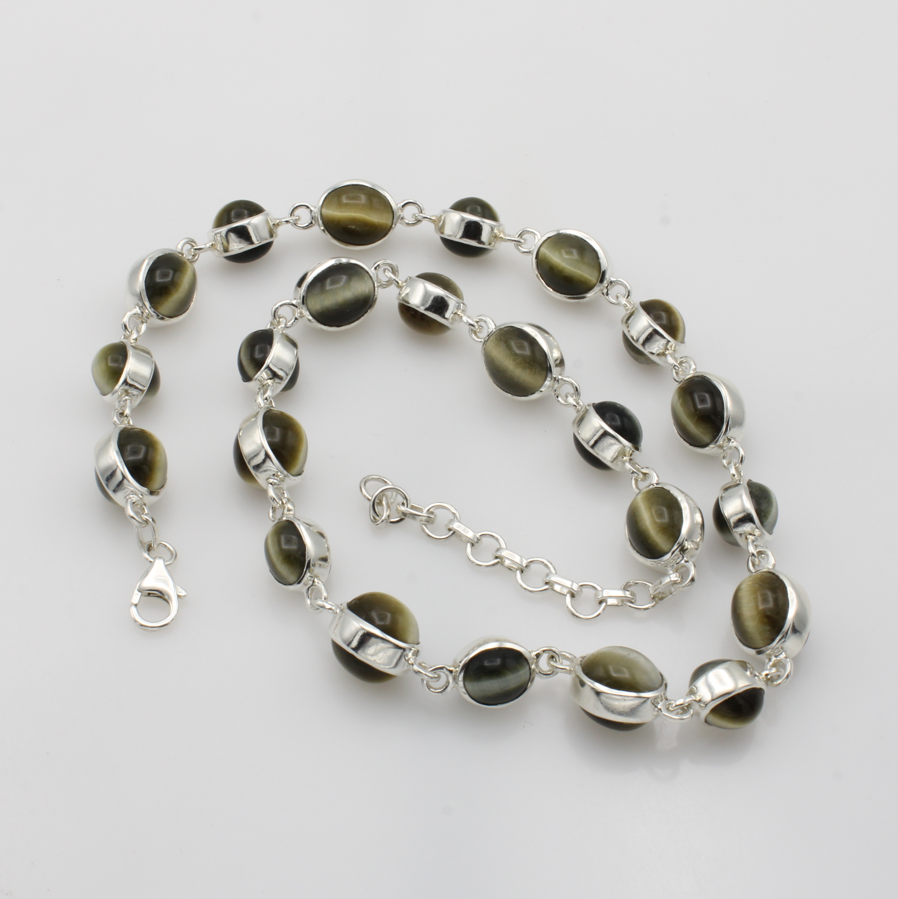 Kette mit Tigeraugen, 925er Silber, ovale Tigeraugen in versch. Größen, L. variabel v. variabel v. 46-52 cm