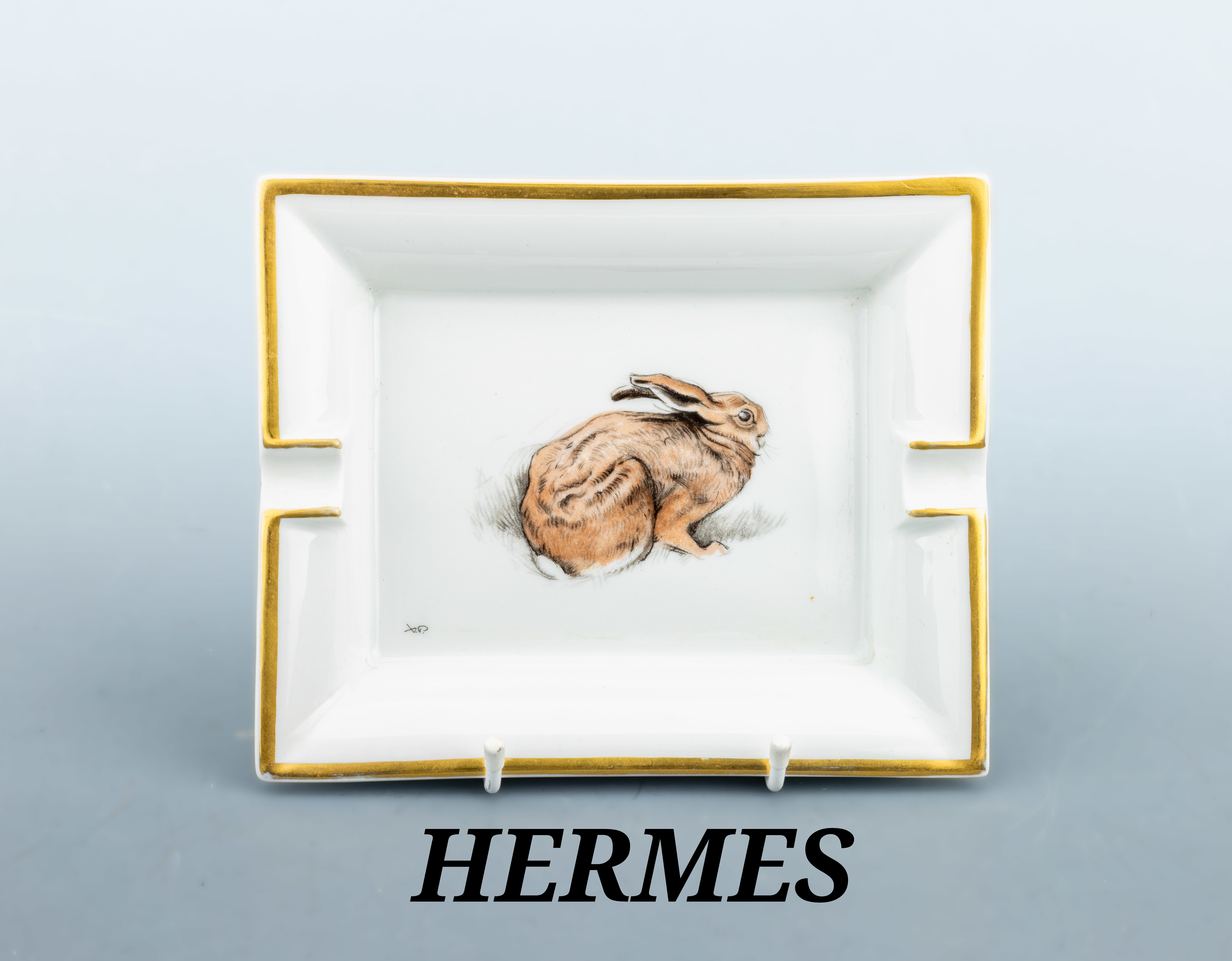 HERMES Aschenbecher "Hase", Porzellan weißer Grund goldfarb. Rand, Malerei mit Darstellung