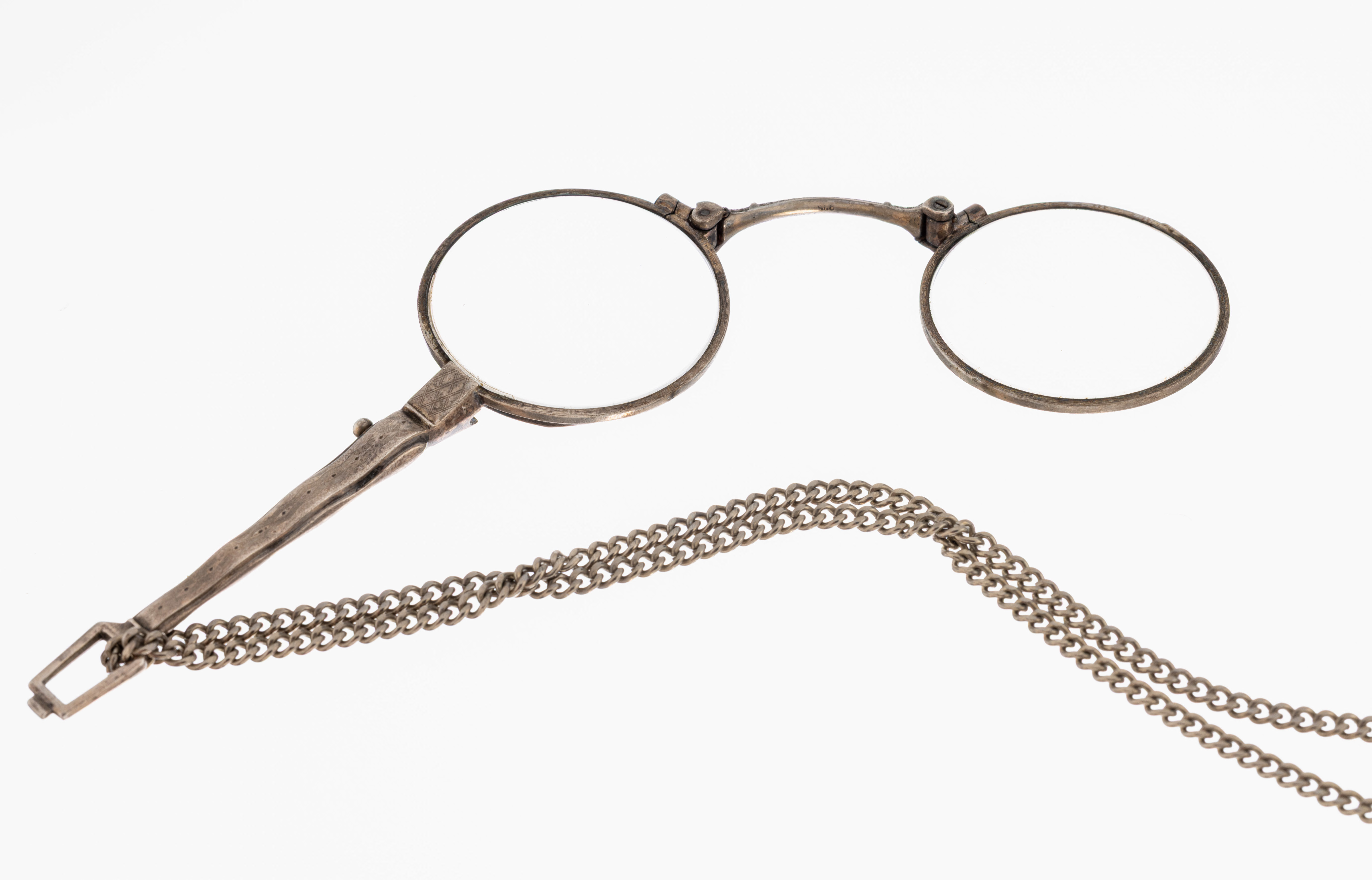 Lorgnette, wohl deutsch, um 1900-10, 835er Silber, Oberfläche fein grav., an Kette