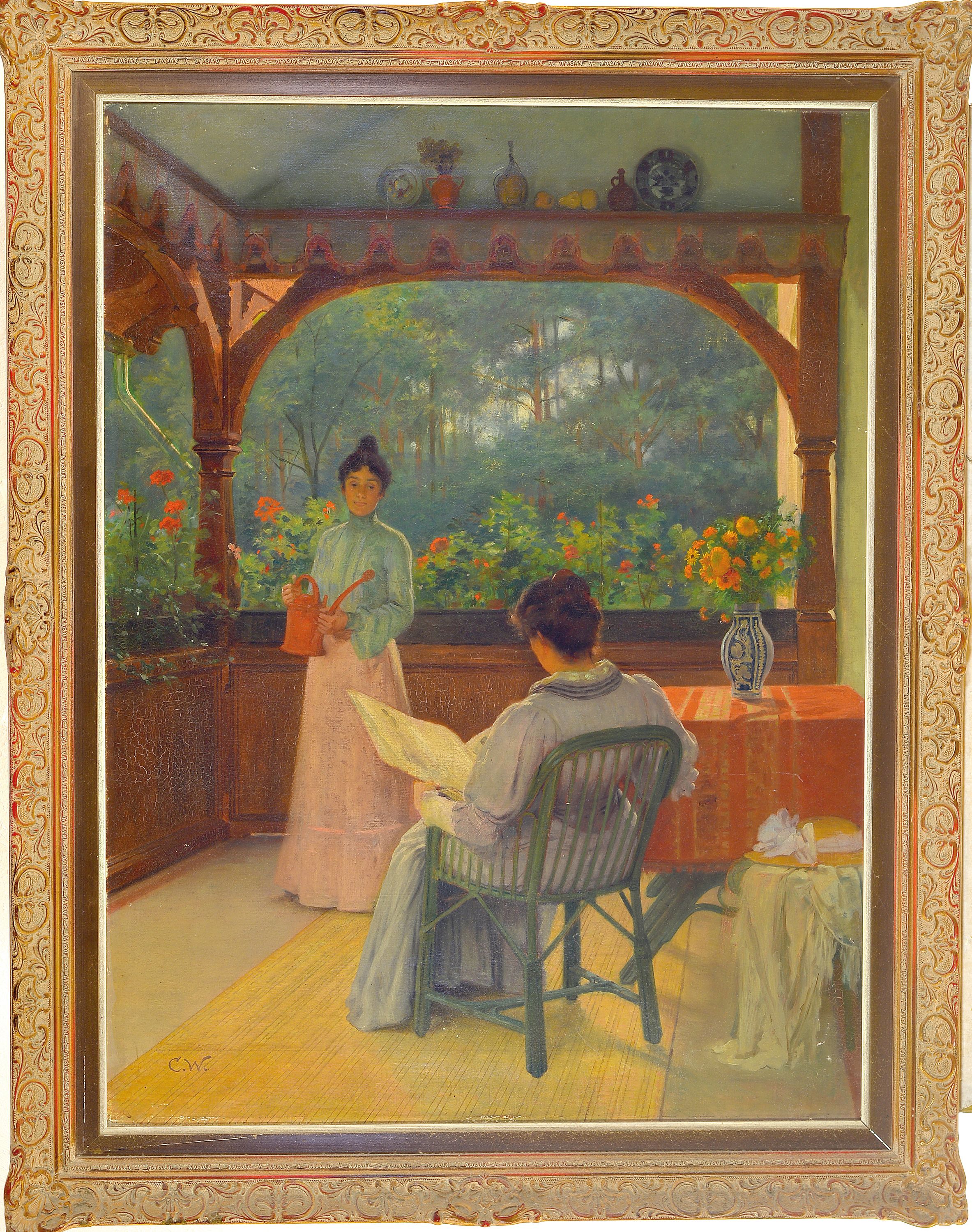 Carl Wendling, 1851 Weilburg-1914 Berlin, "Auf dem Balkon", zwei Frauen in einer