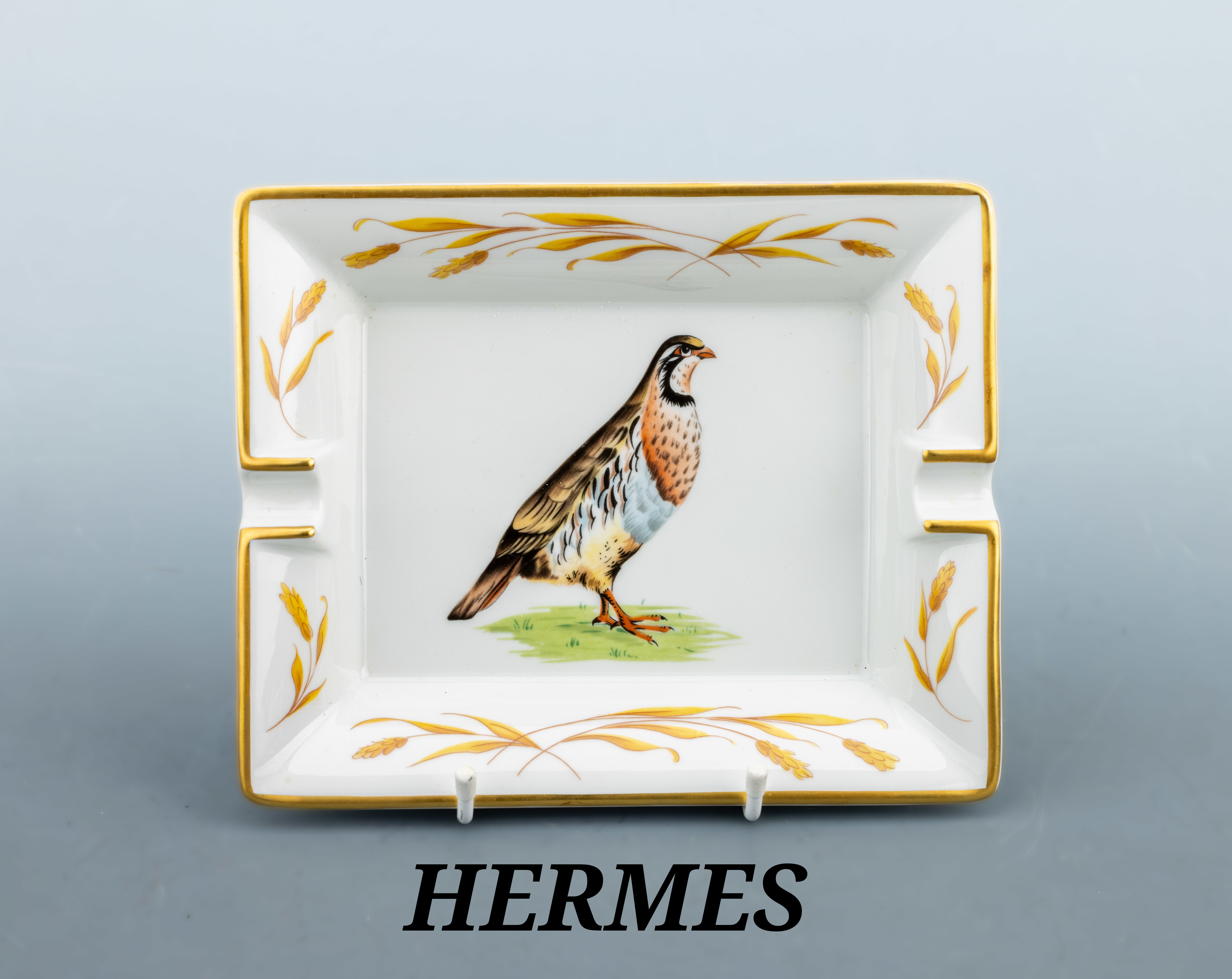 HERMES Aschenbecher "Rebhuhn", Porzellan, weißer Grund goldfarb. Rand, Malerei mit