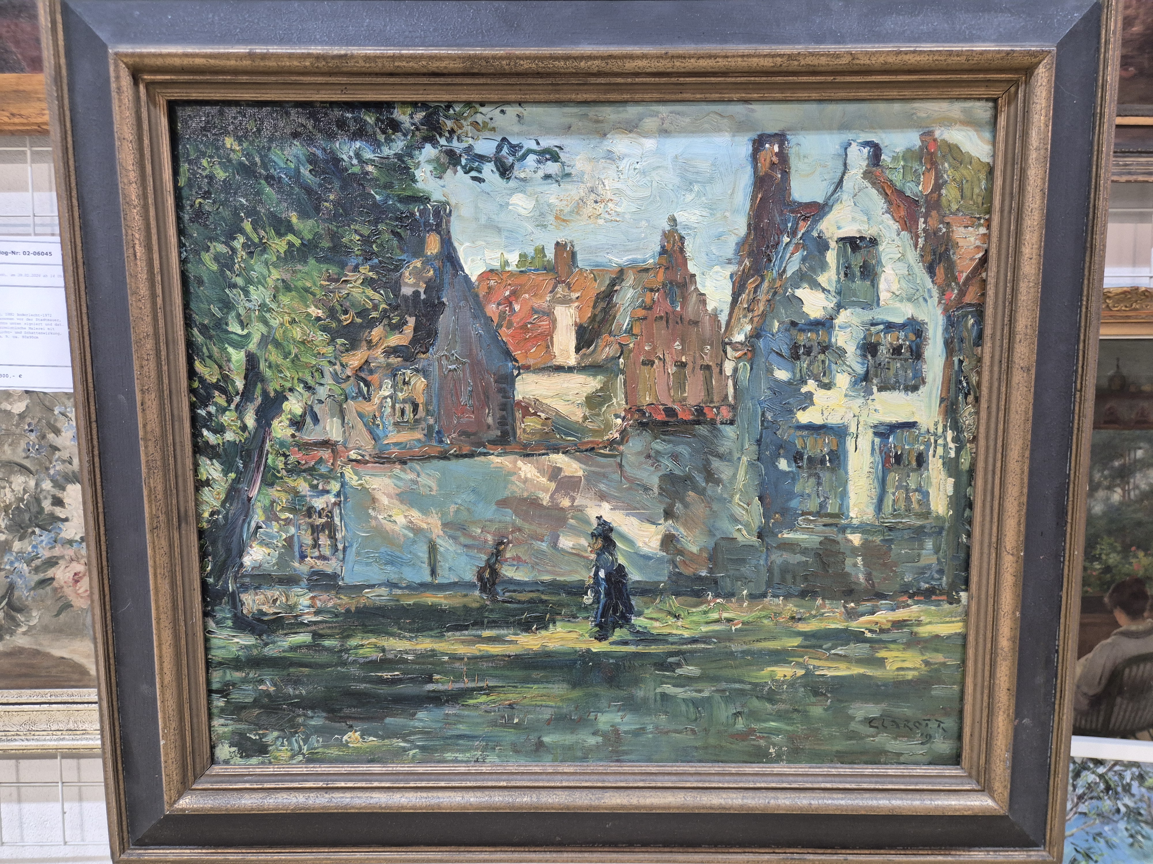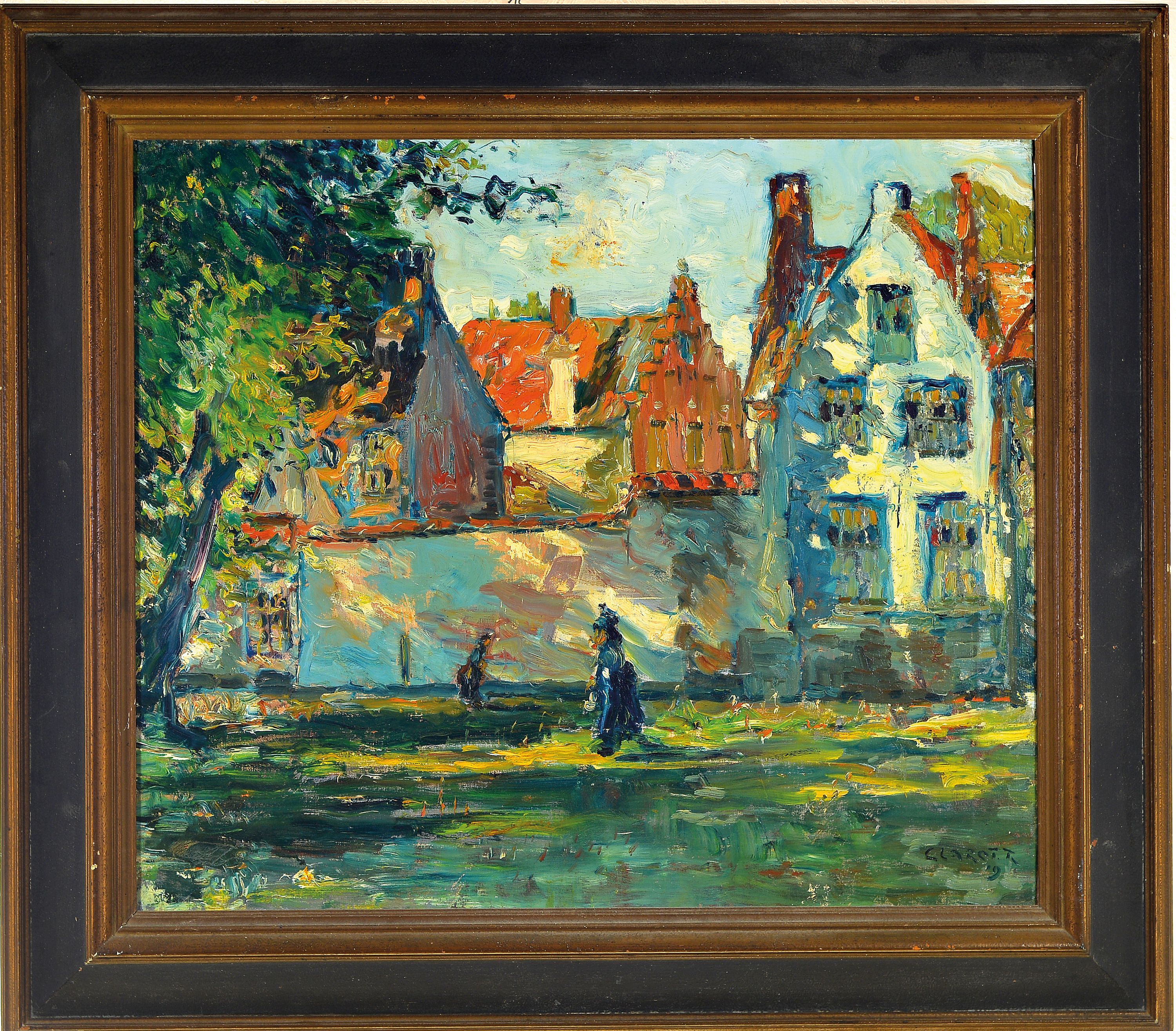 René Clarot, 1882 Anderlecht-1972 Ixelles, Personen vor der Stadtmauer, Öl/Lwd,