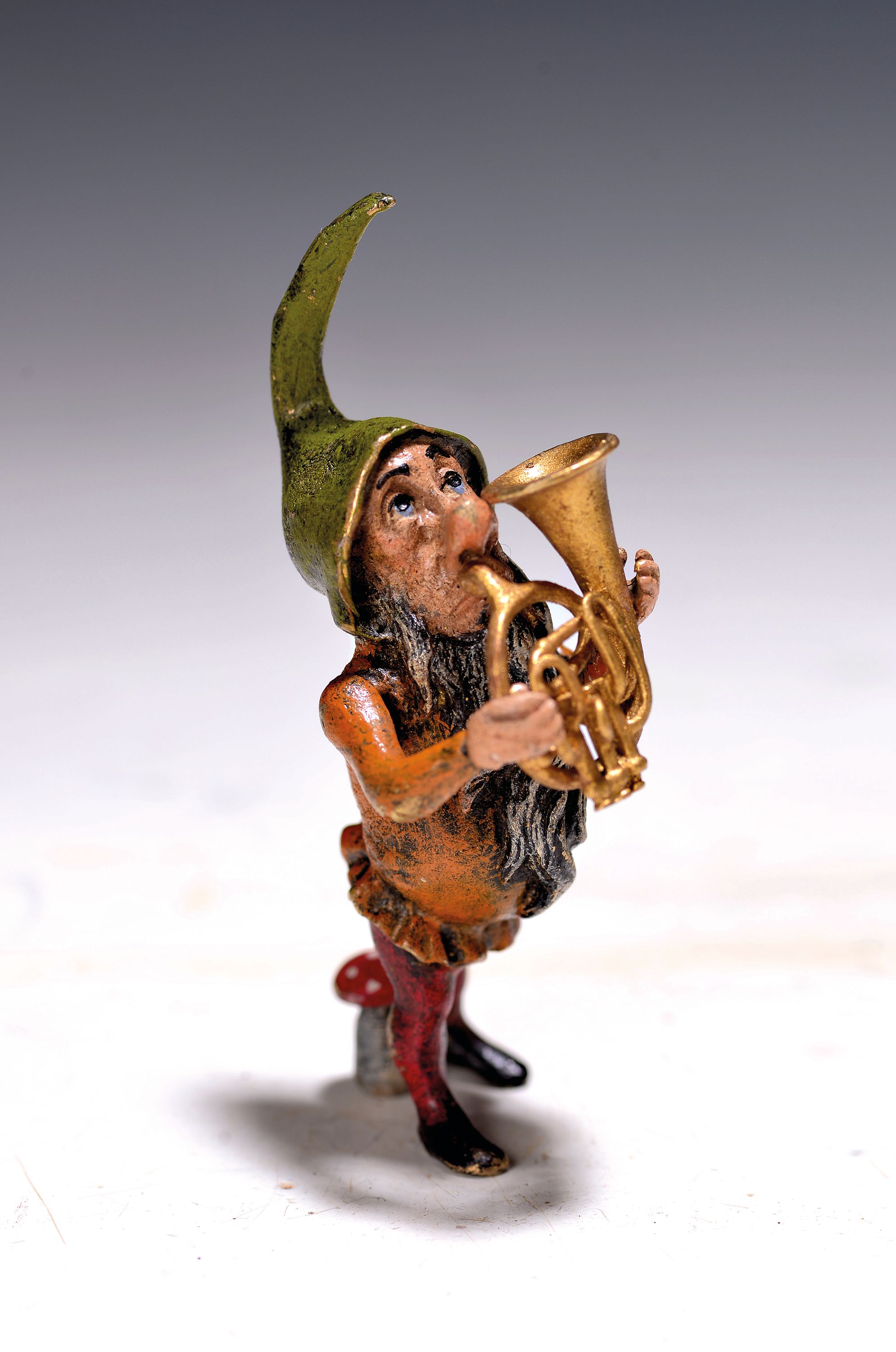 Wiener Bronze, Zwerg mit Blasinstrument, sign. Bergmann, bunt staffiert, H.ca. 8