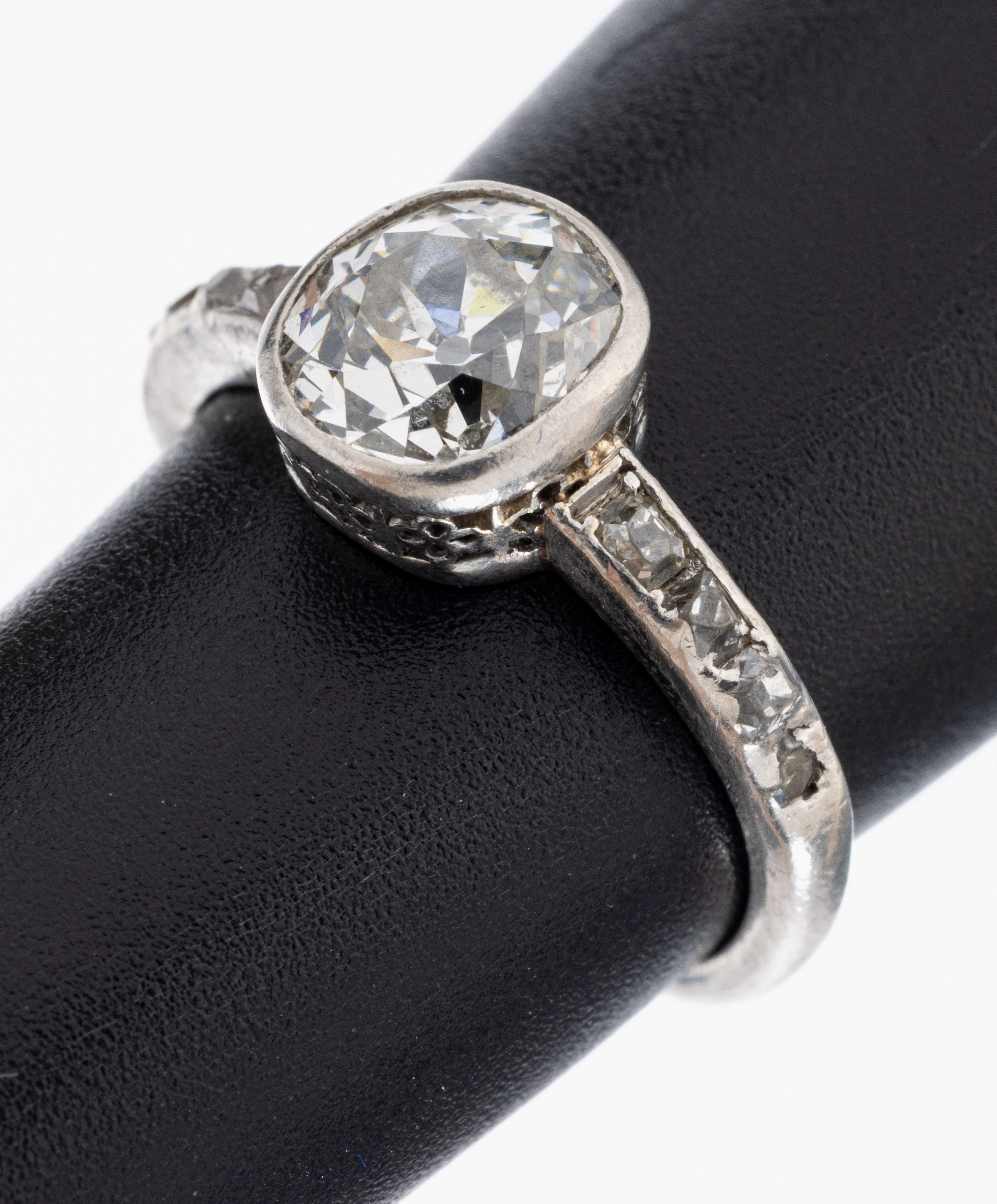 Platin Diamant-Ring, um 1860/70, Platin gepr., 1 Altschliff-Diamant ca. 1.20 ct l.get.Weiß/si,