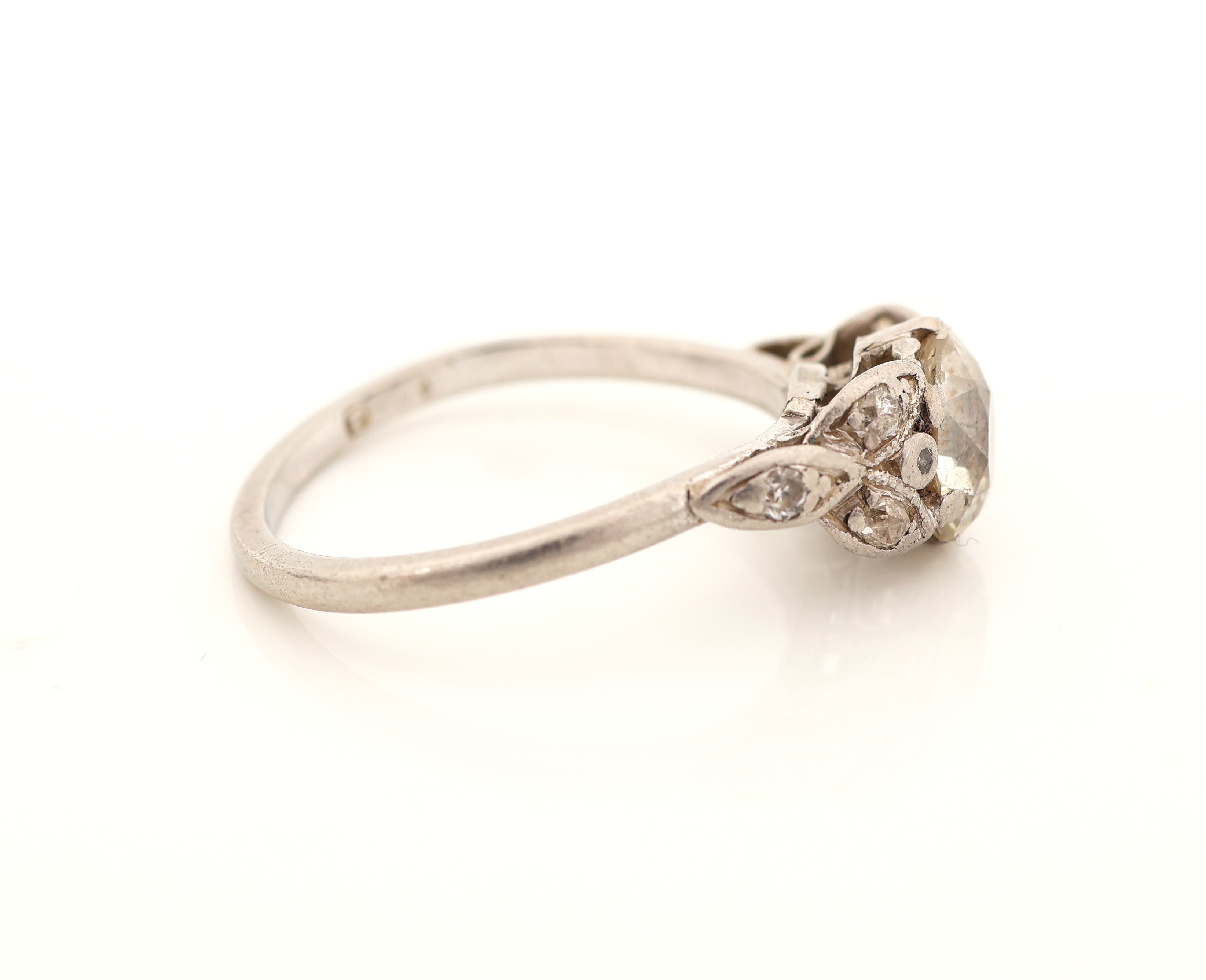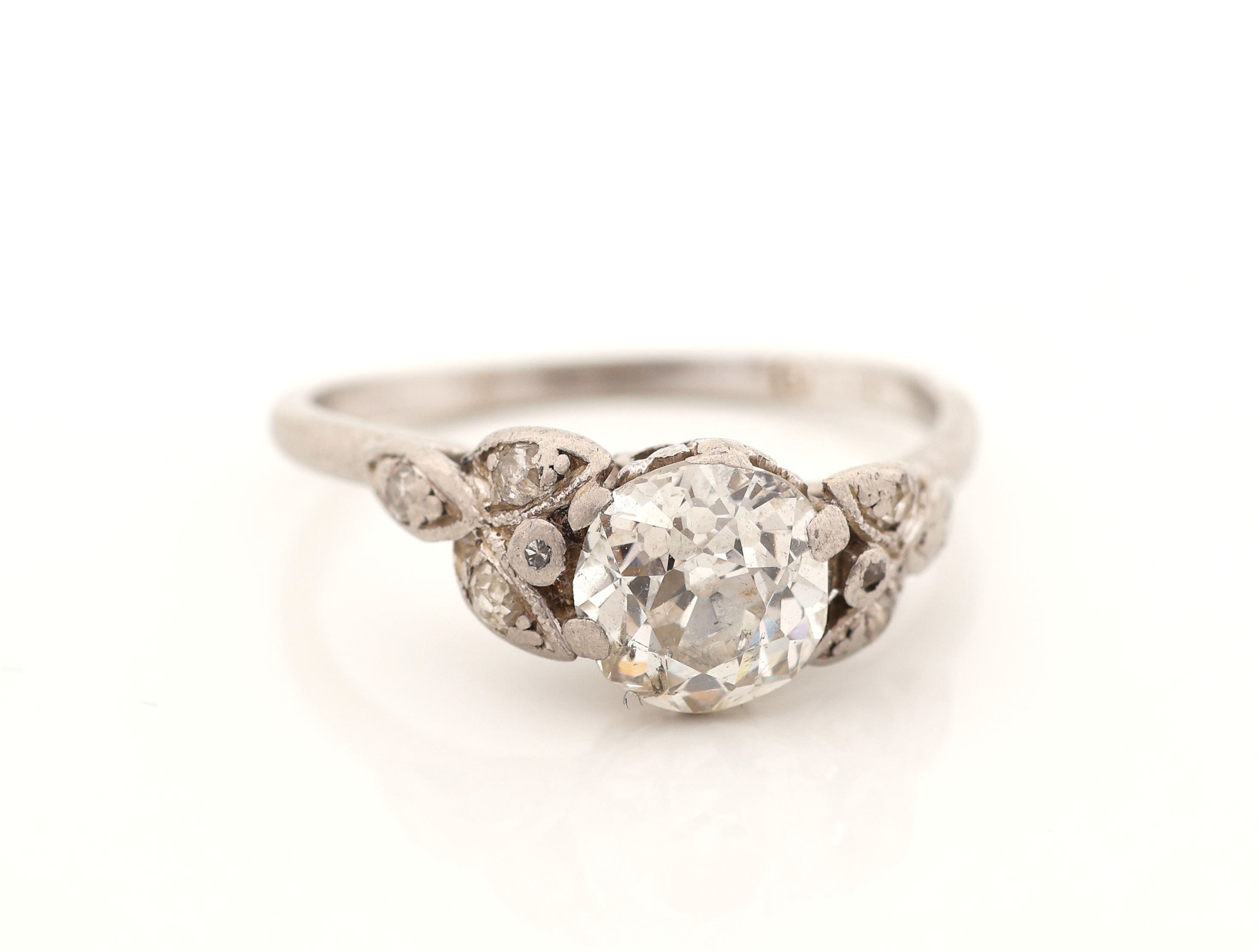 Platin Diamant-Ring, um 1860/70, Pt gepr., 1 Altschliff-Diamant ca. 1.30 ct get.Weiß/p,