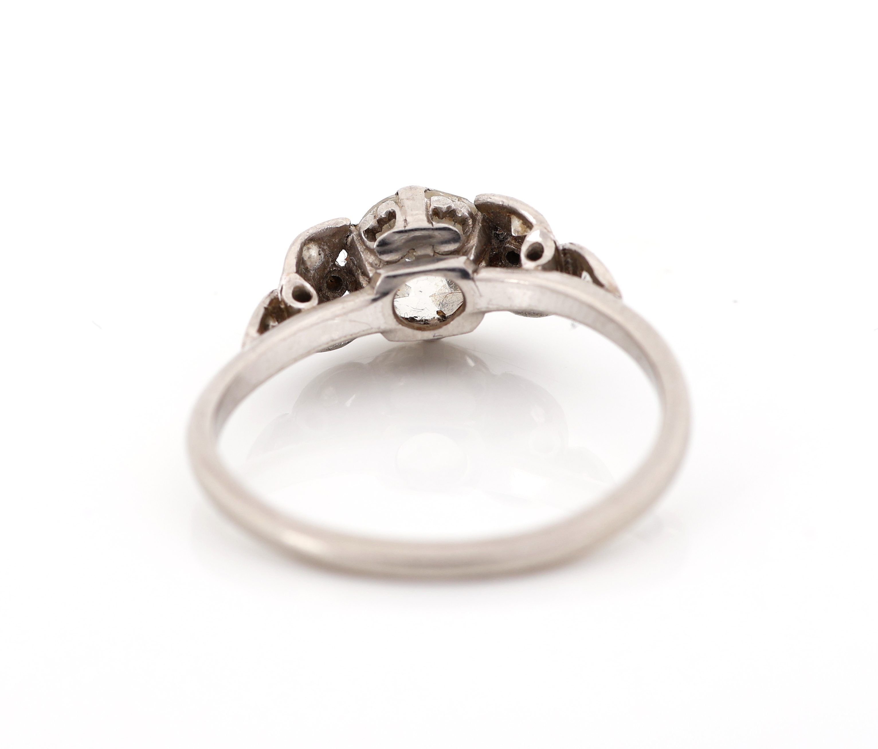 Ringschultern floral verziert, mit 8 Diamantrosen zus. ca. 0.07 ct, RW 53, ca. 3.6