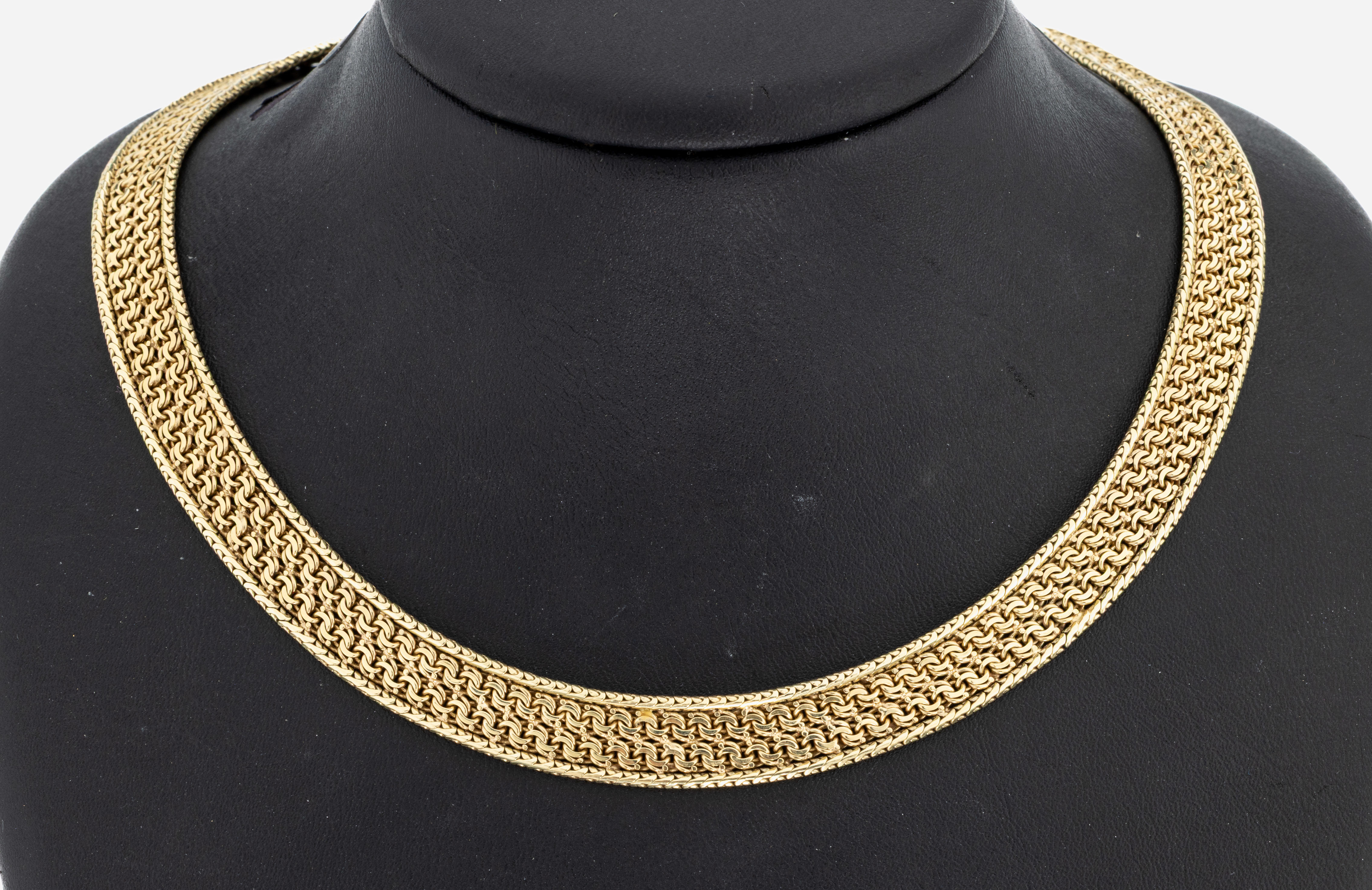 14 kt Gold Collier, GG 585/000, Flechtmuster, B. ca. 1 cm, L. ca. 20 cm, Kastenschloss