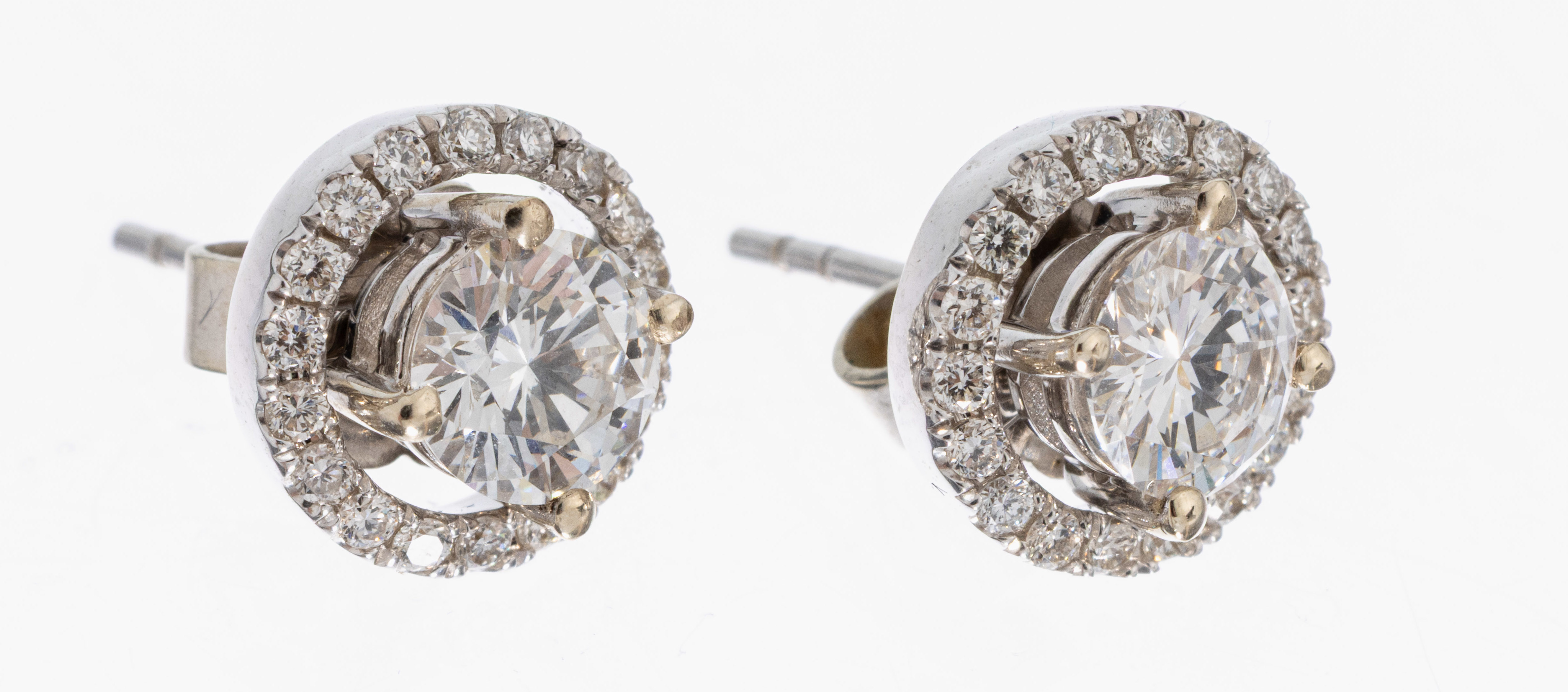 Paar 14 kt Gold Brillant-Ohrstecker, WG 585/000, 2 Brillanten zus. ca. 1.04 ct Weiß/vs-si,