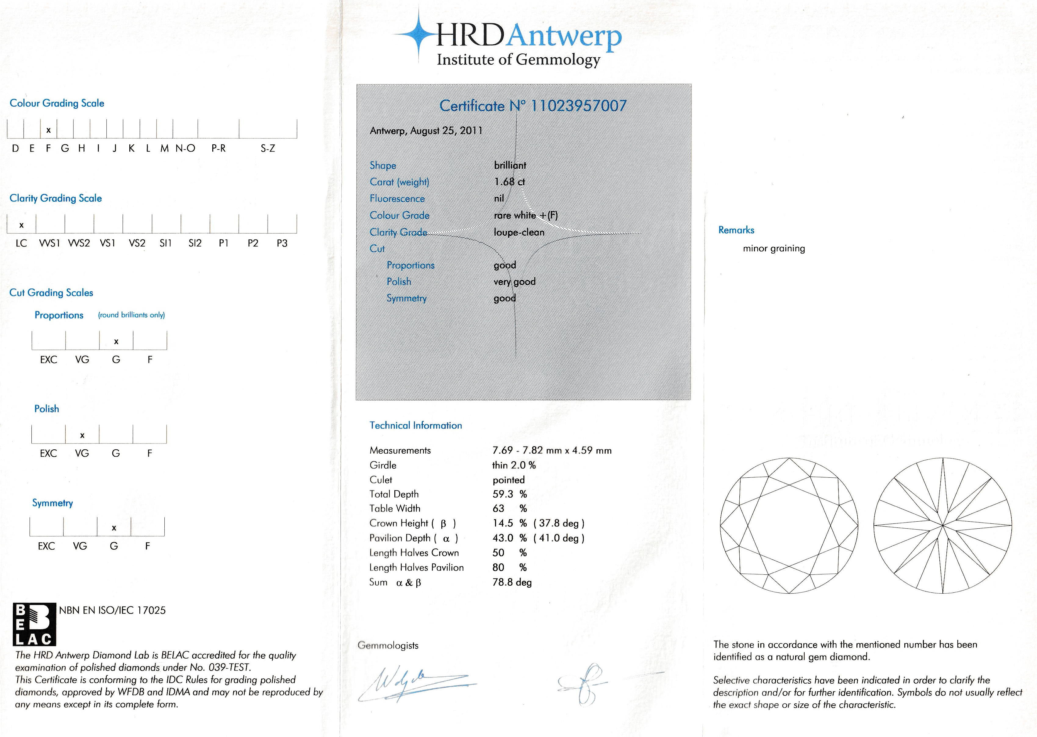 mit Brillanten zus. ca. 0.13 ct feines Weiß-Weiß/vs-si, RW 53, ca. 3.0 g, HRD-Expertise
