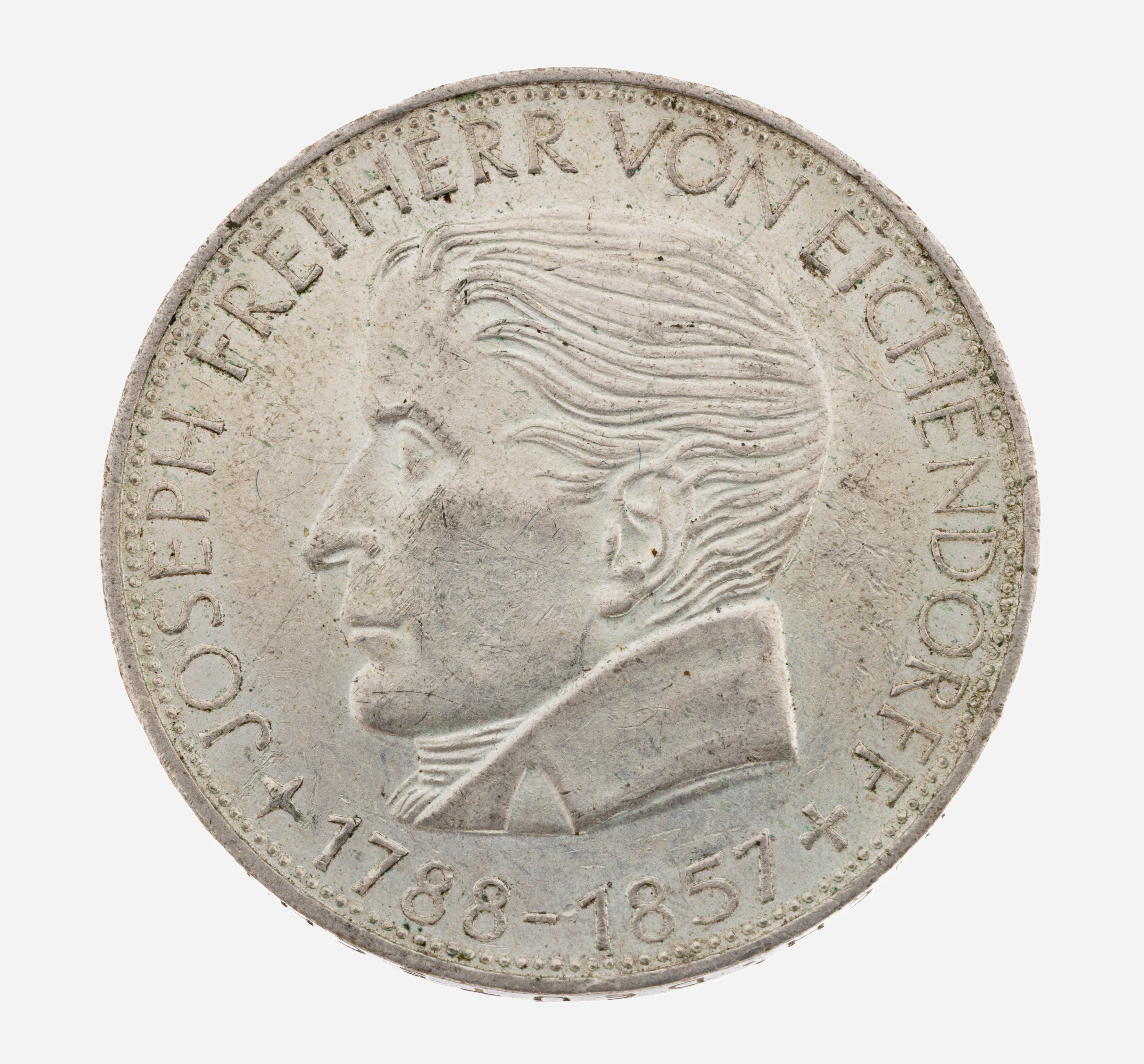 Silbermünze 5 Mark, Deutschland, 1957, Freiherr von Eichendorff