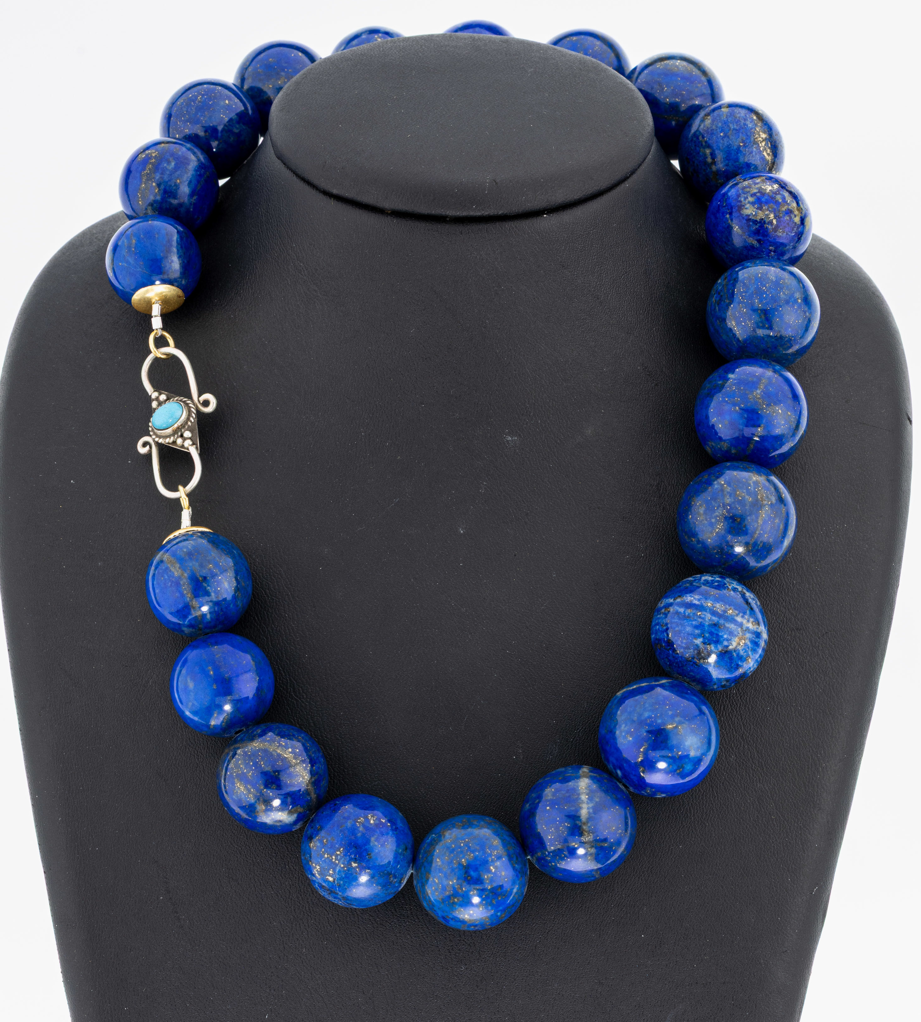 Lapislazuli-Collier, im Verlauf Lapislazuli-Kugeln mit Pyriteinschlüssen, D. ca.