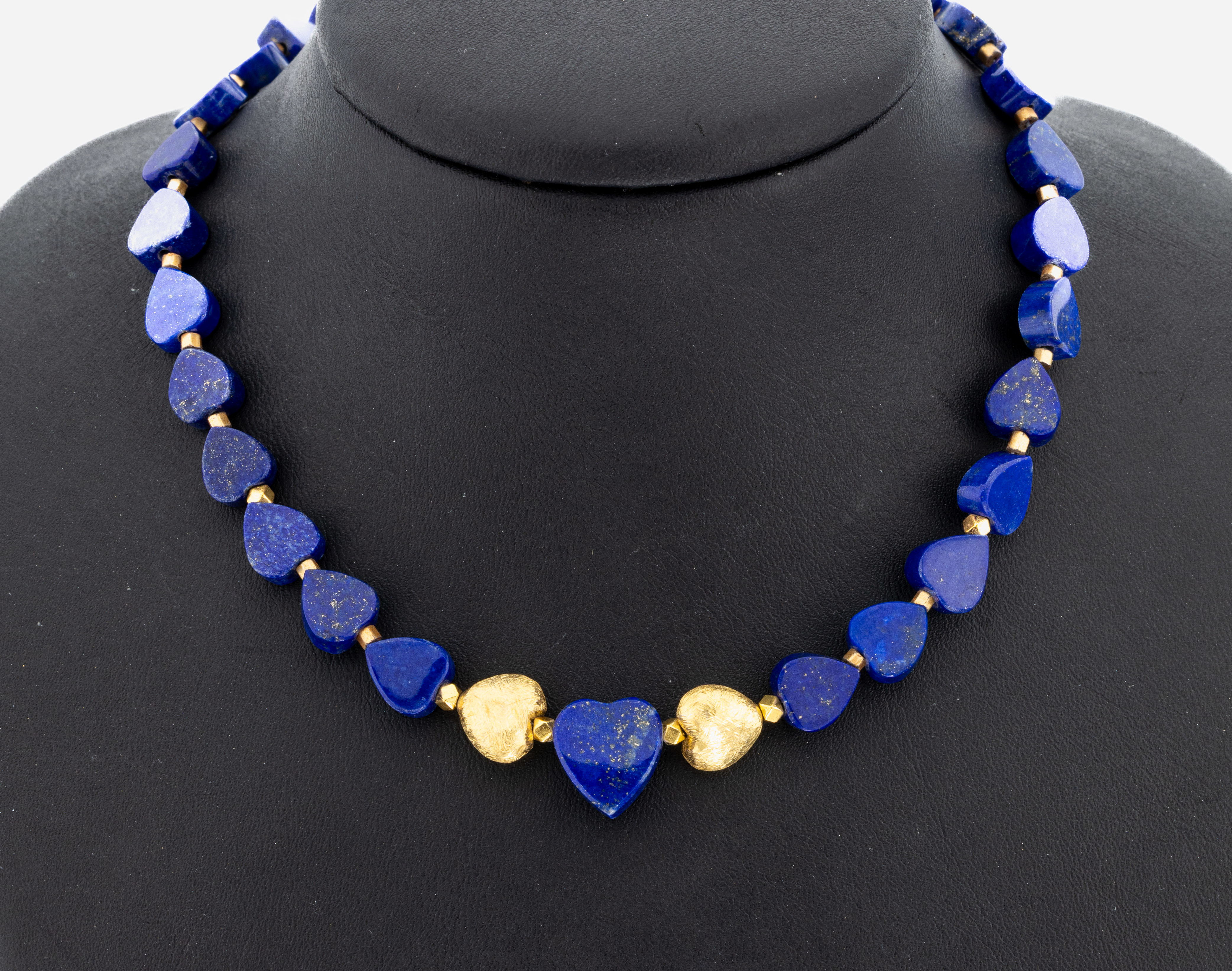 Ausgefallenes Lapislazuli-Collier, herzf. Glieder, Zwischenglieder und 2 herzf. Glieder
