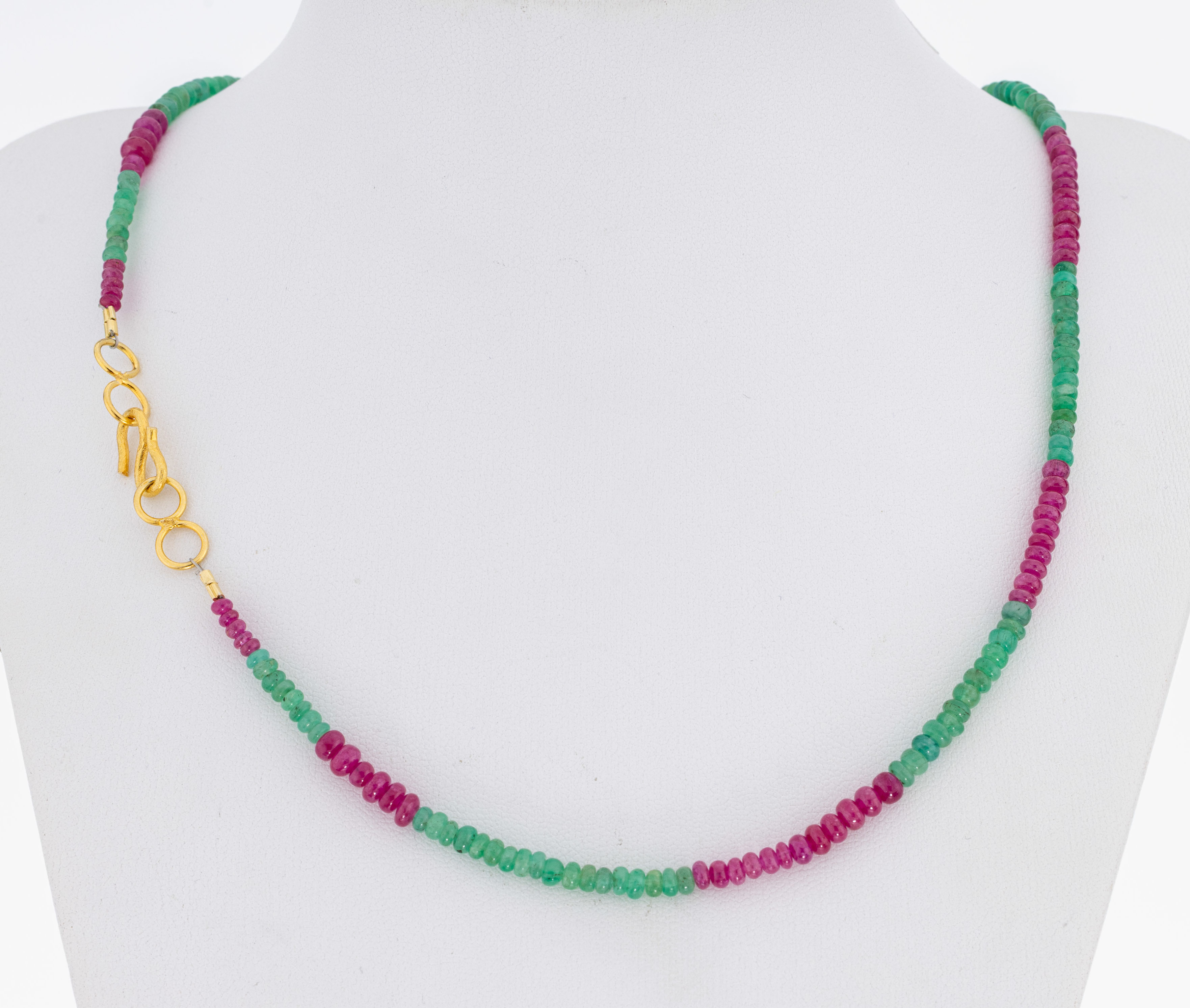 Smaragd-Rubin-Collier, Smaragd- und Rubin- Linsen, D. ca. 2.6-3.7 mm, L. ca. 47.5