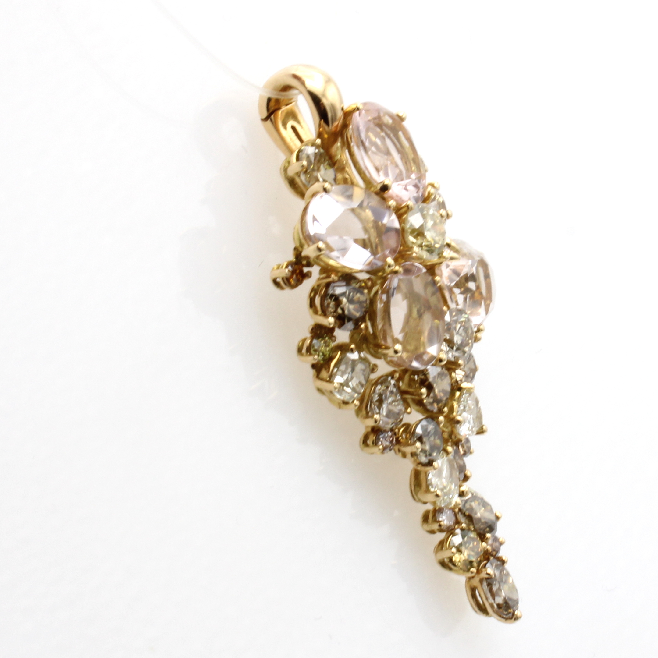 Clipanhänger mit Morganiten und Diamanten, GG 750/000, Diam. in versch. Schliffarten zus. ca. 6.66 ct nat. fancy Colour/si, 4 Morganite, Krappenfassungen Schätzpreis: 18000, - EUR