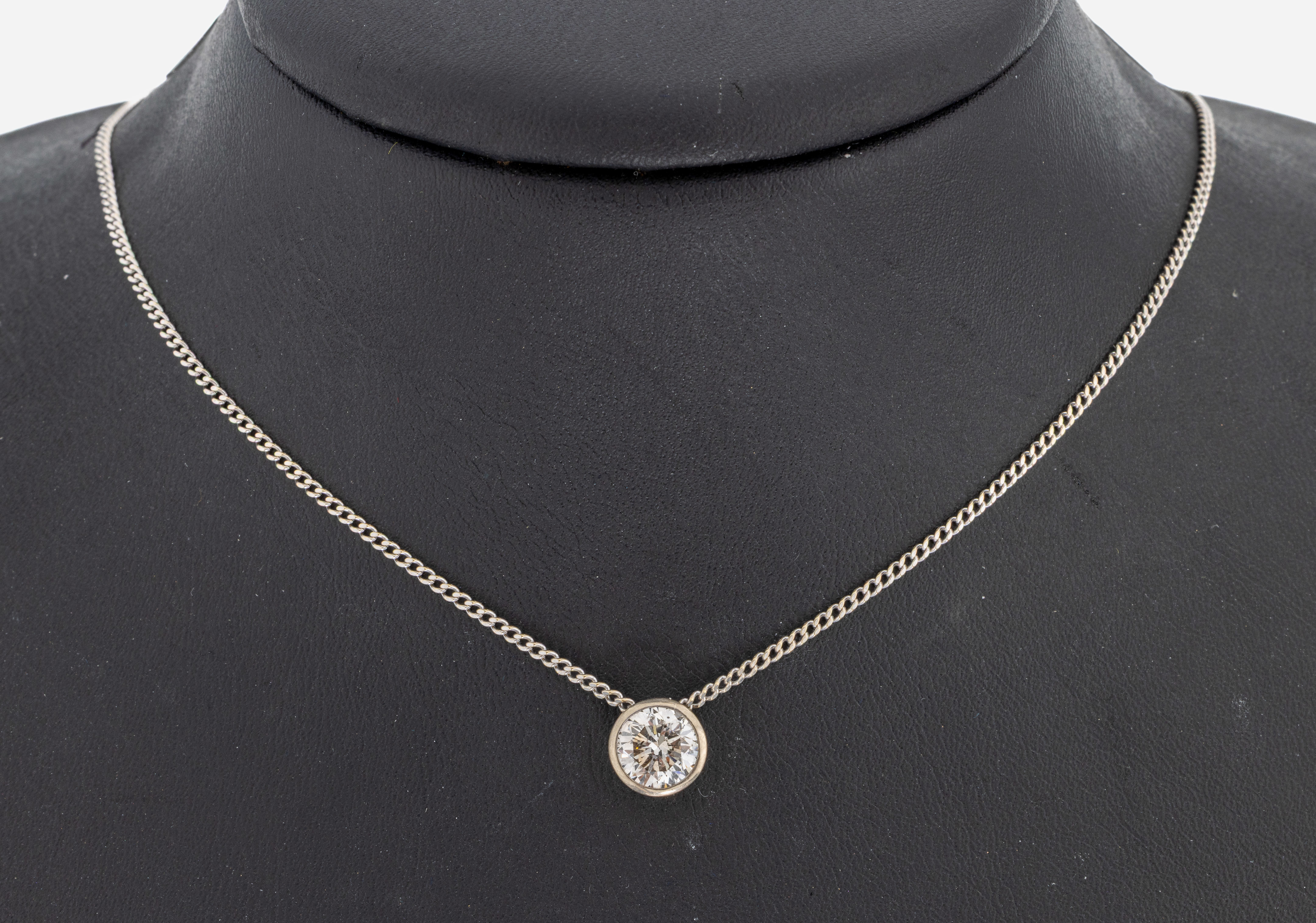 14 kt Gold Brillant-Collier, WG 585/000, Brillant in Zargenfassung, bewegl. gearbeitet,ca.