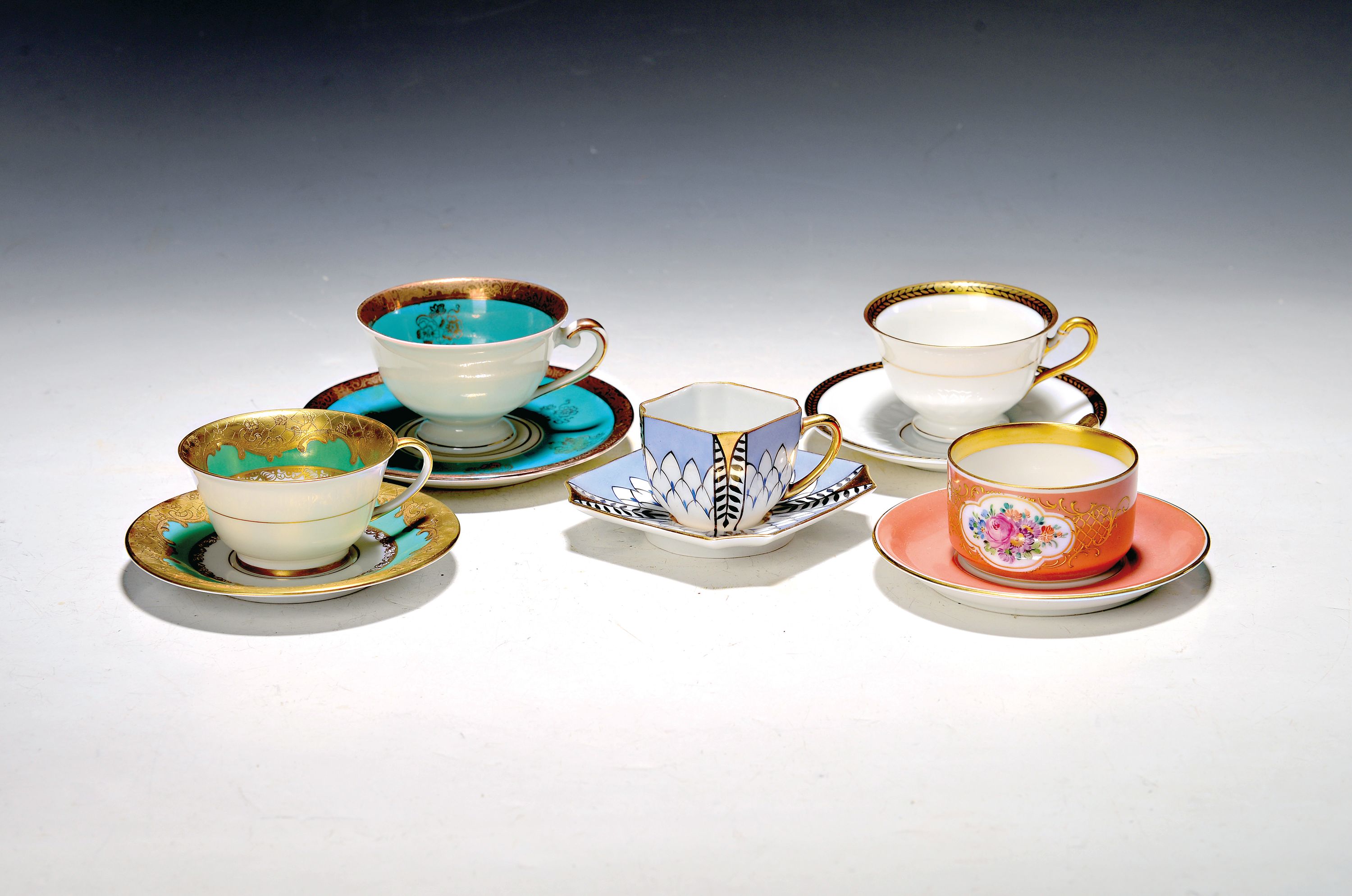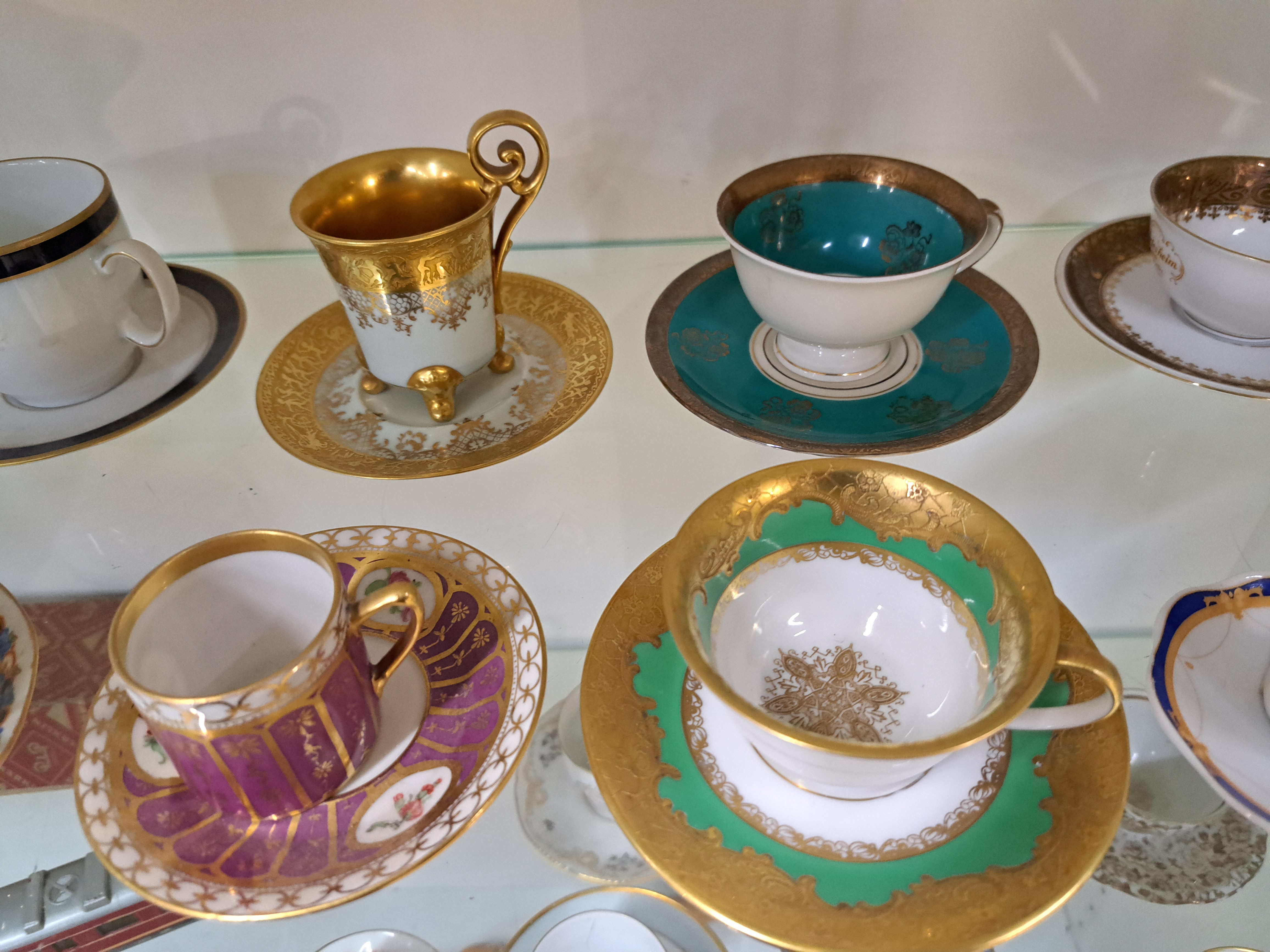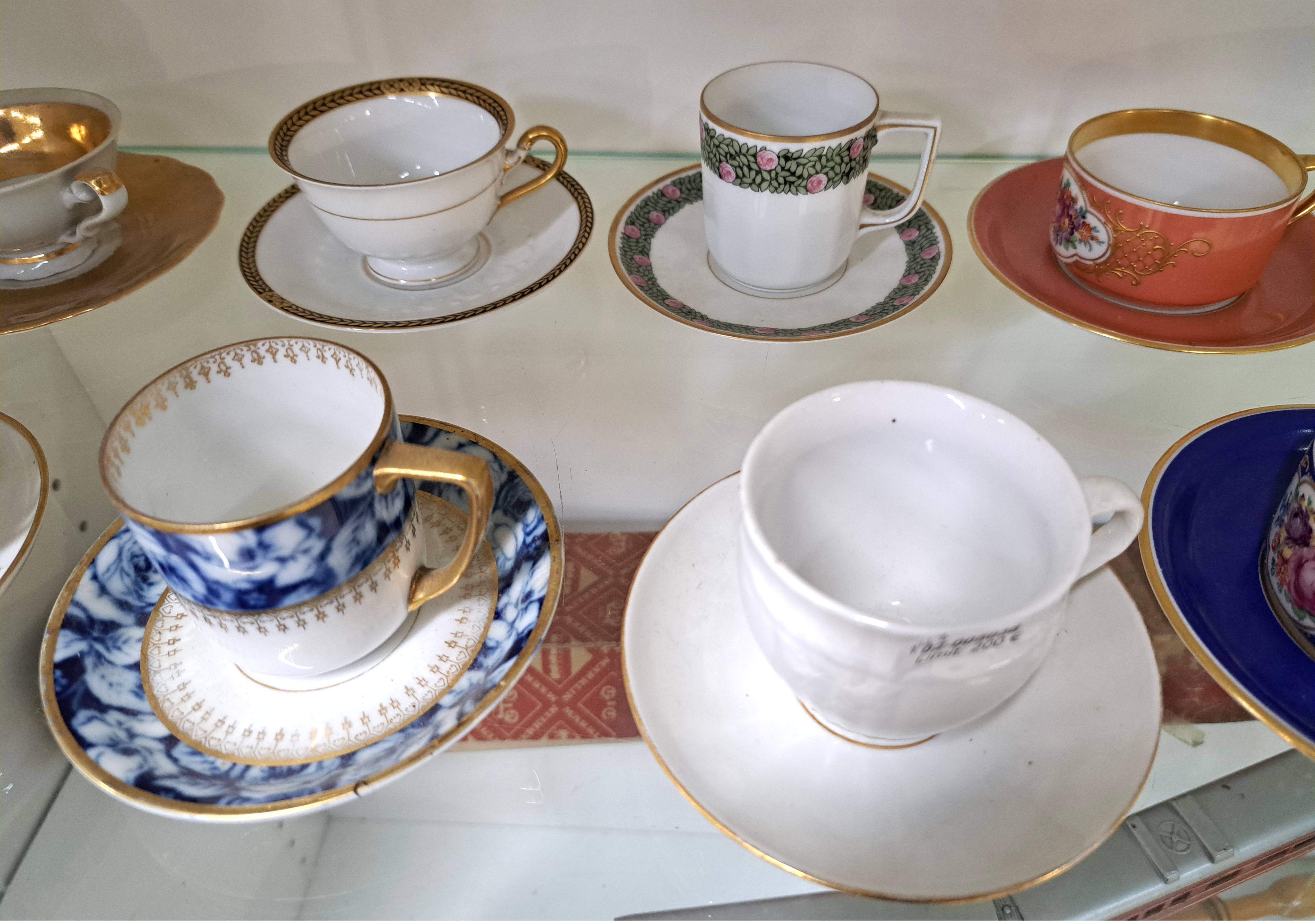 Konvolut aus 24 Sammeltassen, u.a. Hutschenreuther, Rosenthal, Kronach, 19./20.Jh., Porzellan, variantenreiche Dekore und Formen, z.T. goldstaffiert, Alterssp.