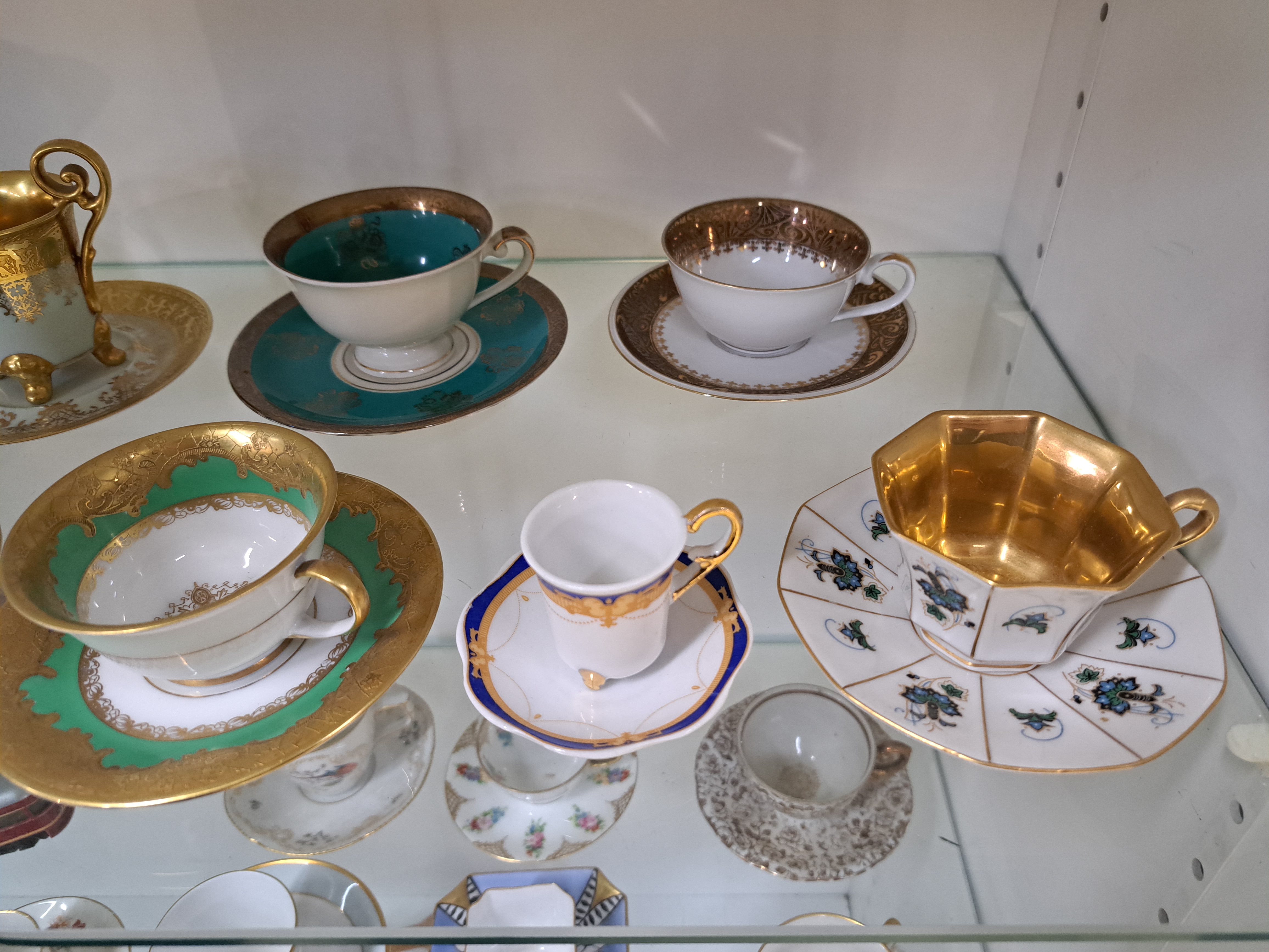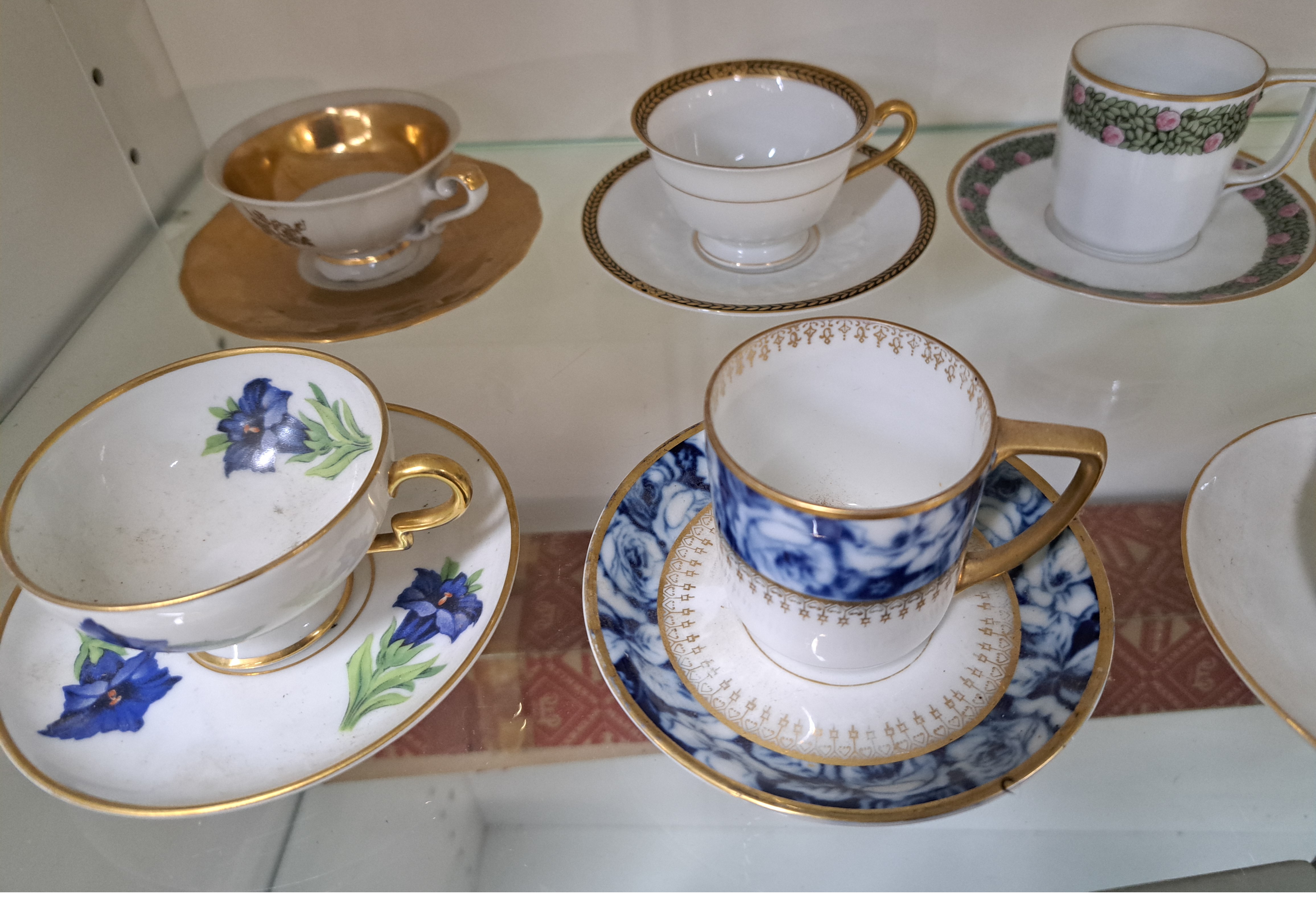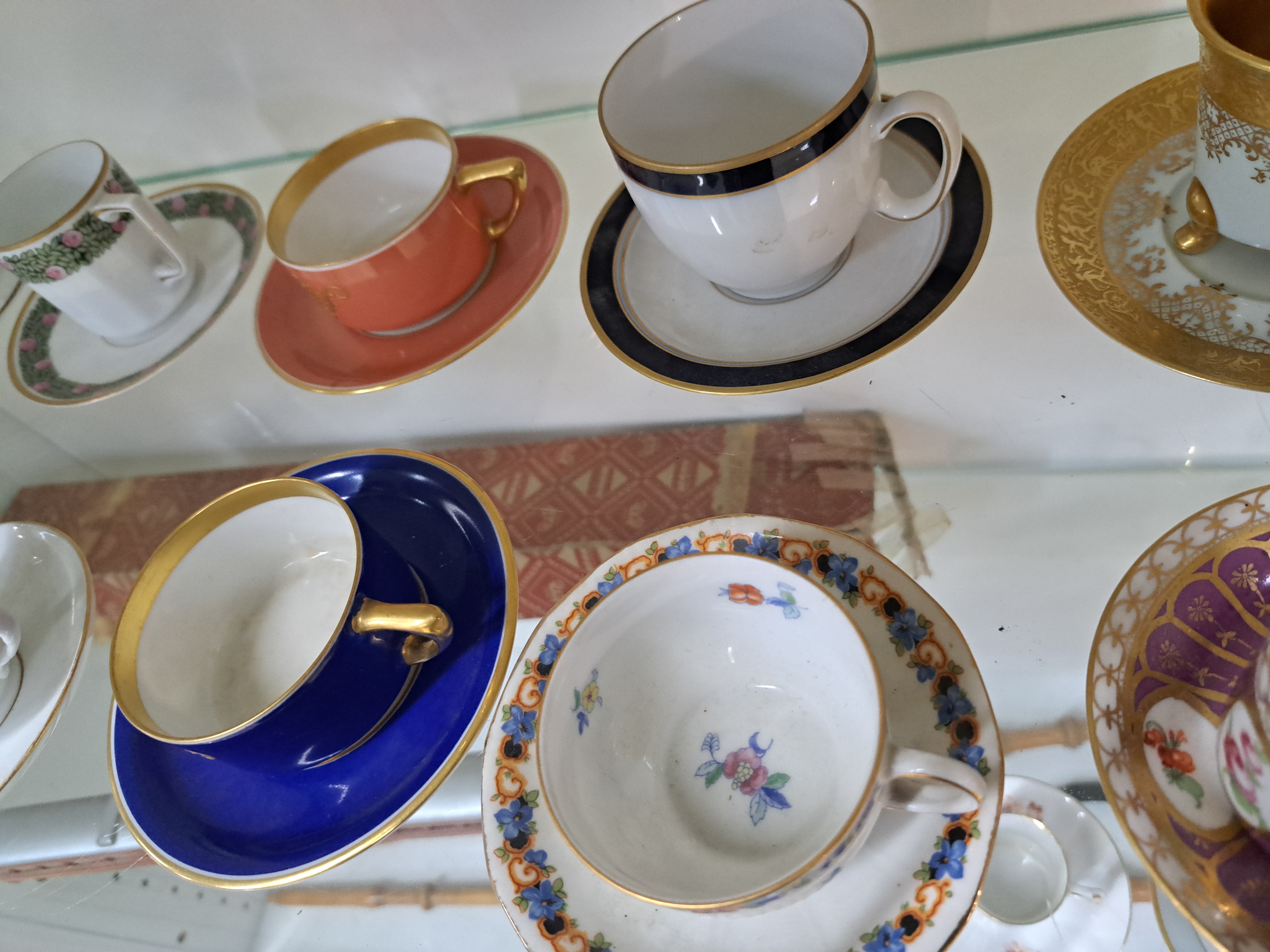 Konvolut aus 24 Sammeltassen, u.a. Hutschenreuther, Rosenthal, Kronach, 19./20.Jh., Porzellan, variantenreiche Dekore und Formen, z.T. goldstaffiert, Alterssp.