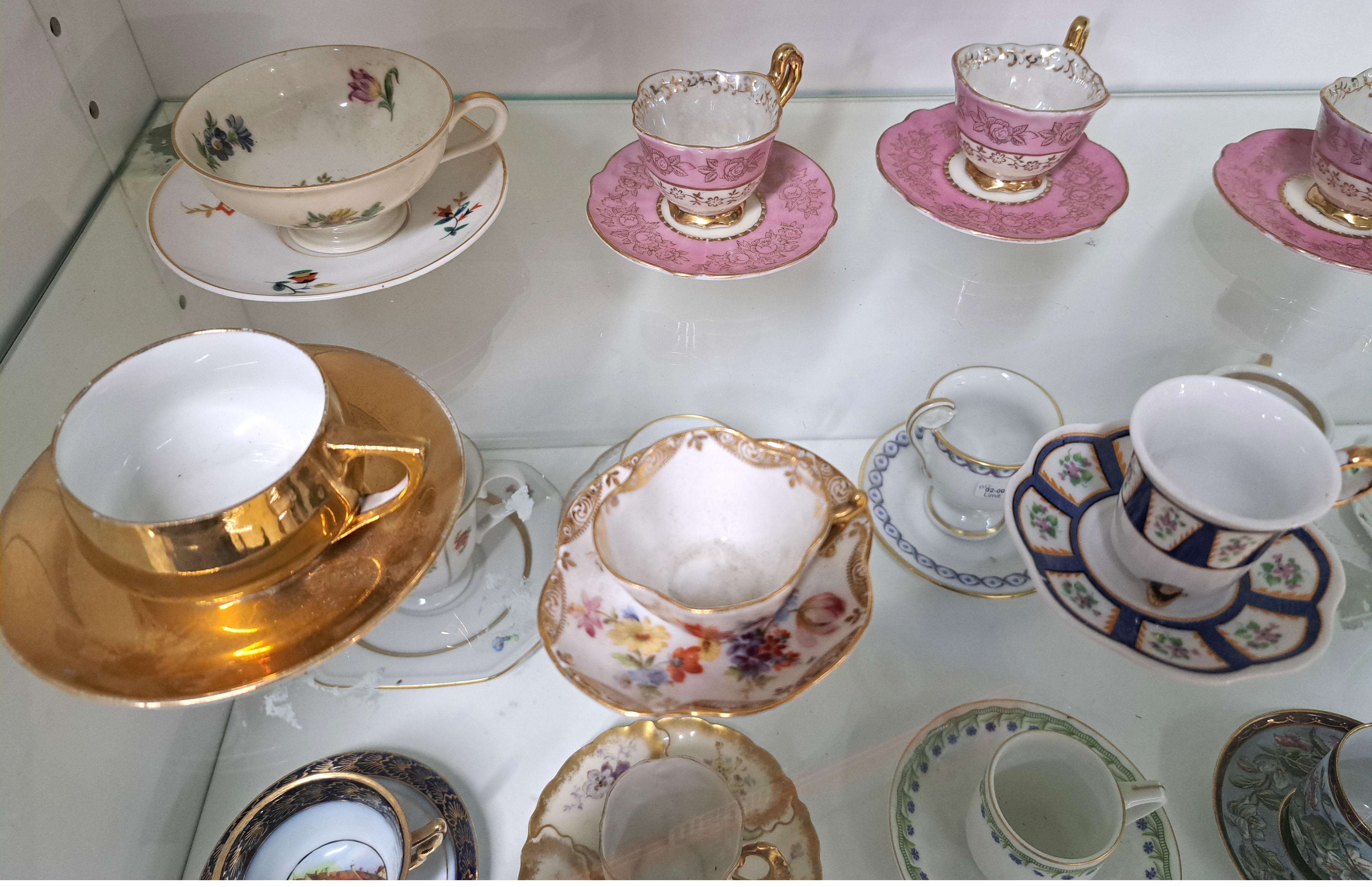 Konvolut aus 24 Sammeltassen, u.a Limoges, Haviland, 19./20.Jh., Porzellan, verschiedene Dekore und Formen, z.T. goldstaffiert, Alterssp.