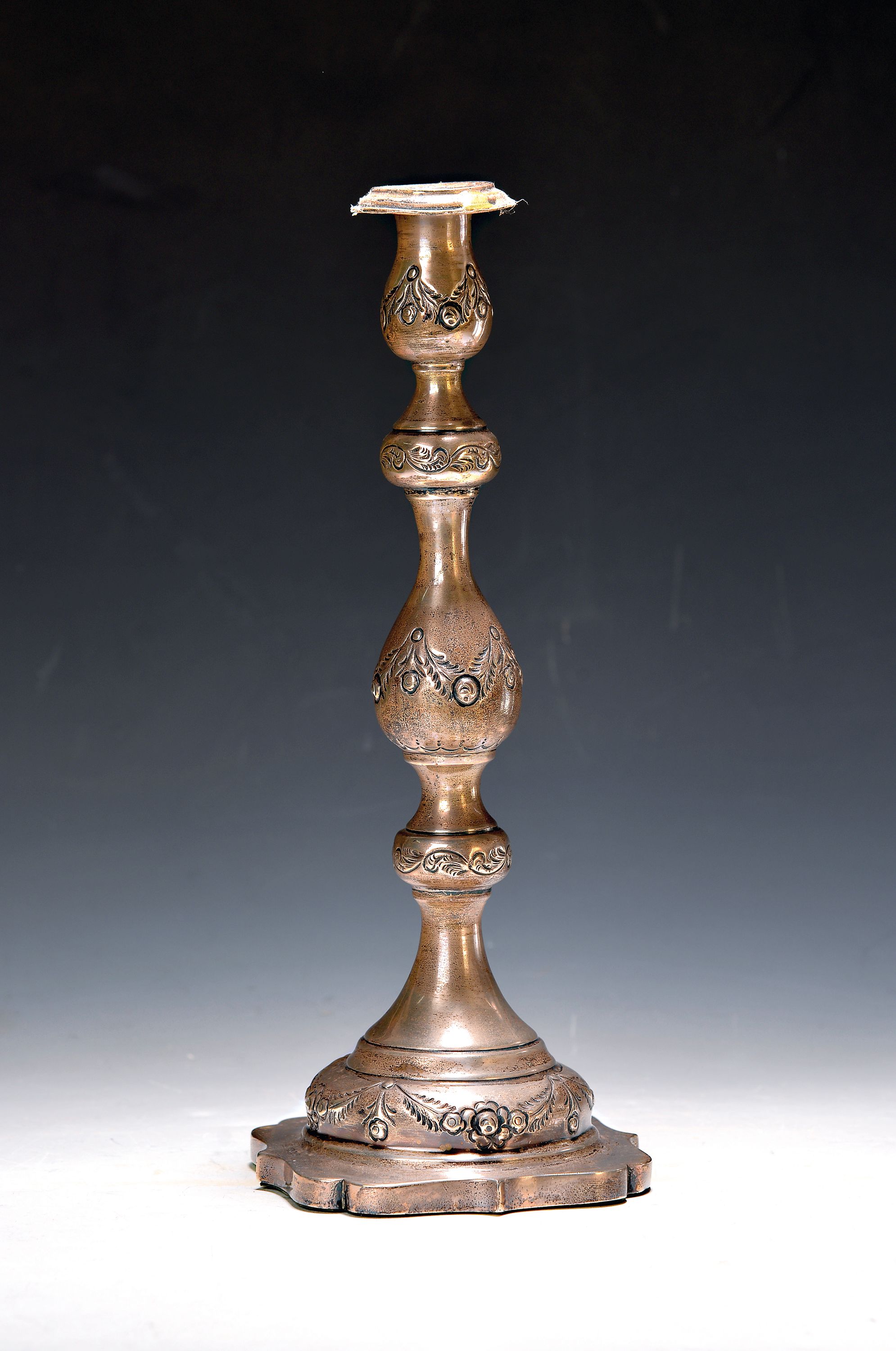 Silberleuchter, London, 1924, fünffach gegliederter Balusterkorpus, Blütendekor, teilgefüllt, 732g, H. 33 cm