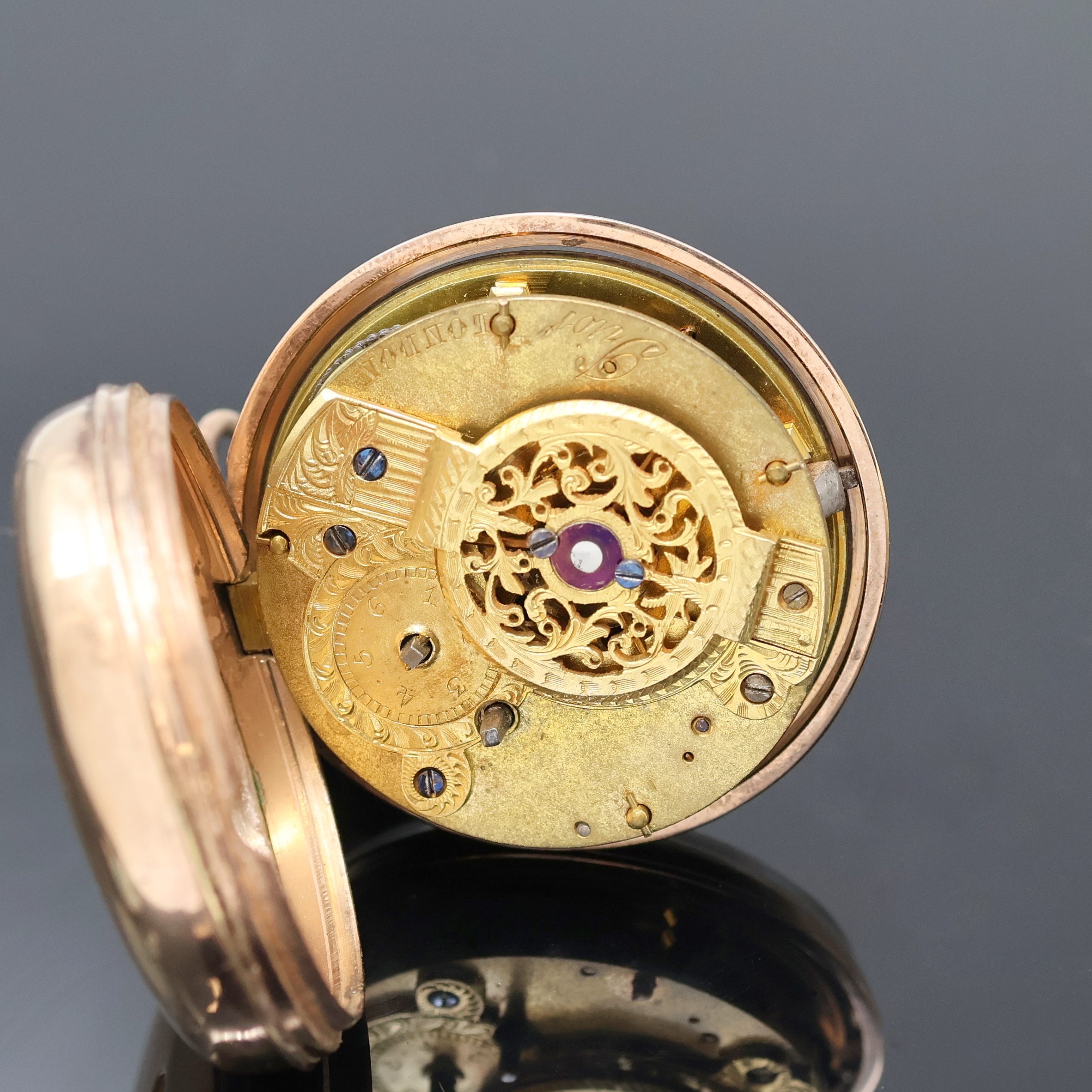PRIOR London vergoldete Spindeltaschenuhr, um 1820, Schlüsselaufzug, glattes Geh.,
