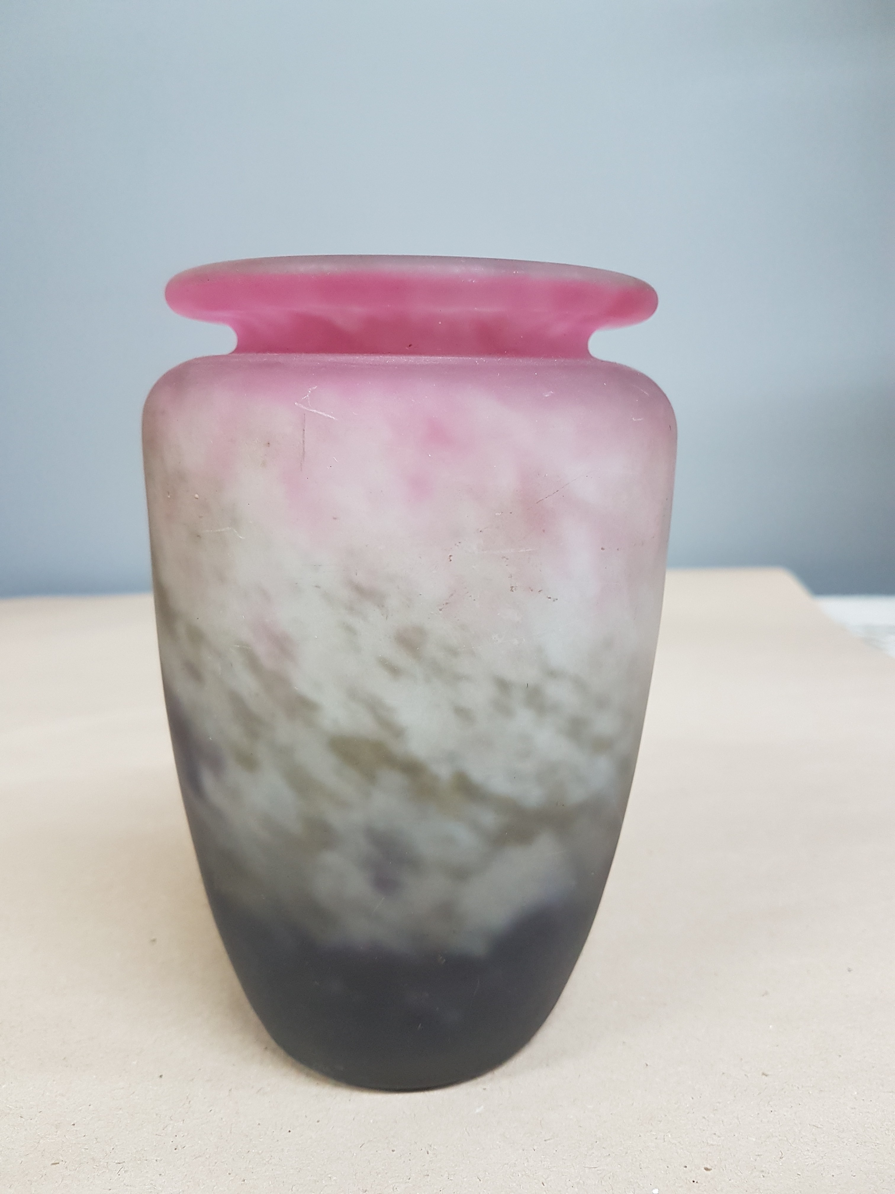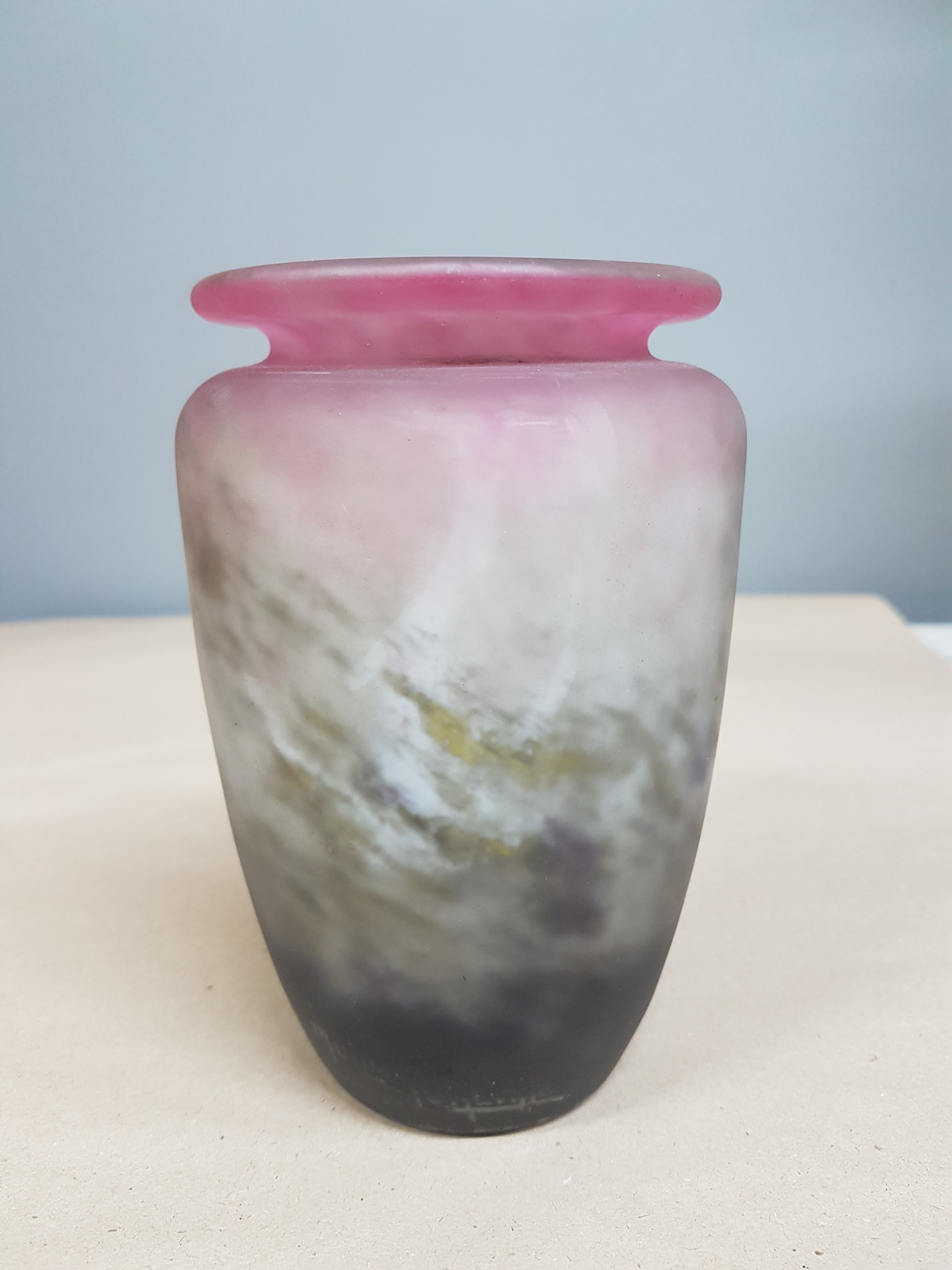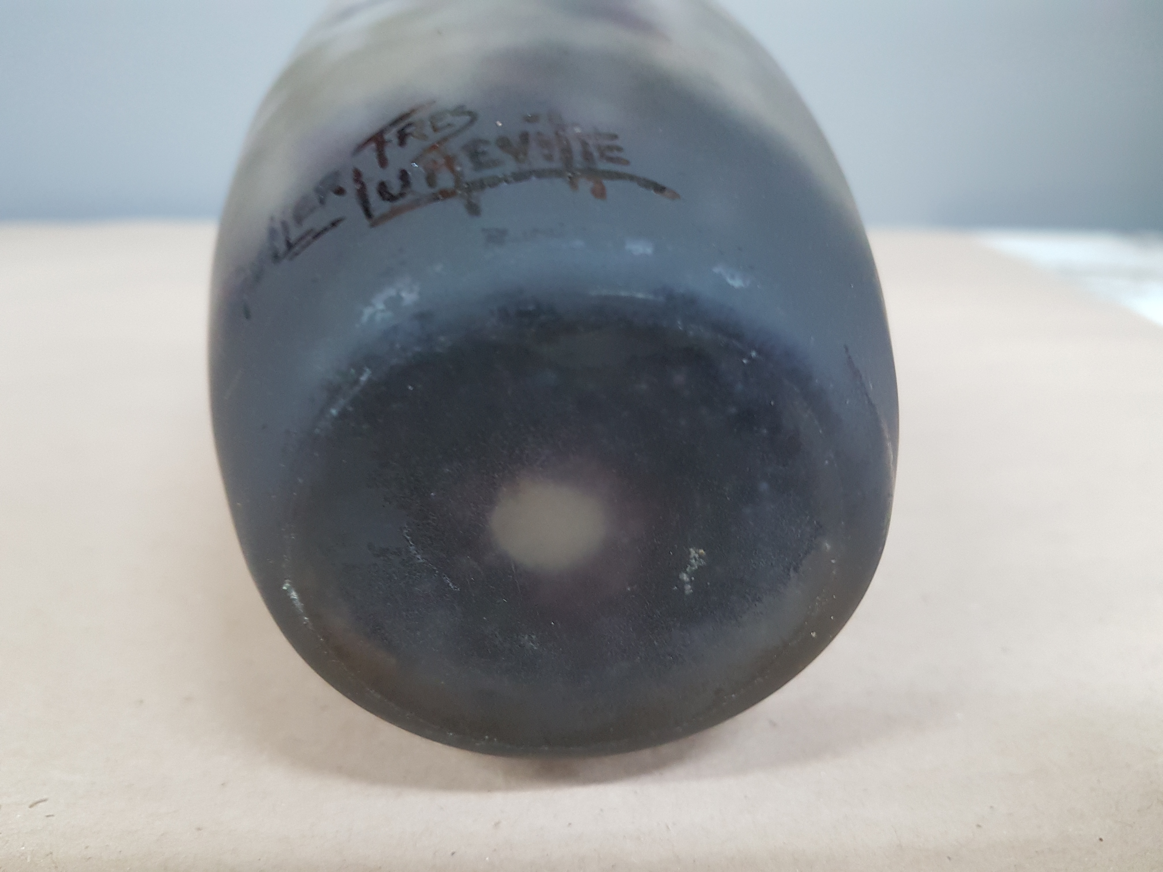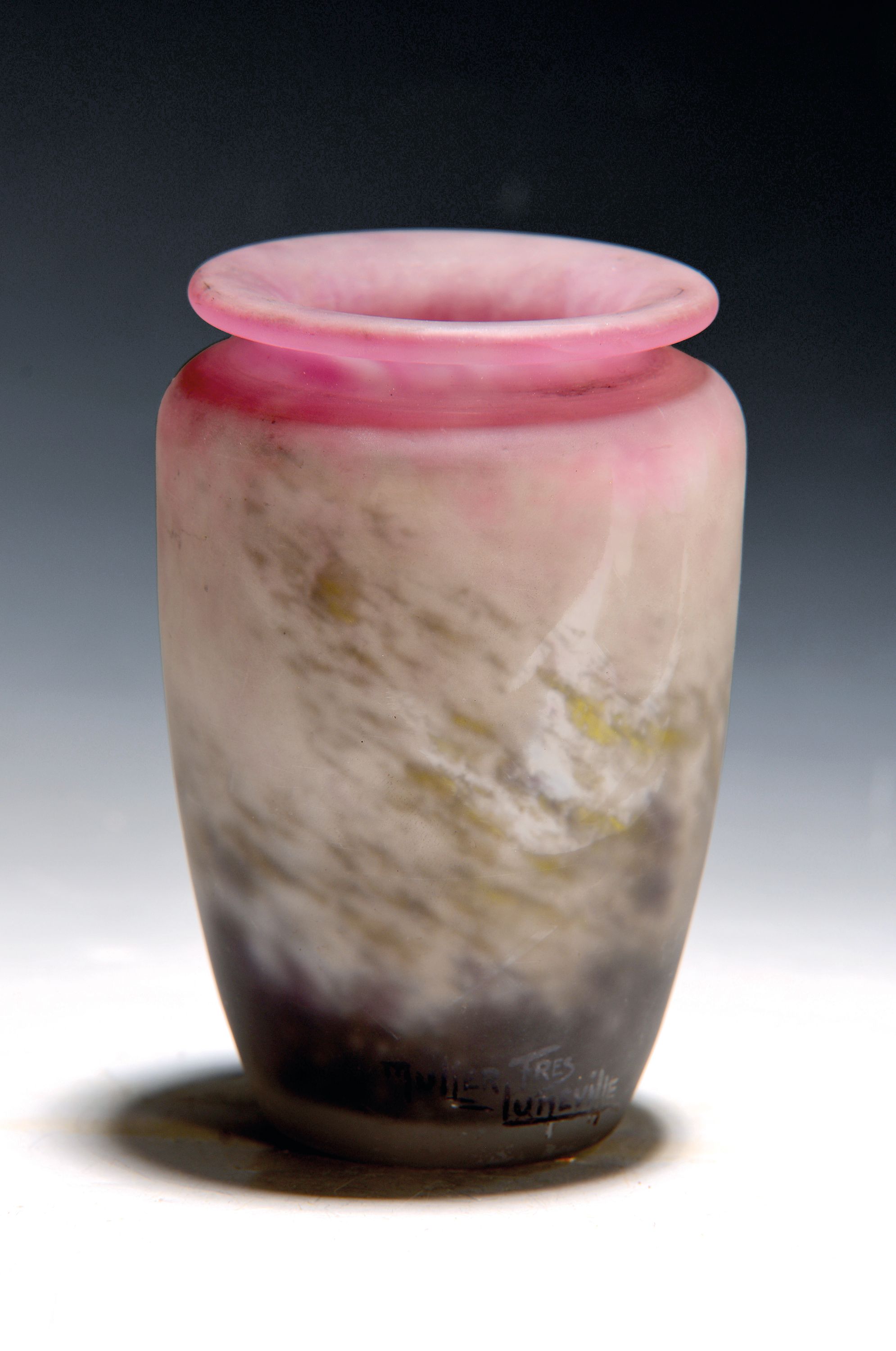 Ziervase, Müller Fres, Luneville, 1.Viertel 20.Jh., farbloses Glas mit violetten,
