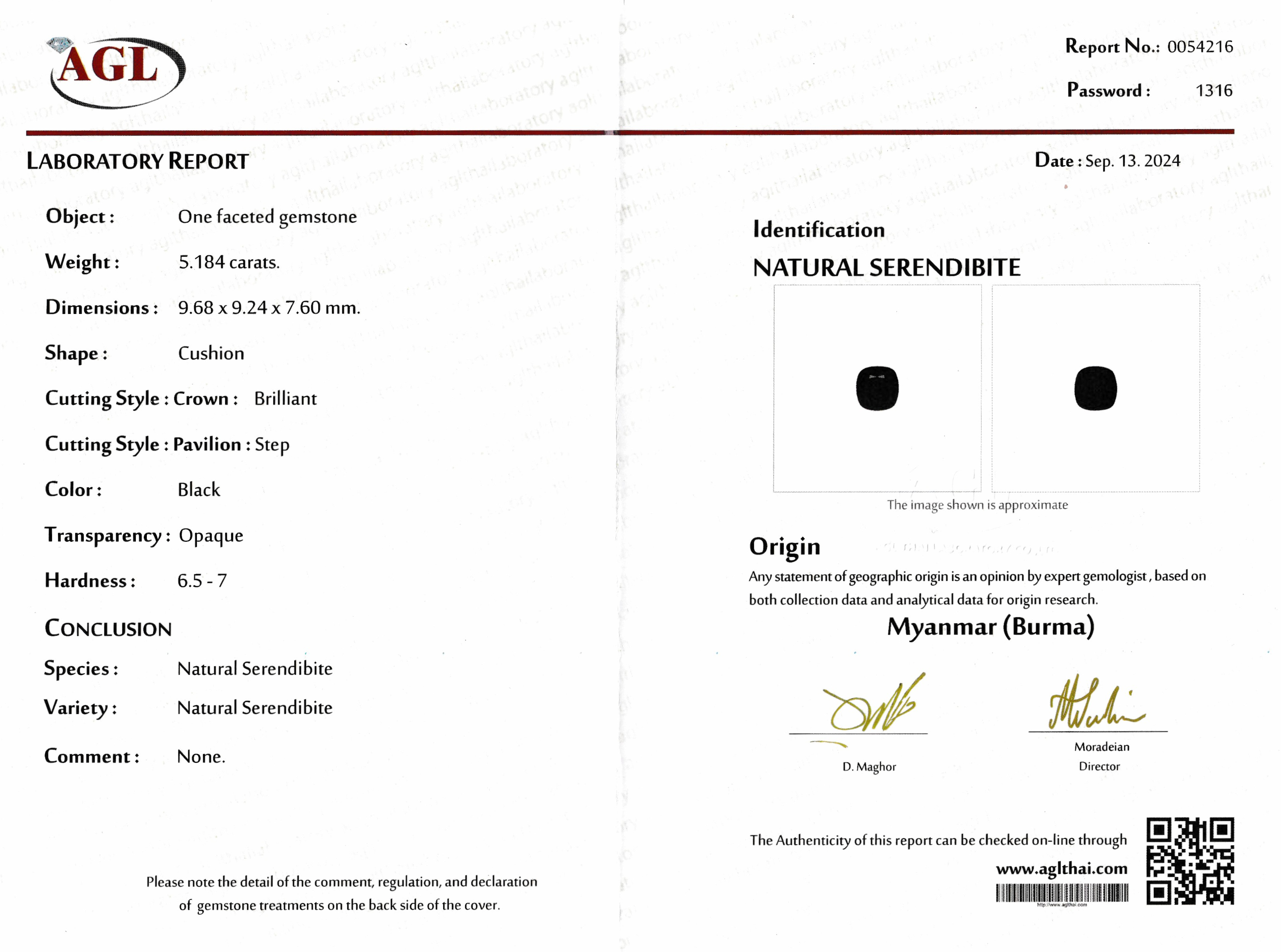 Loser Serendibit, 5.184 ct, 9.68 x 9.24 x 7.60 mm, Herkunft Myanmar (Burma), AGL -Expertise anbei, Wertgutachten 2600 EUR anbei