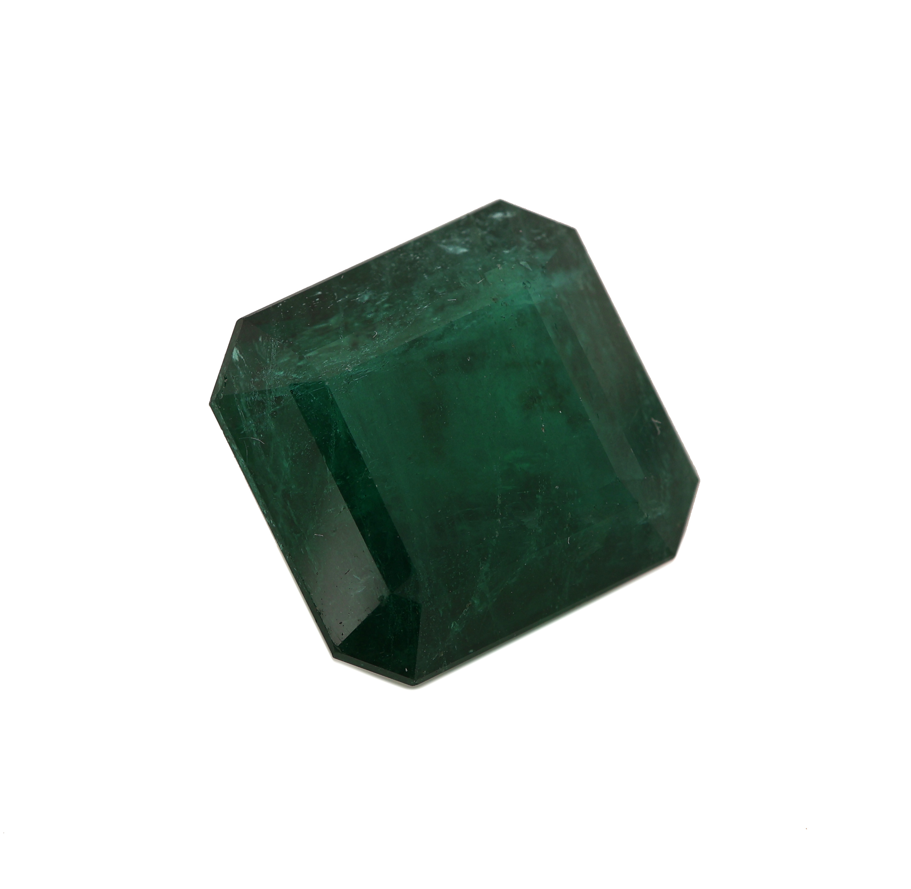 Loser Smaragd, 14.54 ct, 13.8 x 14.4 x 9.3 mm, oktagonaler Treppenschliff, Herkunft Sambia, Wertgutachten über 29000 EUR anbei