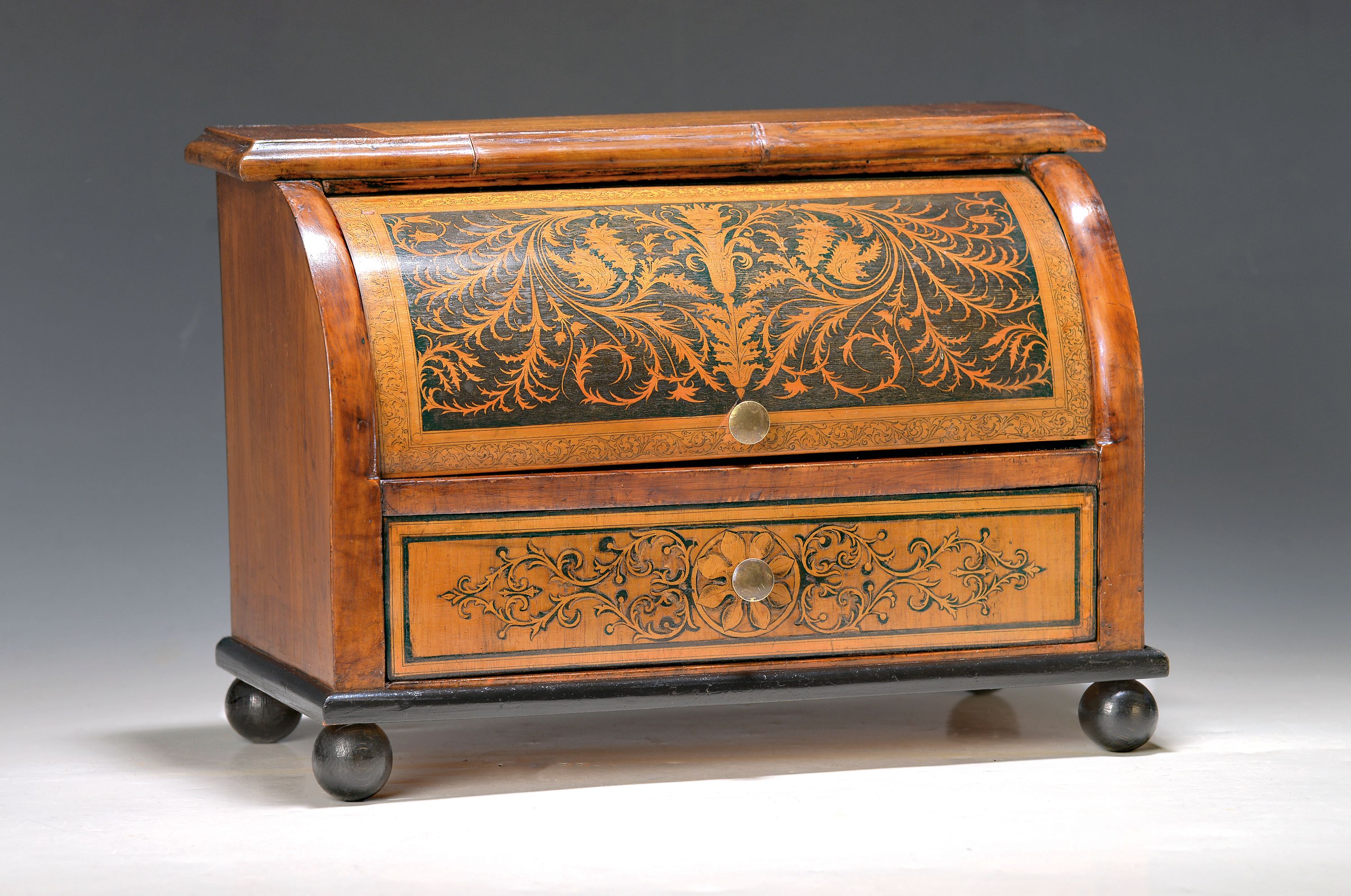 Modellmöbel, deutsch, um 1890, Historismus, kleines Rollbüro, Nussbaum und Ahorn,