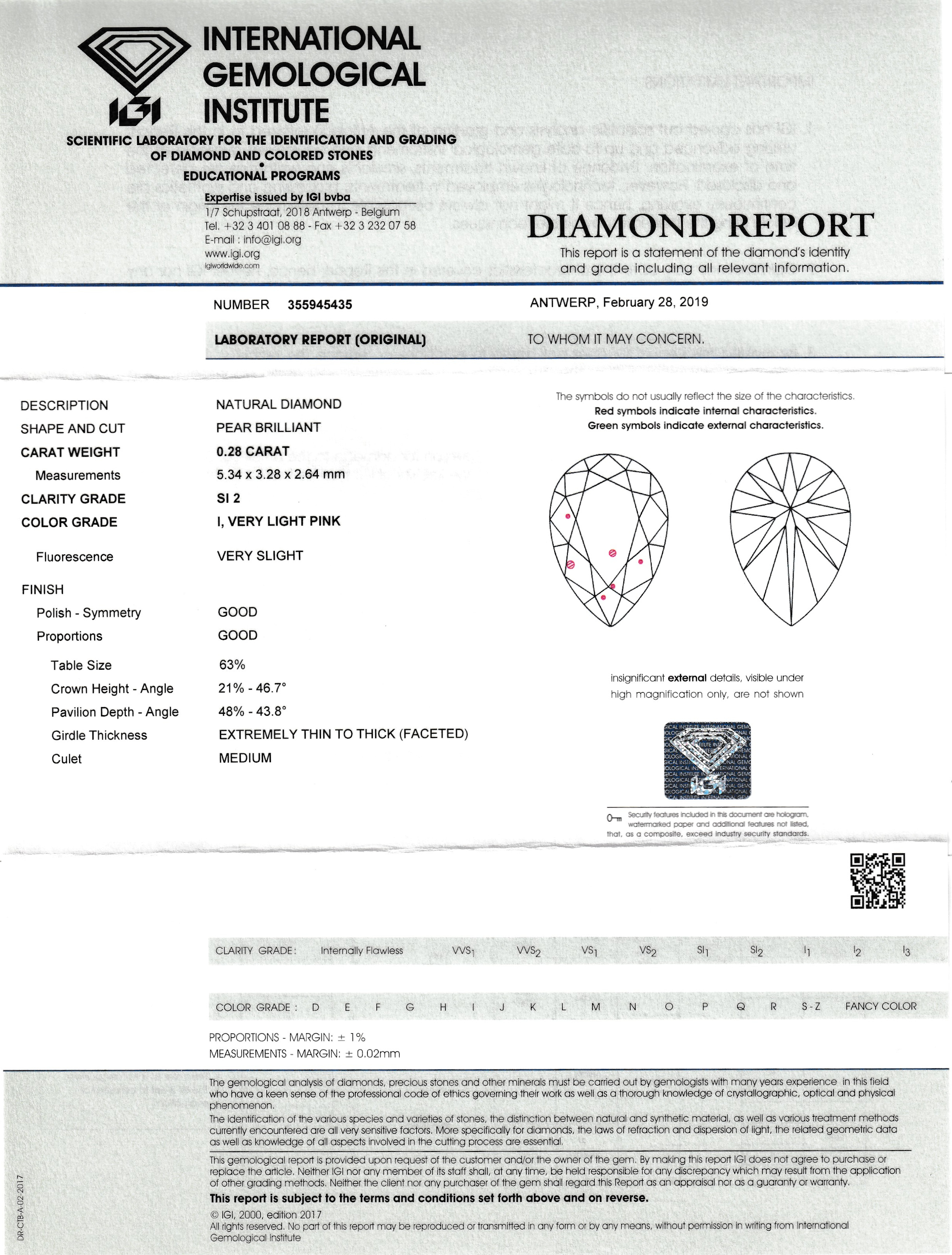 Loser Diamant-Tropfen, 0.28 ct Very Light Pink/si2, verschweißt, IGI Expertise Schätzpreis: 1380, - EUR