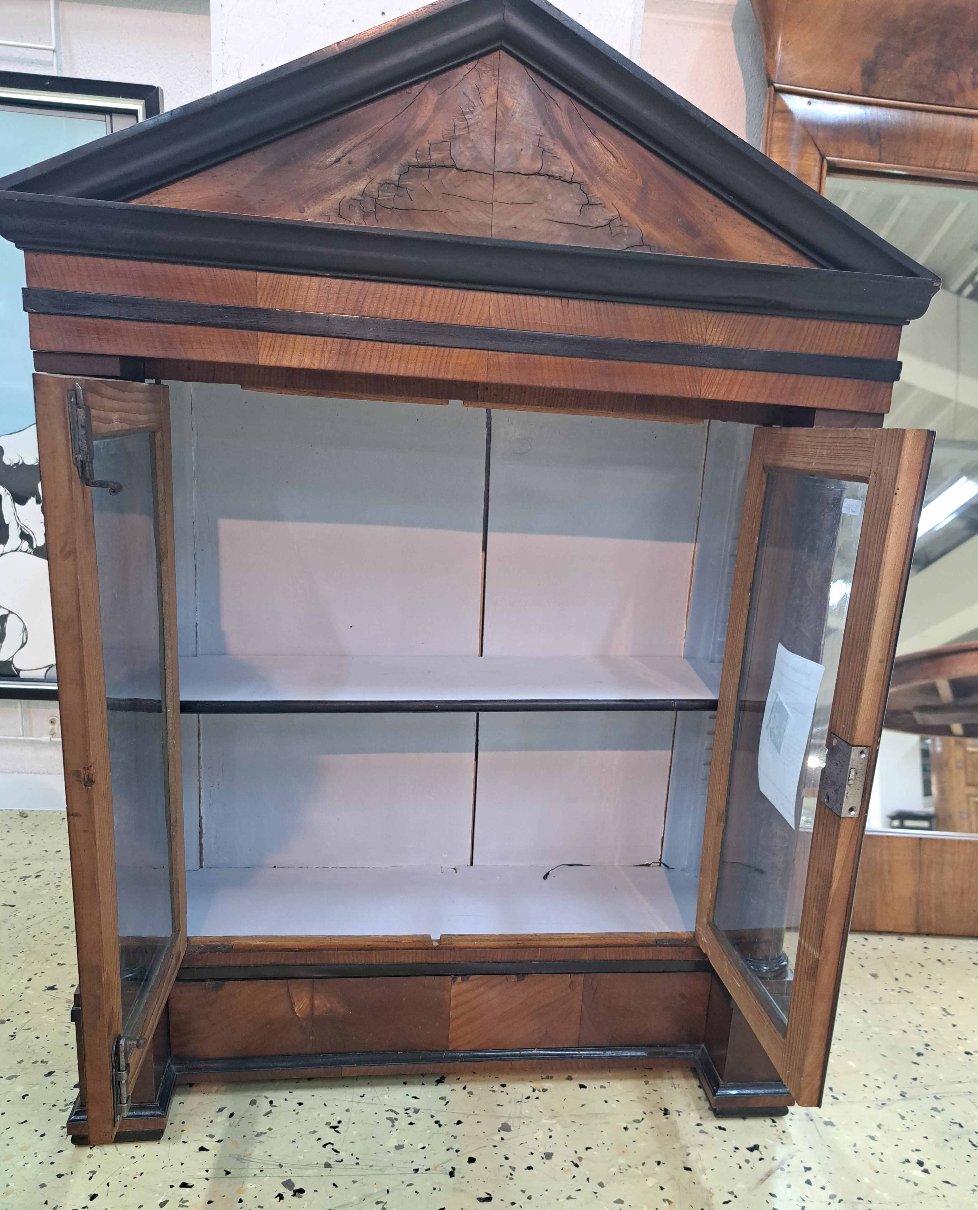 hellblauem Samt ausgekleidet, Gesims mit Spitzgiebel, ca. 90 x 67 x 30 cm, EZ 2