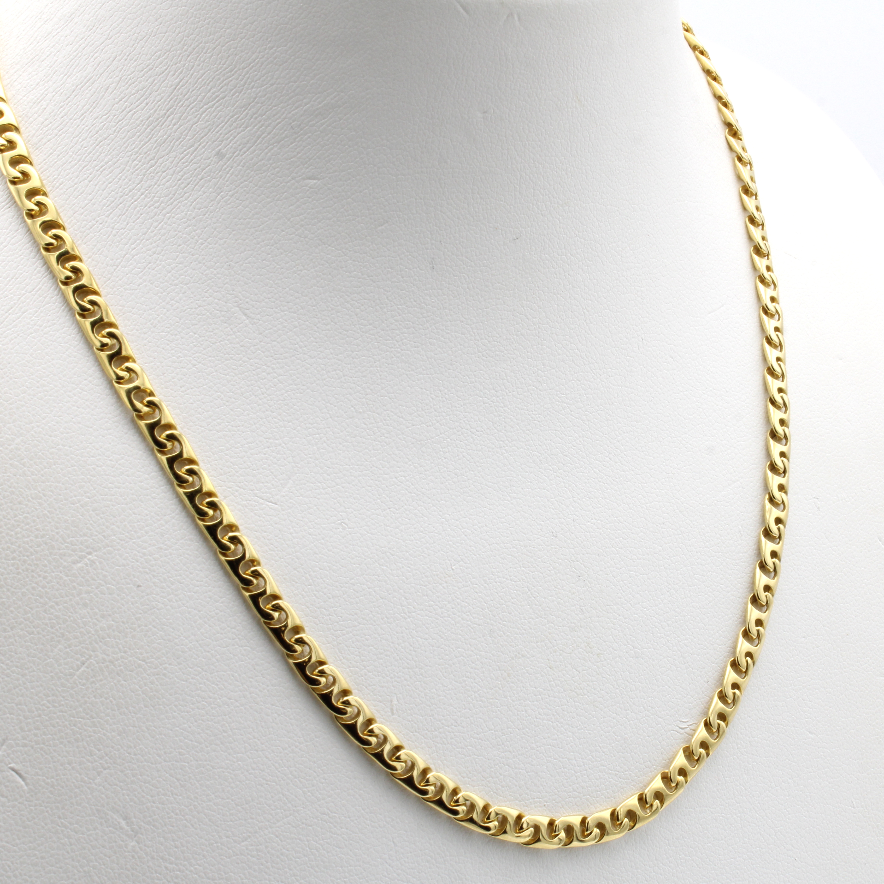 Kette im Phantasiemuster, GG 585/000, Kara- binerschl., B. ca. 4 mm, L. ca. 55 cm