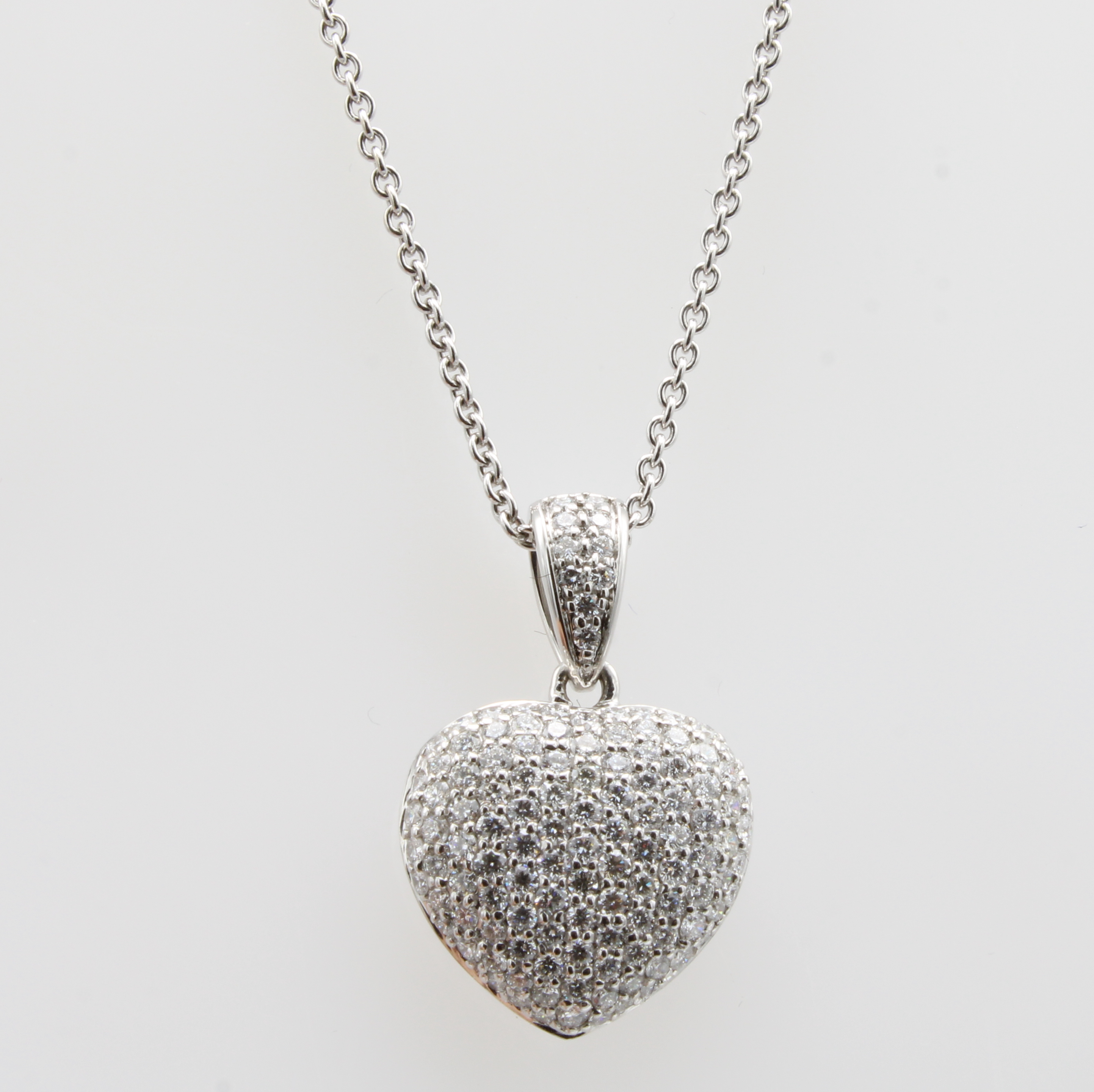 Anhänger "Herz" an Kette, GG 590/000, Brill.zus. ca. 0.92 ct Weiß/si, L. ca. 42 cm Schätzpreis: 3950, - EUR