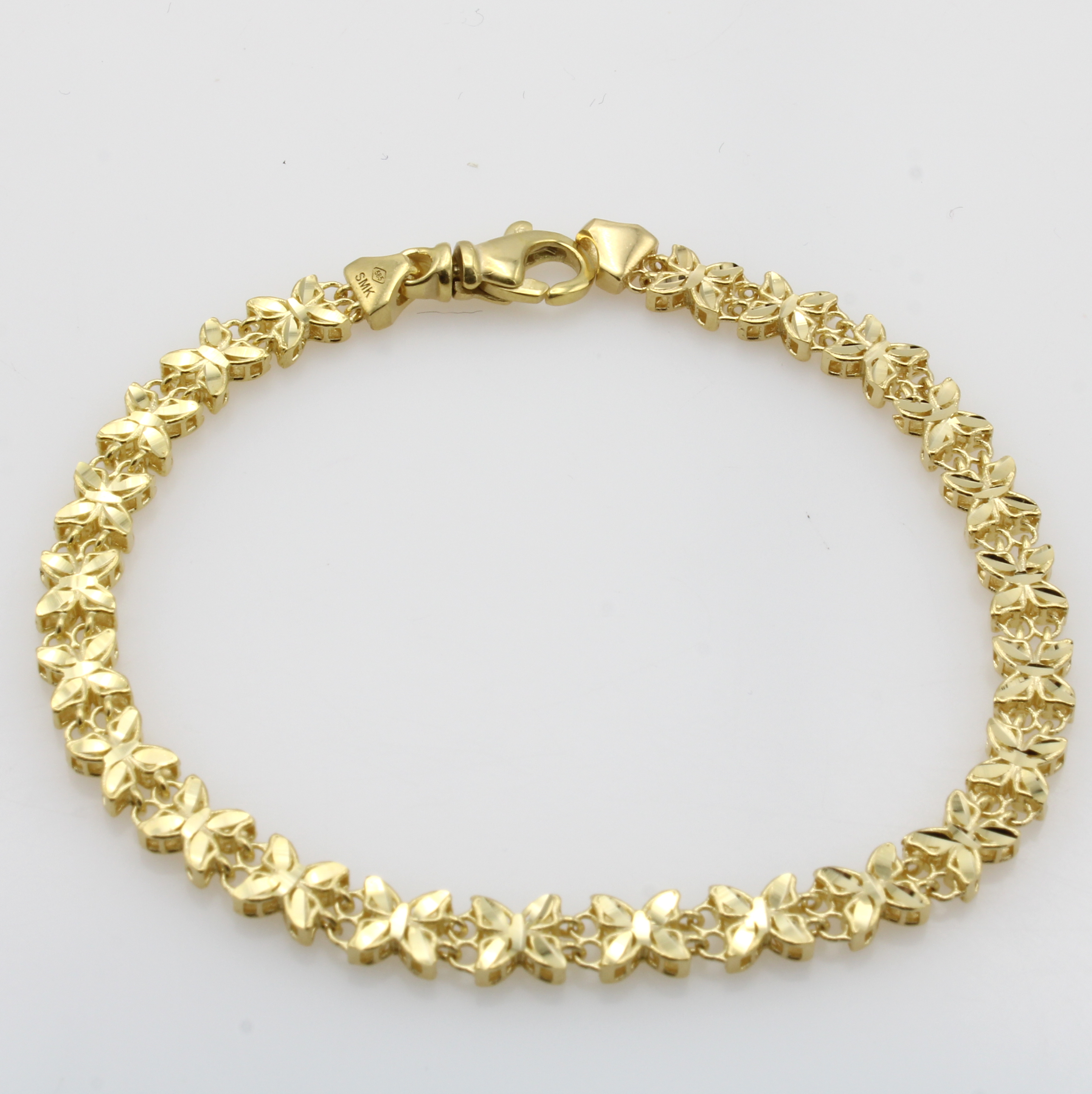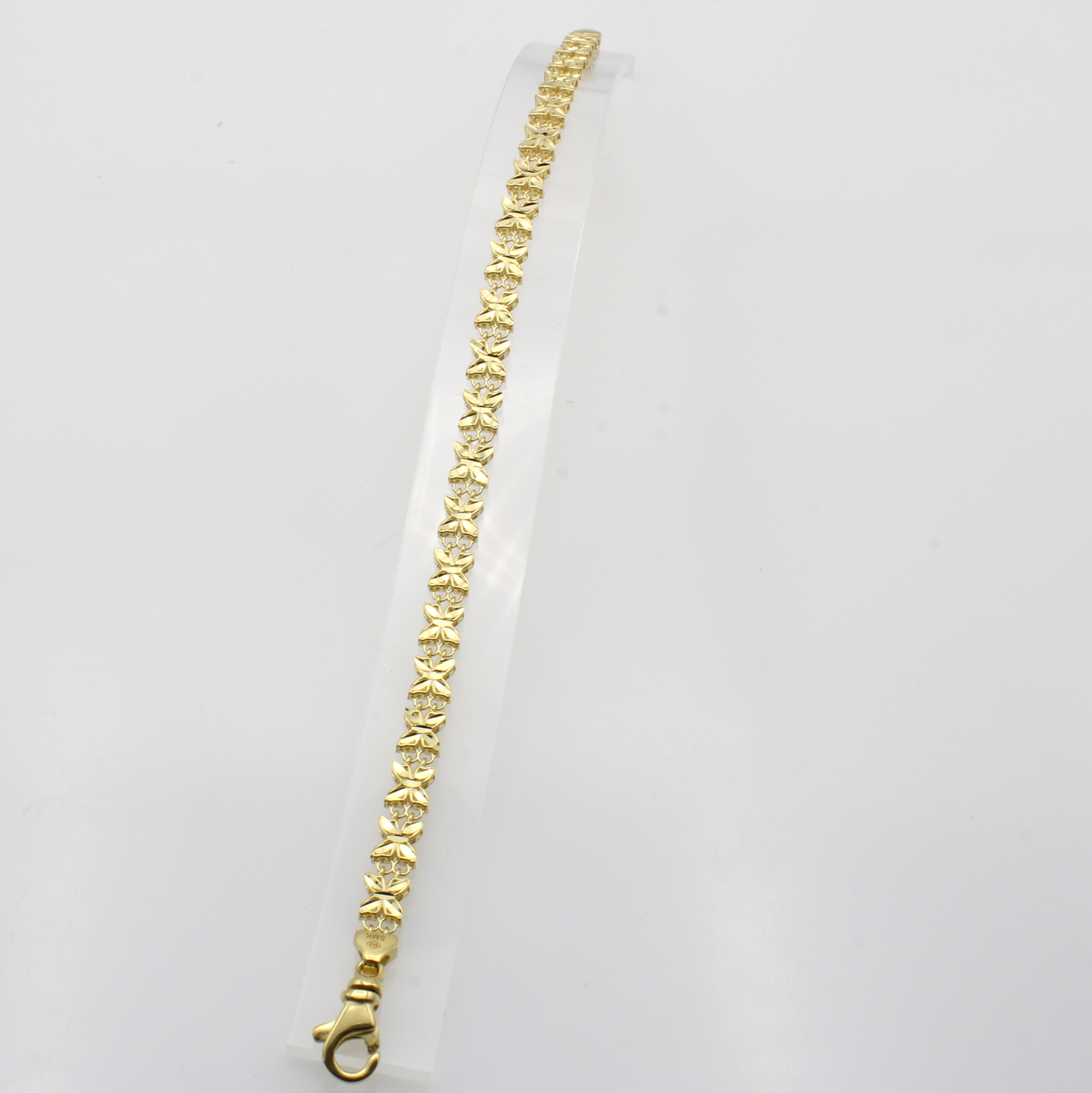 Armband, GG 585/000, Glieder in Form von Blüten, Karabinerschl., L. ca. 19 cm