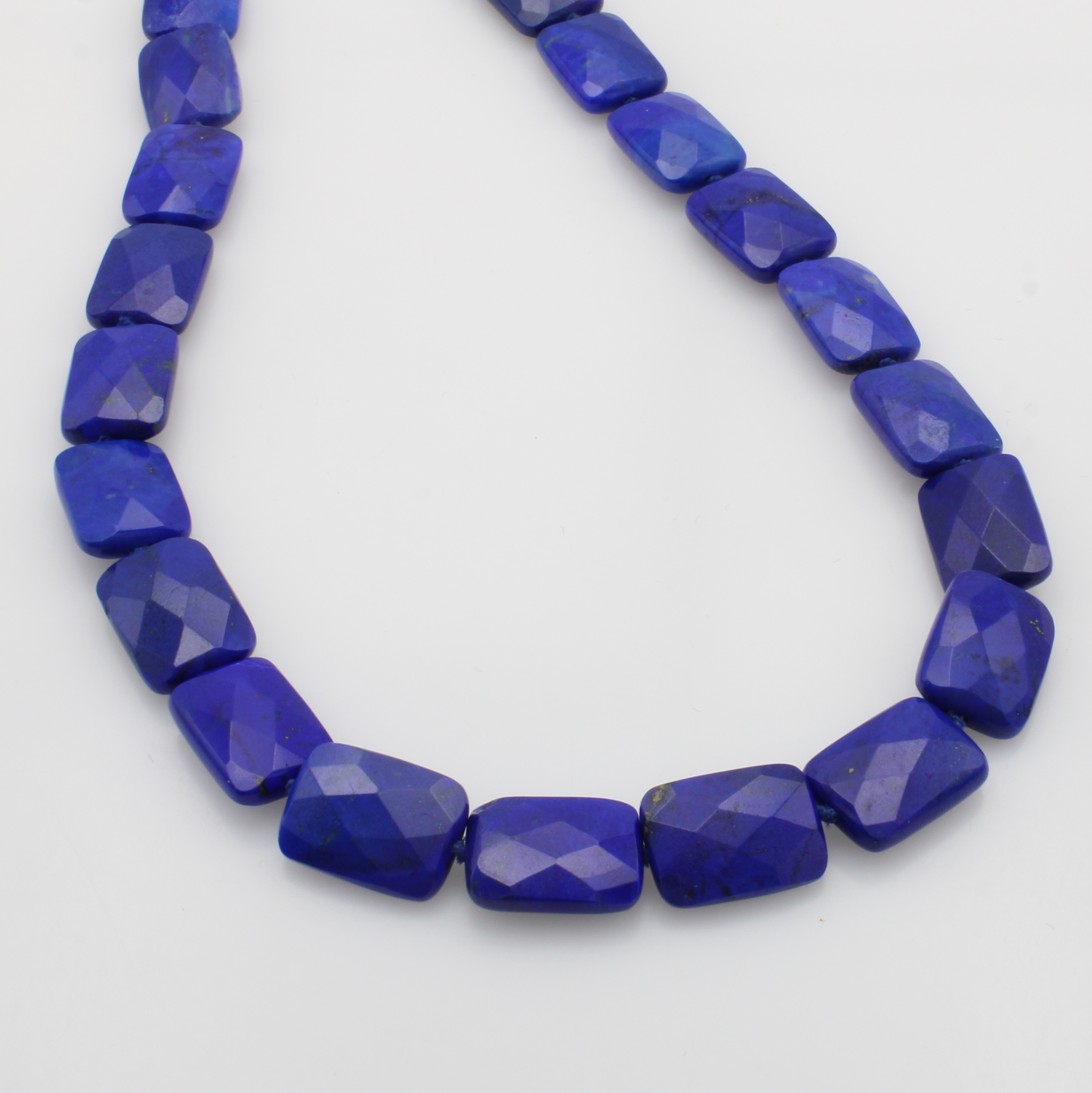 Lapislazulikette, Karabinerschl., recht- eckige, fac. Platten, Maße ca. 18x13 mm, L. ca. 46 cm Schätzpreis: 400, - EUR