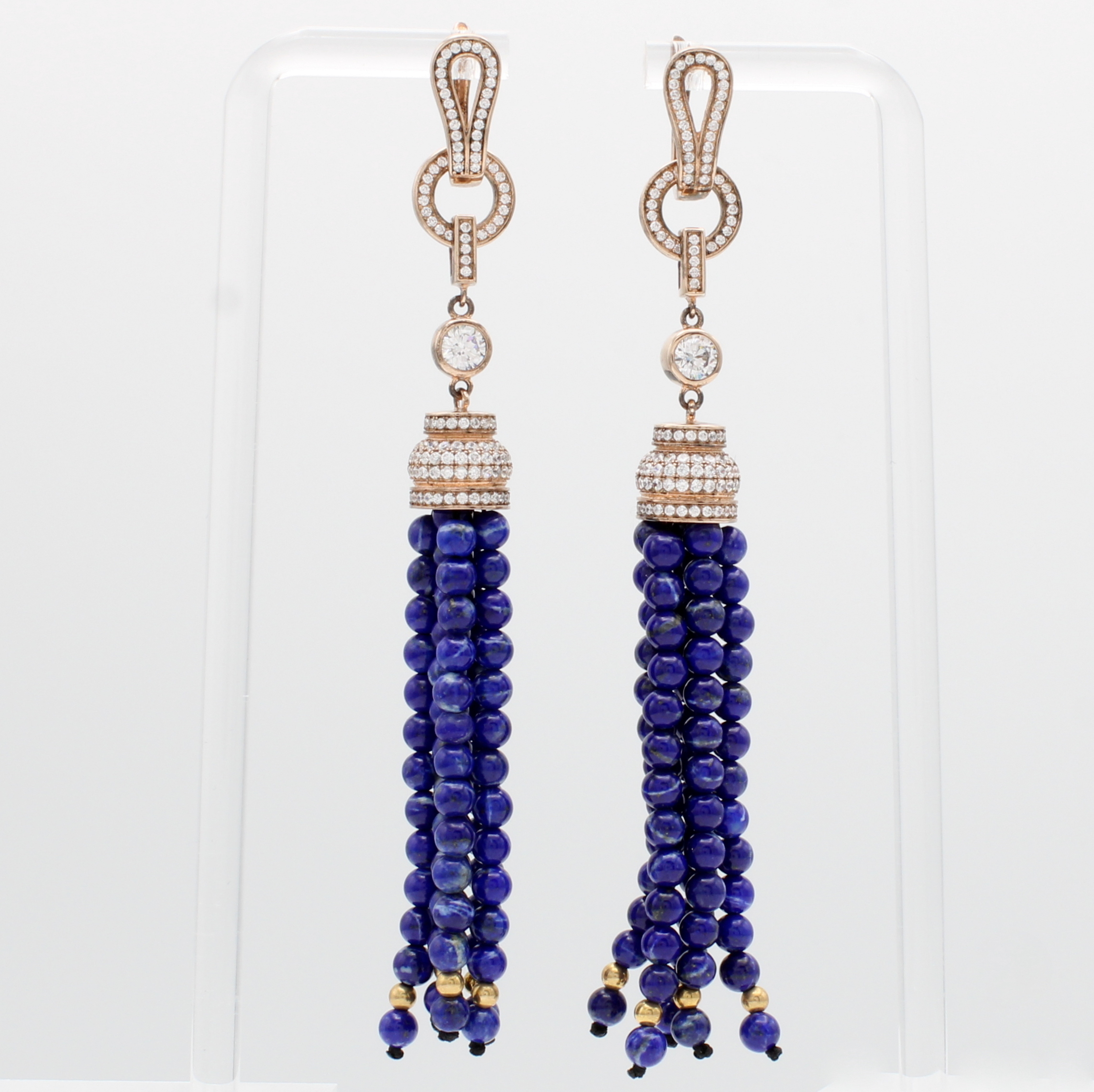 Paar Ohrgehänge mit Lapislazuli und Zirkonias, verg., Kugeld. ca. 4 mm Schätzpreis: 800, - EUR