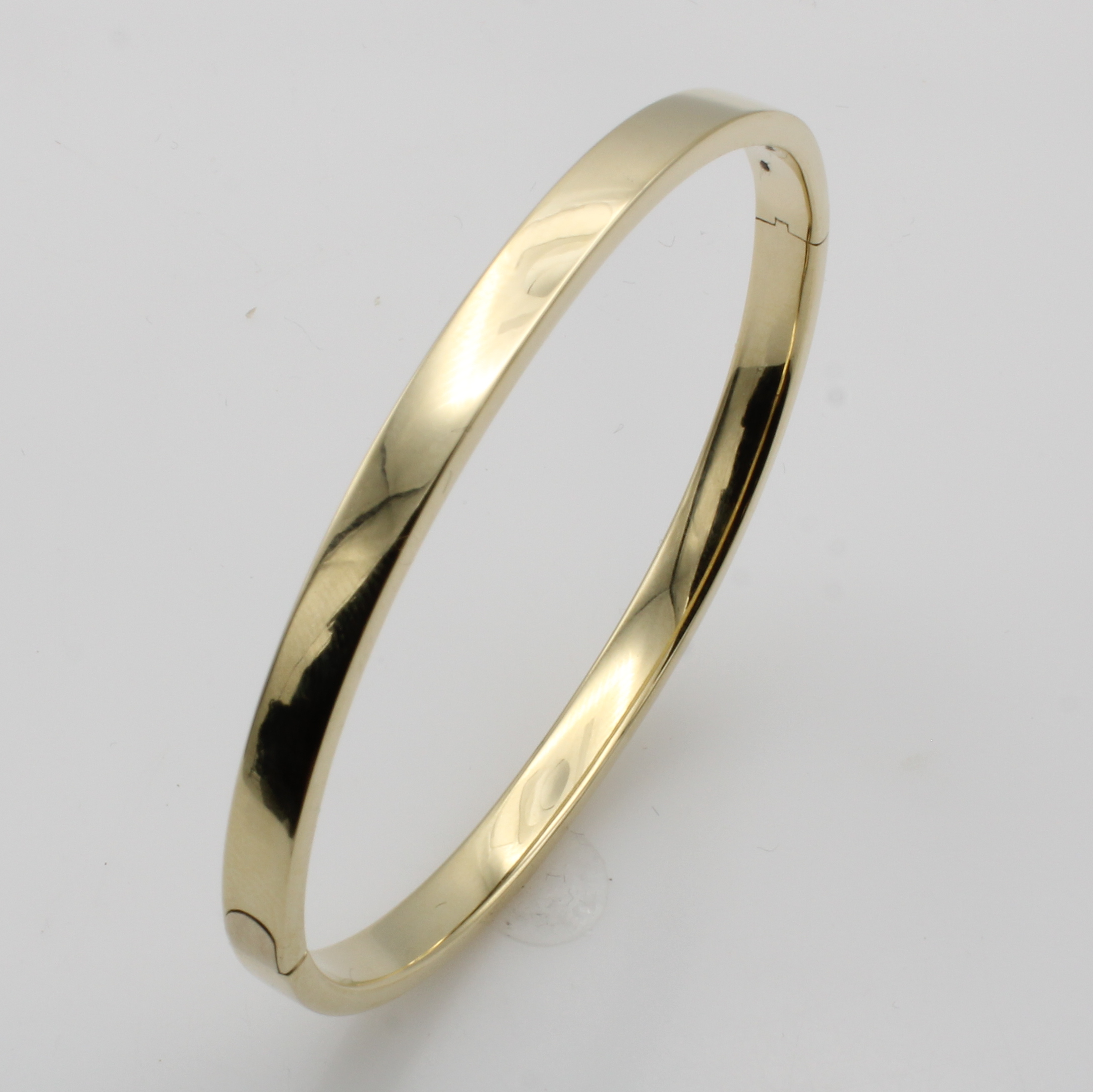 Armreif, GG 585/000, B. ca. 5 mm, M. ca. 6.5x5.5 cm, mit Scharnier