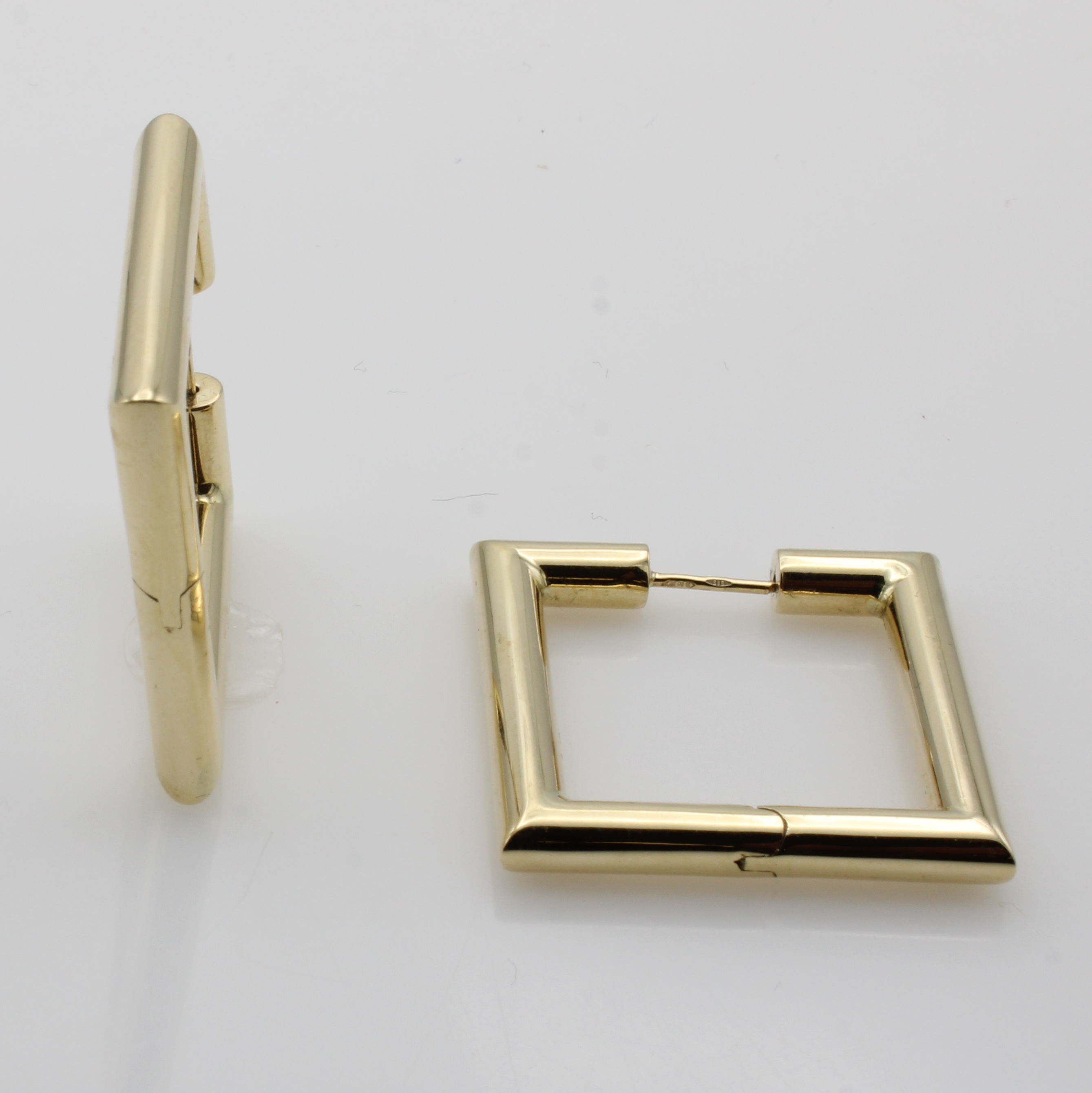 Paar viereckige Creolen, GG 585/000, B. ca. 4 mm, M. ca. 2.5x2.5 cm
